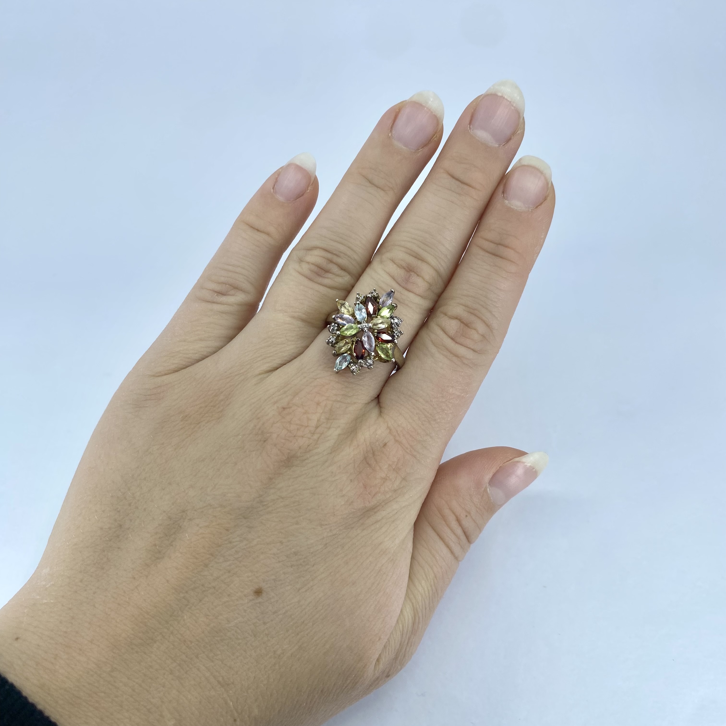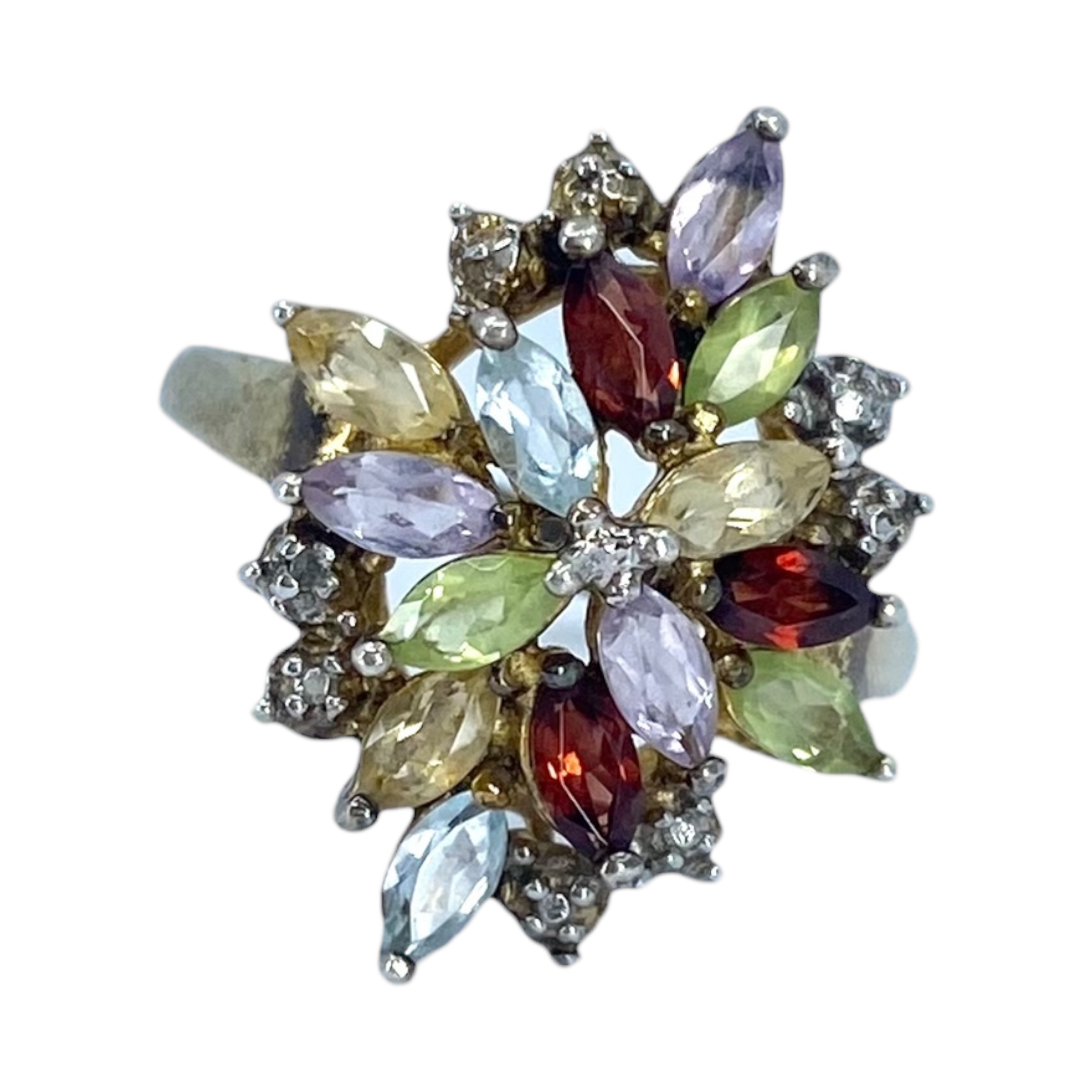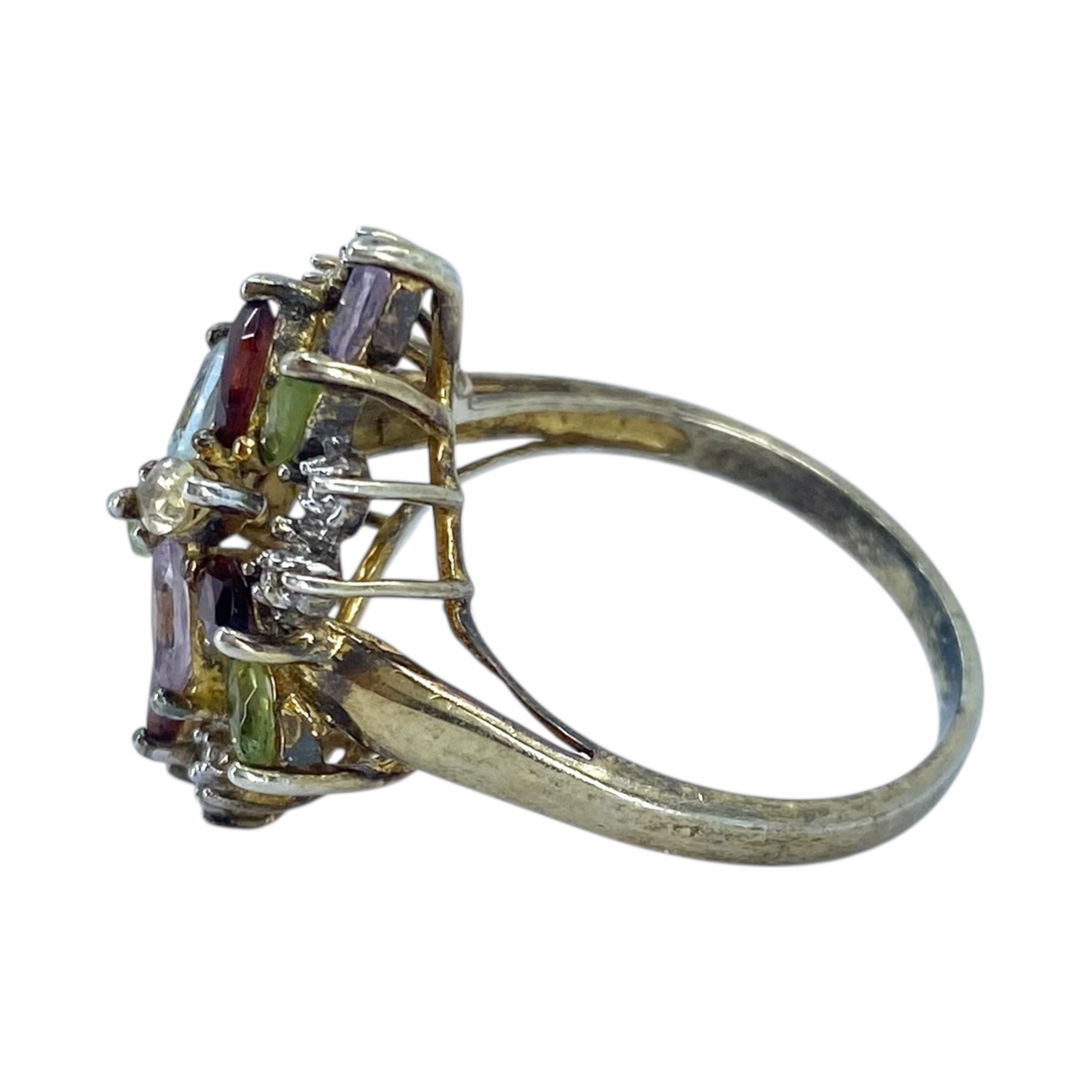 Ross Simons Sterling Diamond Garnet Citrine and More Marquise Flower Cocktail Ring 5g sz 9 Engraved R 925 China