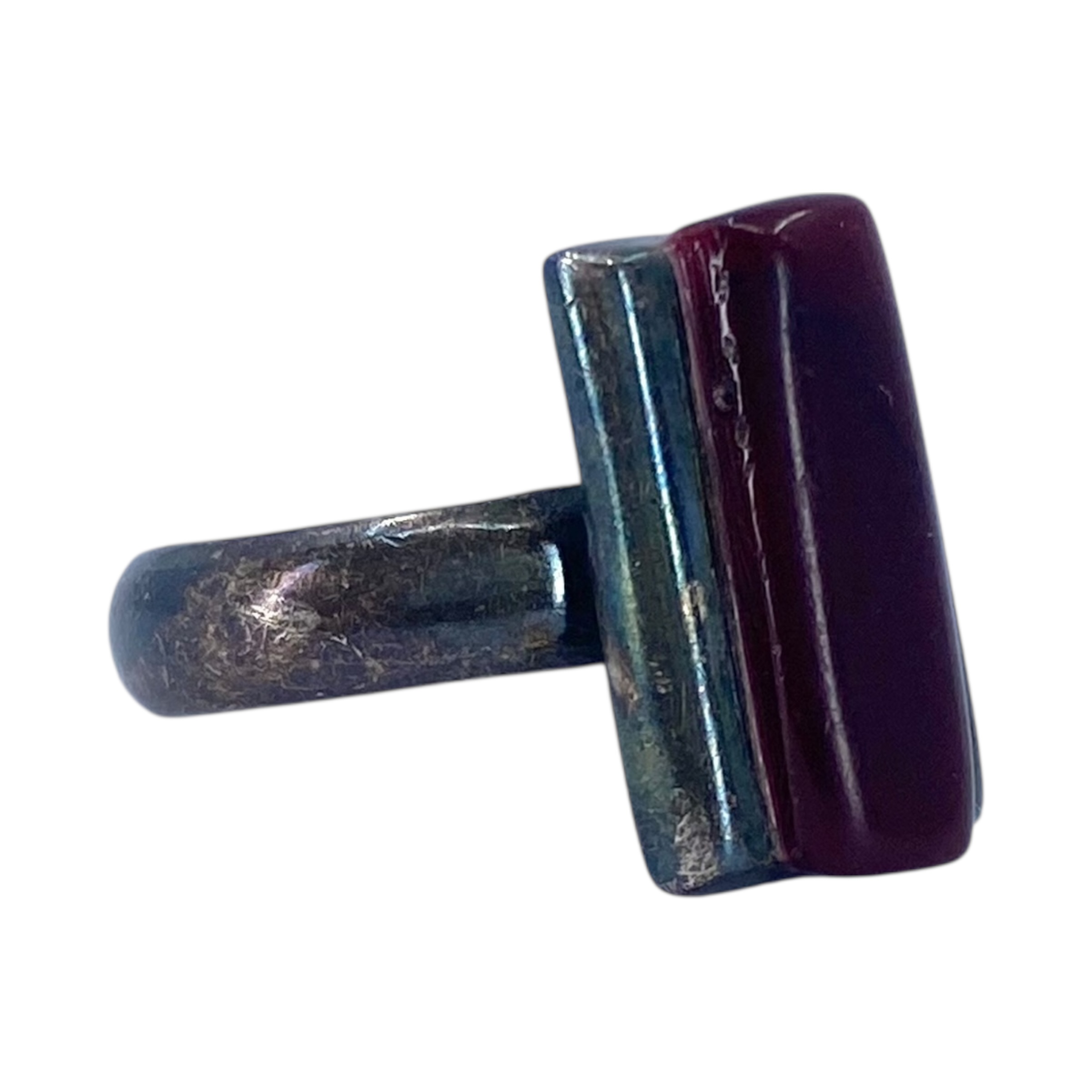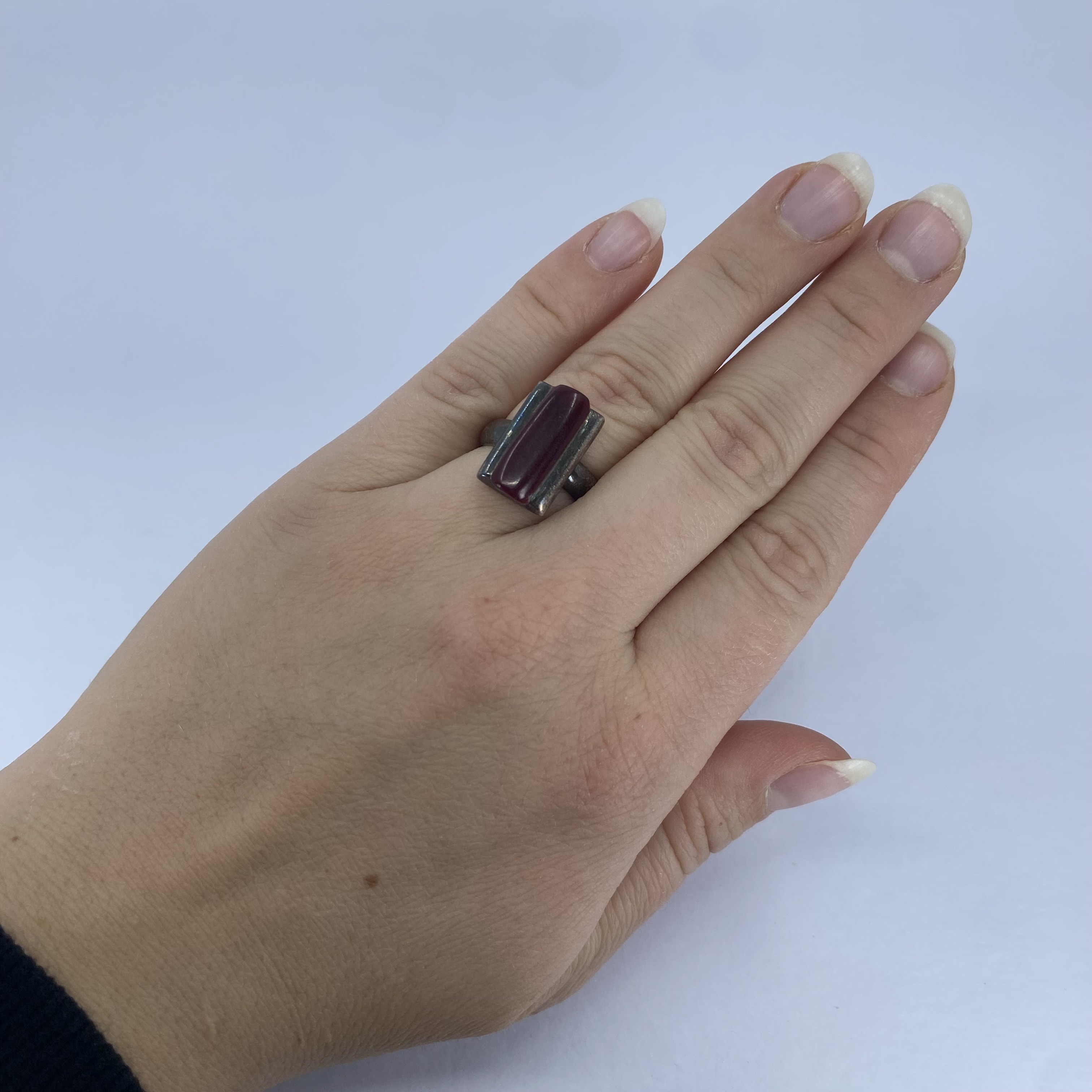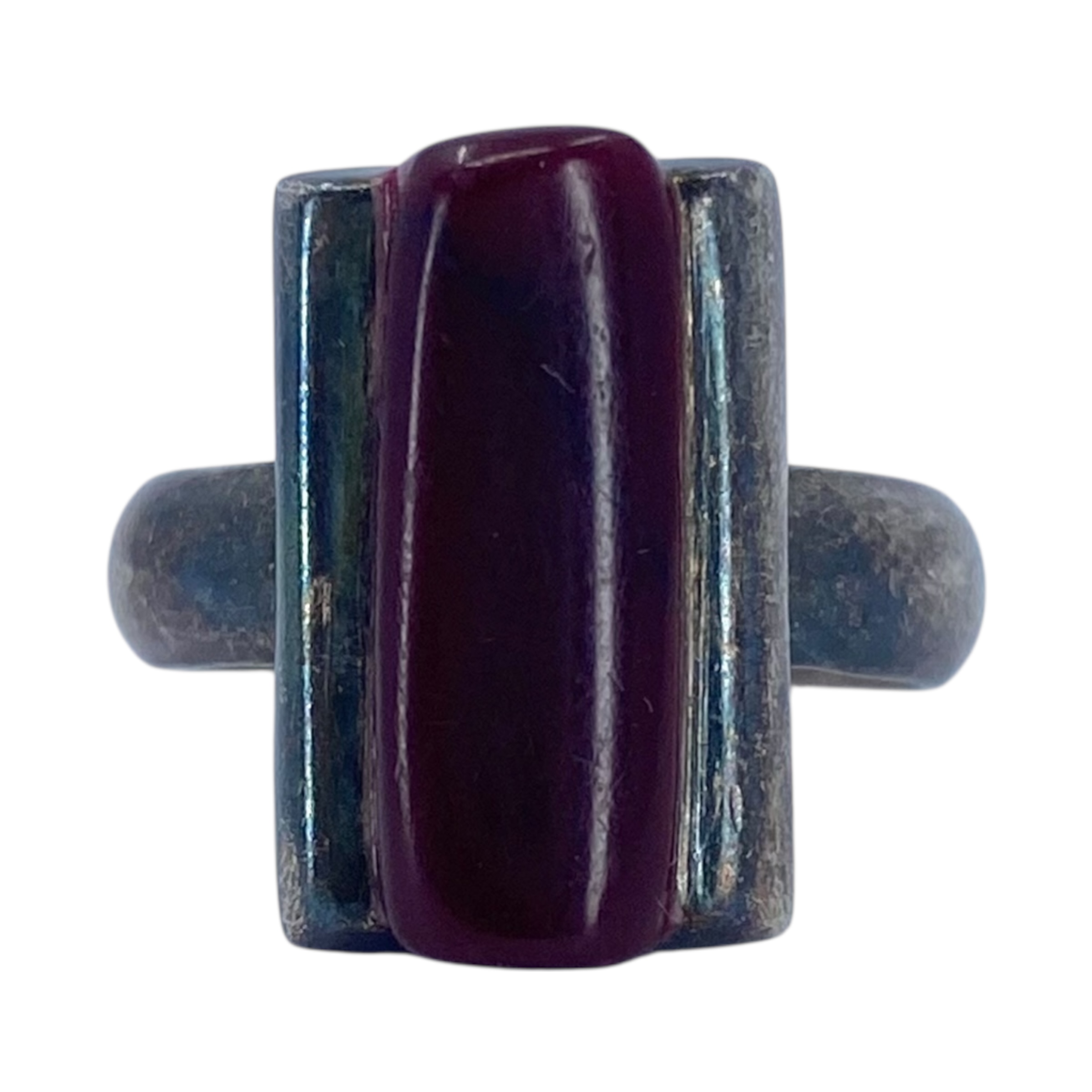 Sterling Red Coral Rectangle Statement Ring 9.4g sz 7.75