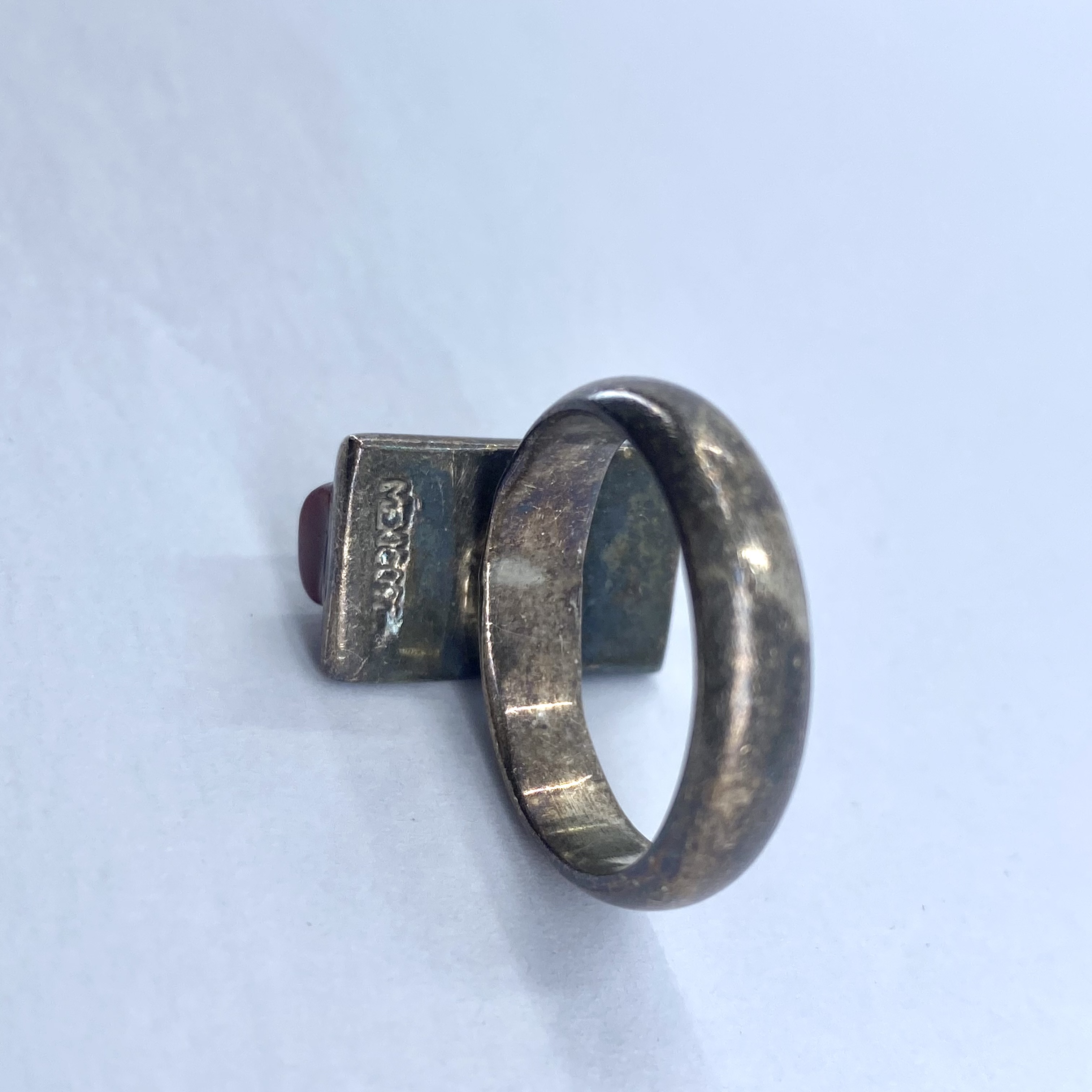 Sterling Red Coral Rectangle Statement Ring 9.4g sz 7.75 Engraved Mexico 925