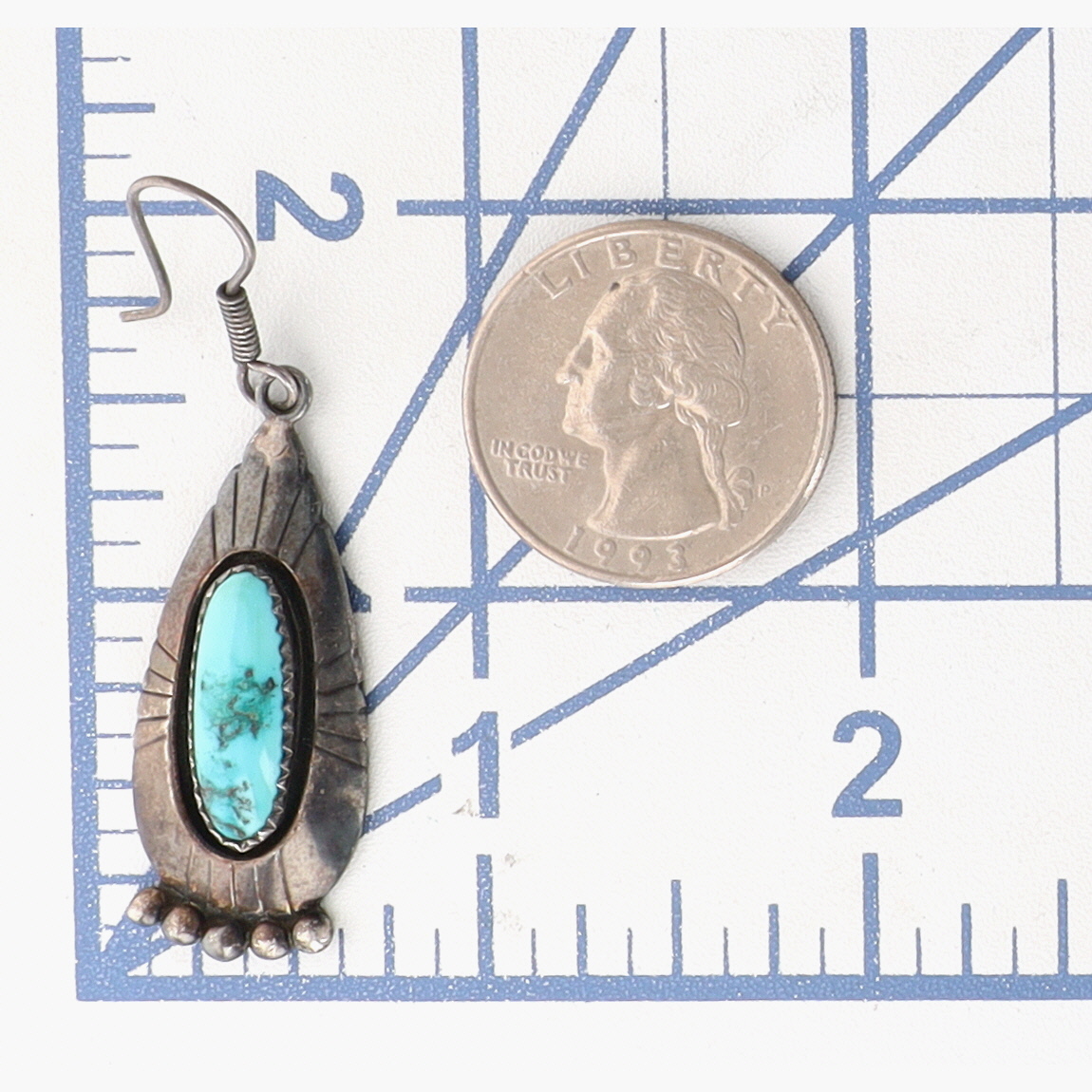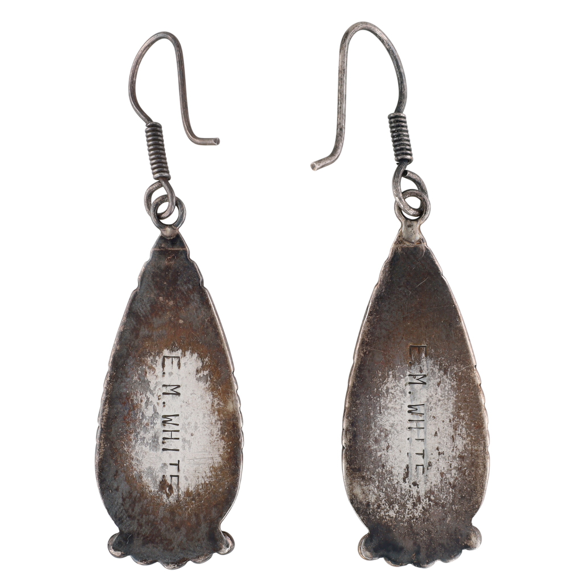 Vintage Ella Mae White Navajo Sterling Turquoise Shadow Box Earrings – 8.1g