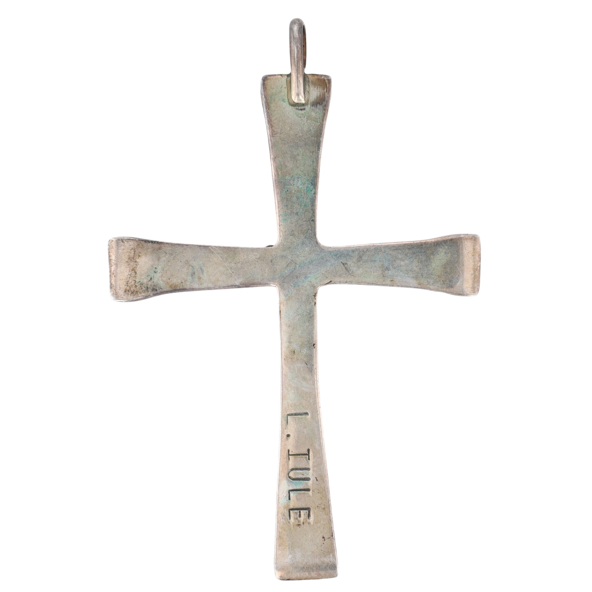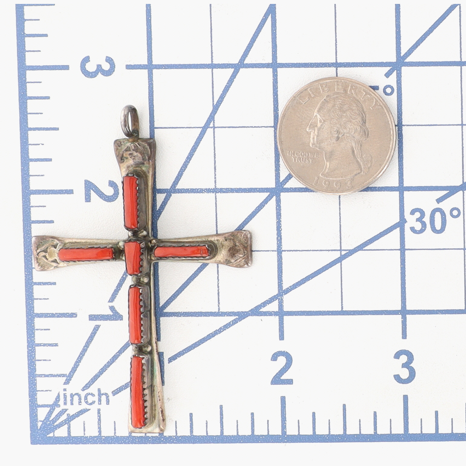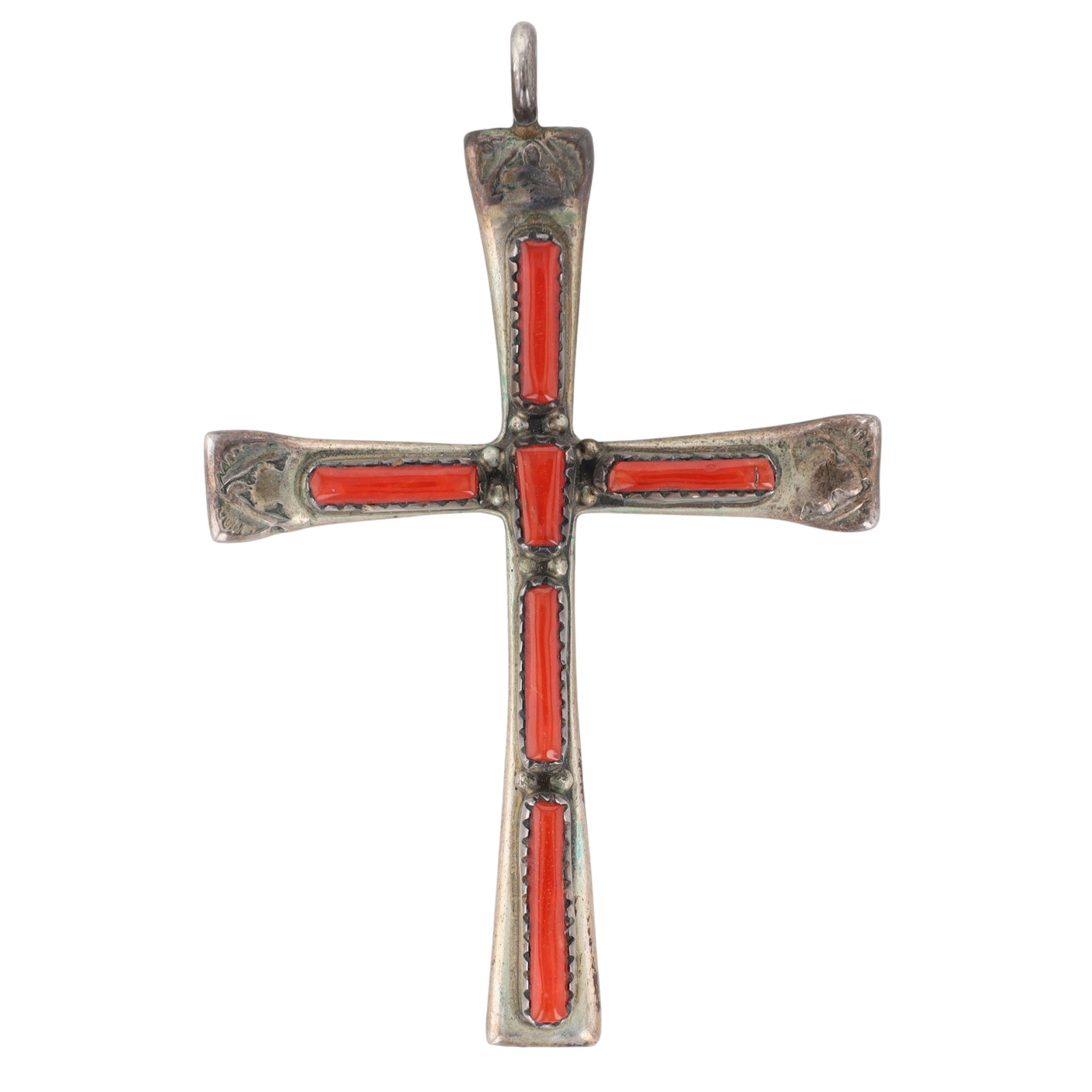 Vintage Lupe Iule Zuni Sterling Coral Cross Pendant – 10.6g