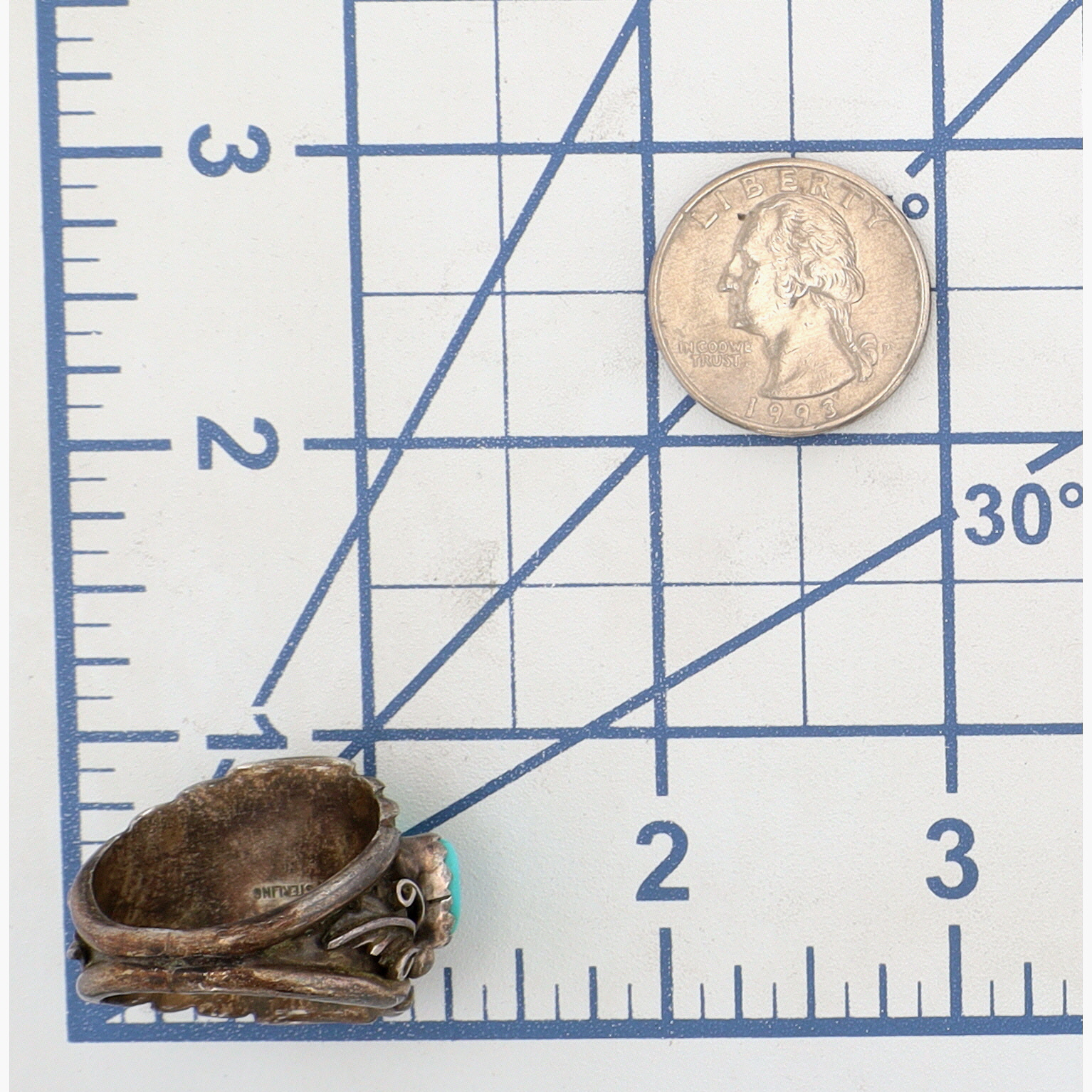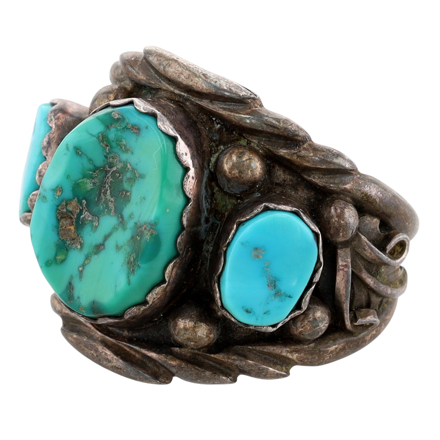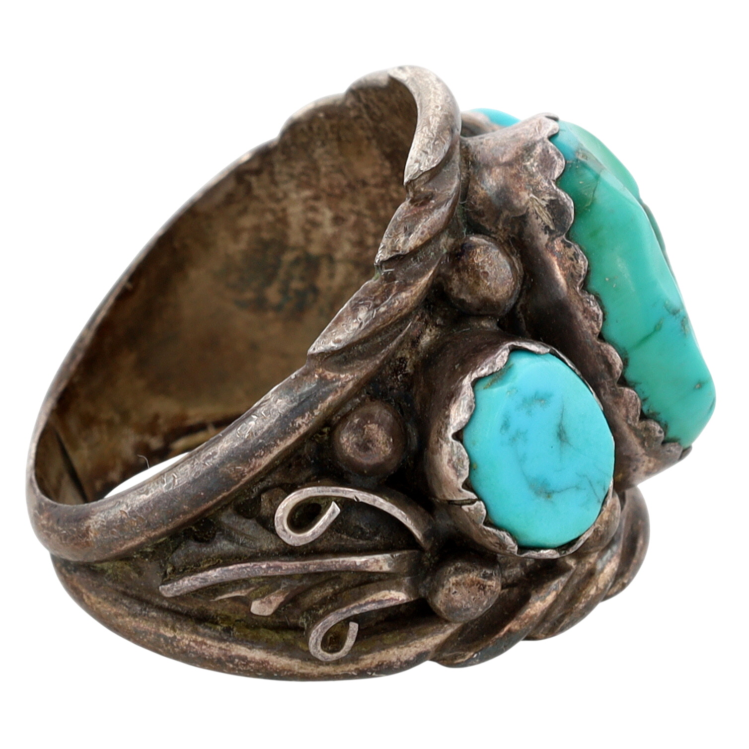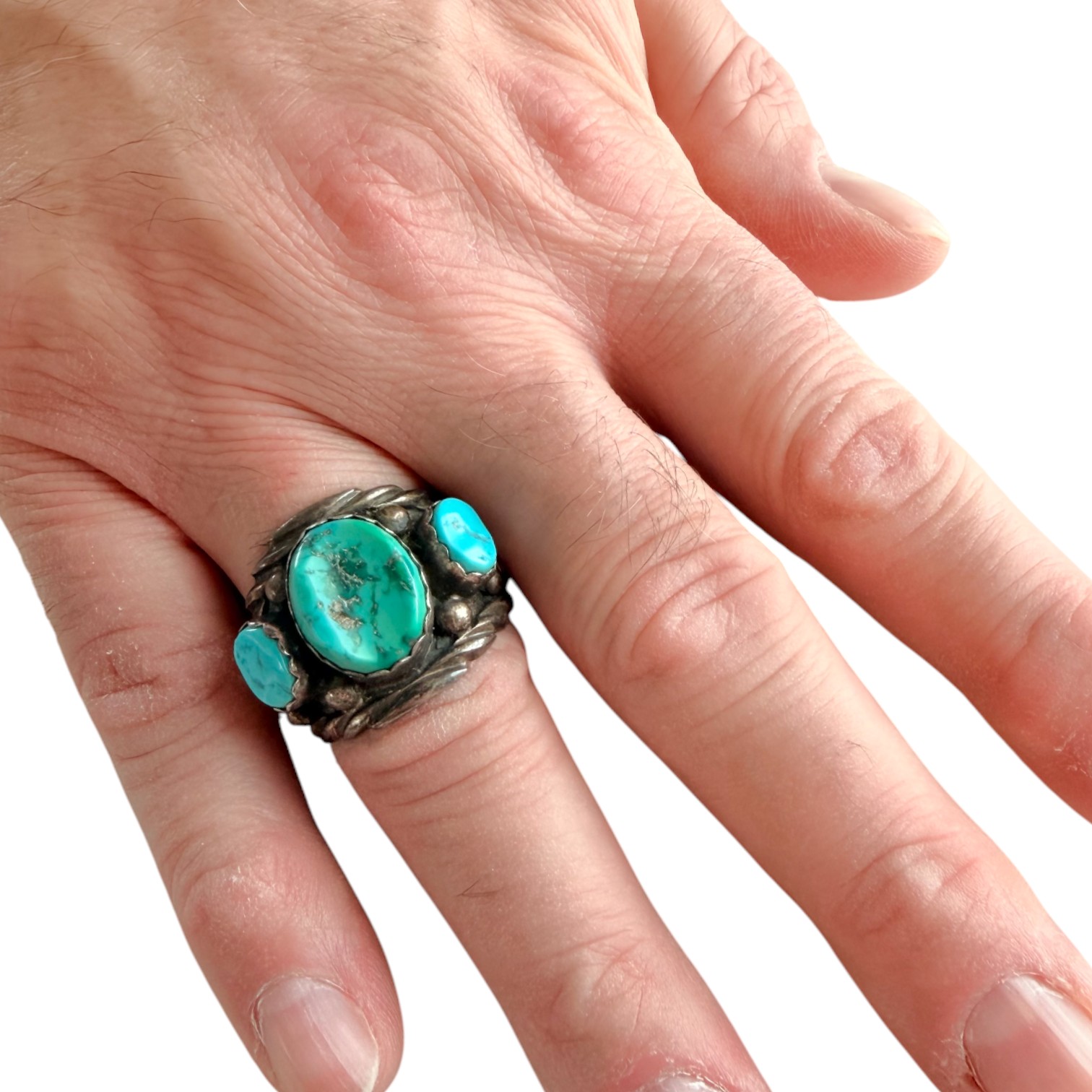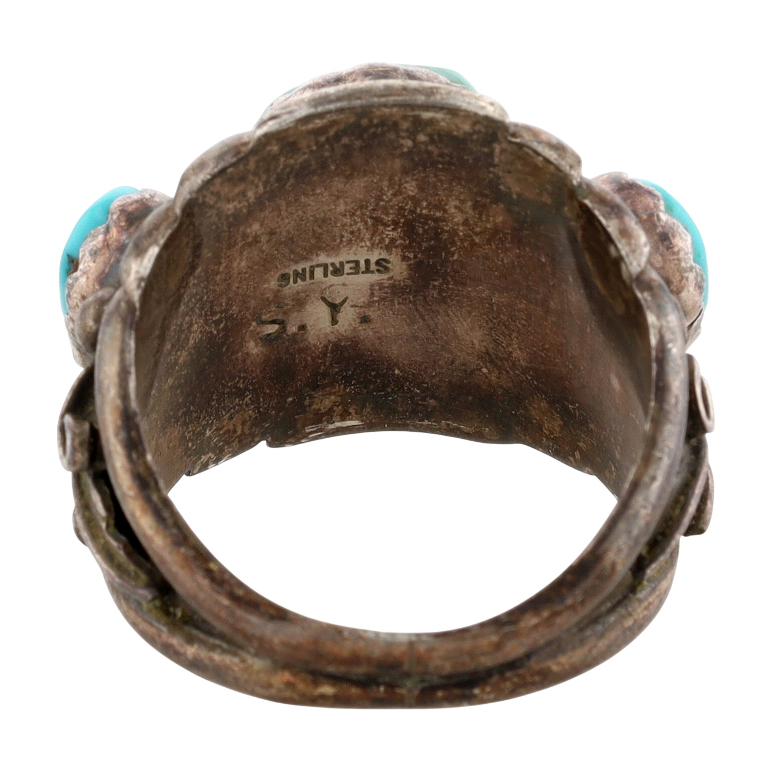 Vintage Sampson Yazzie Navajo Sterling and Turquoise Chunk Ring Sz 12 – 14.8g