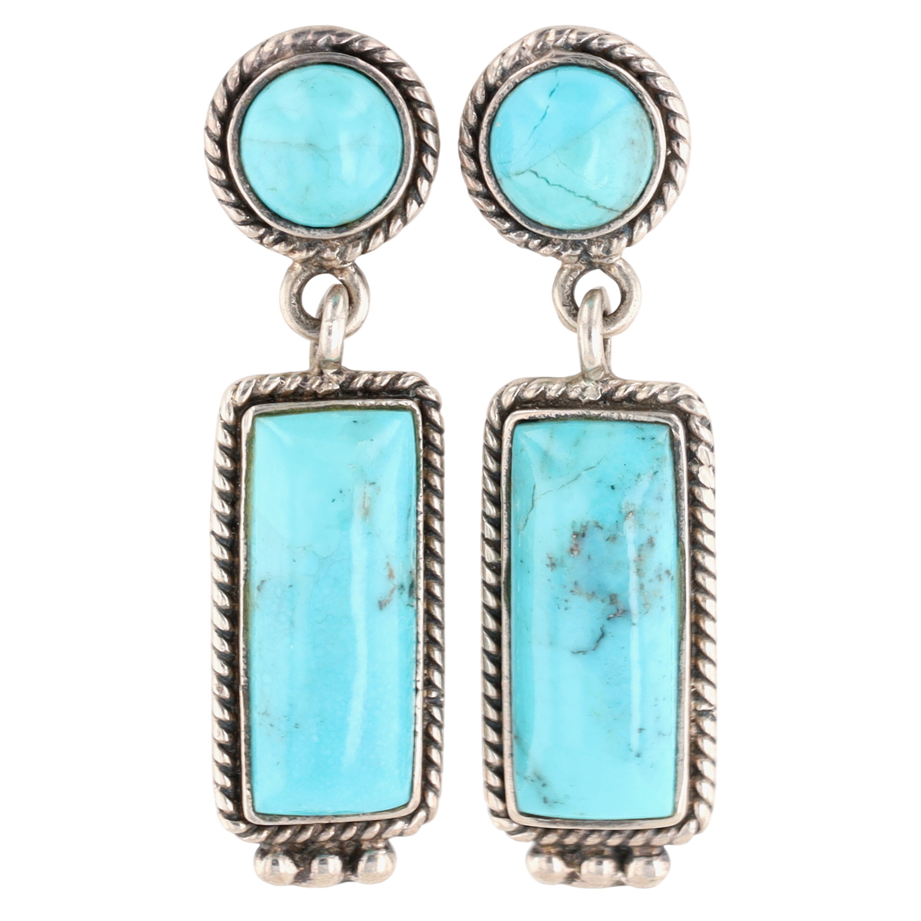 Pictomark Signed Navajo Sterling Turquoise Dangle Earrings – 11.6g