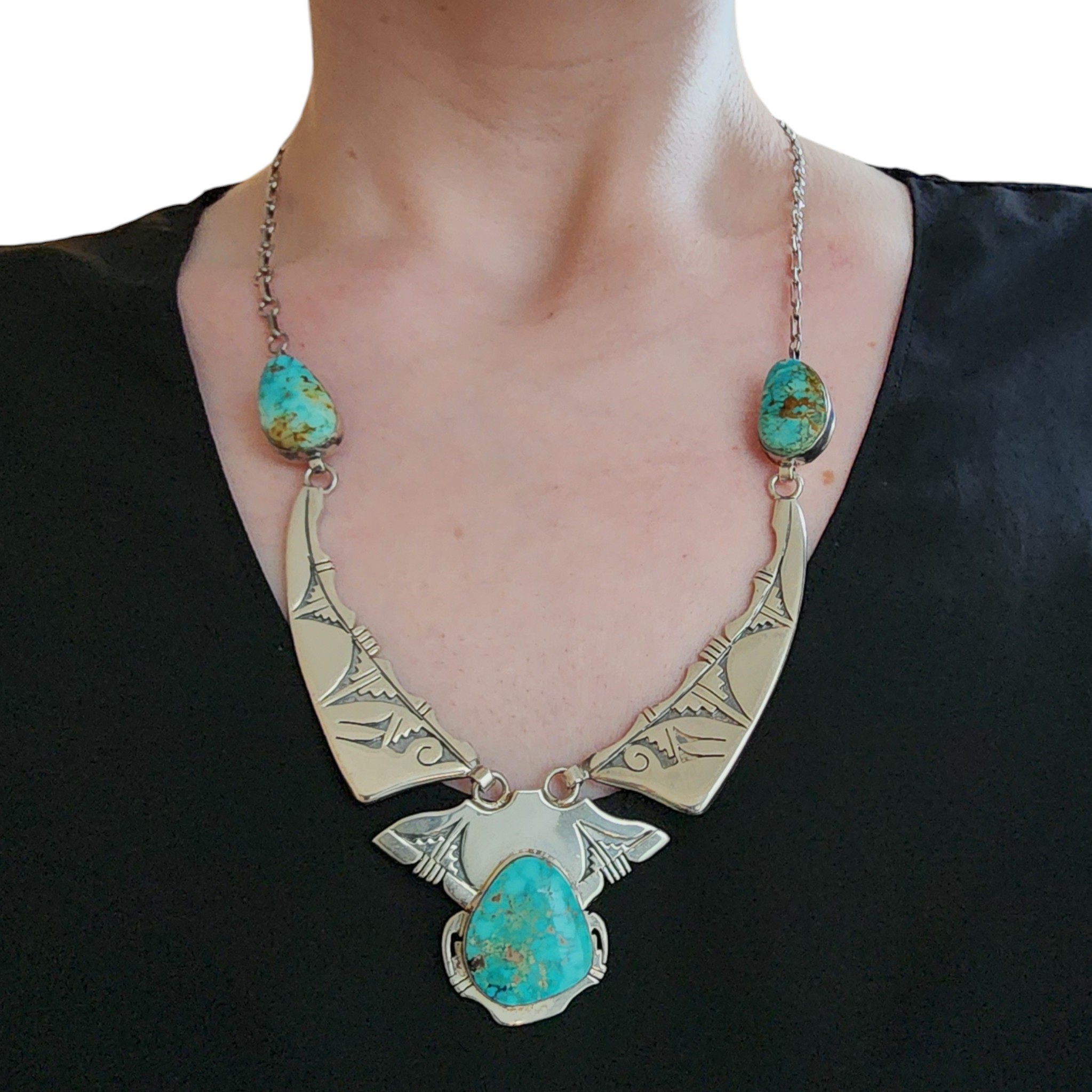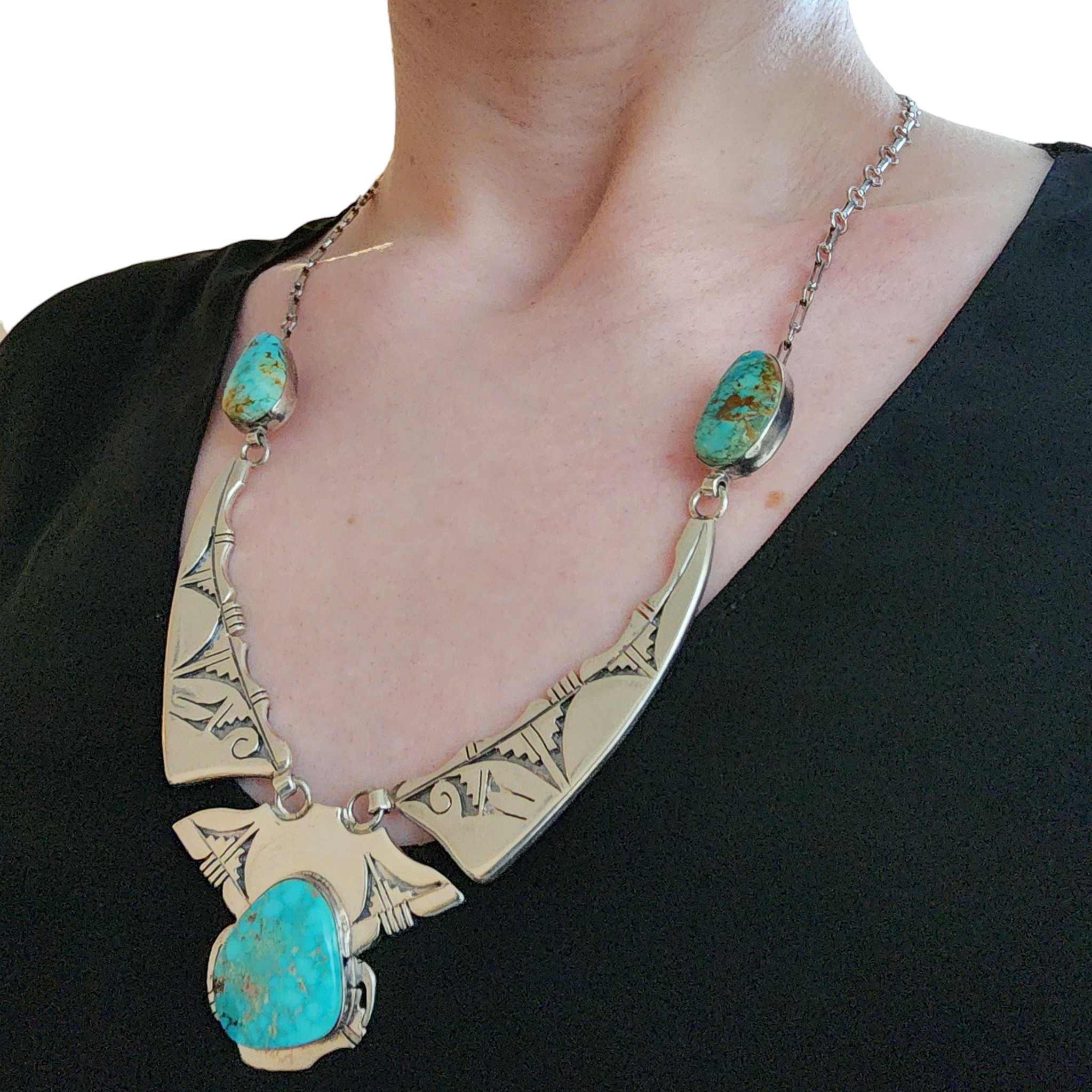 Rare Bennie Ration Navajo Turquoise Overlay Station Necklace