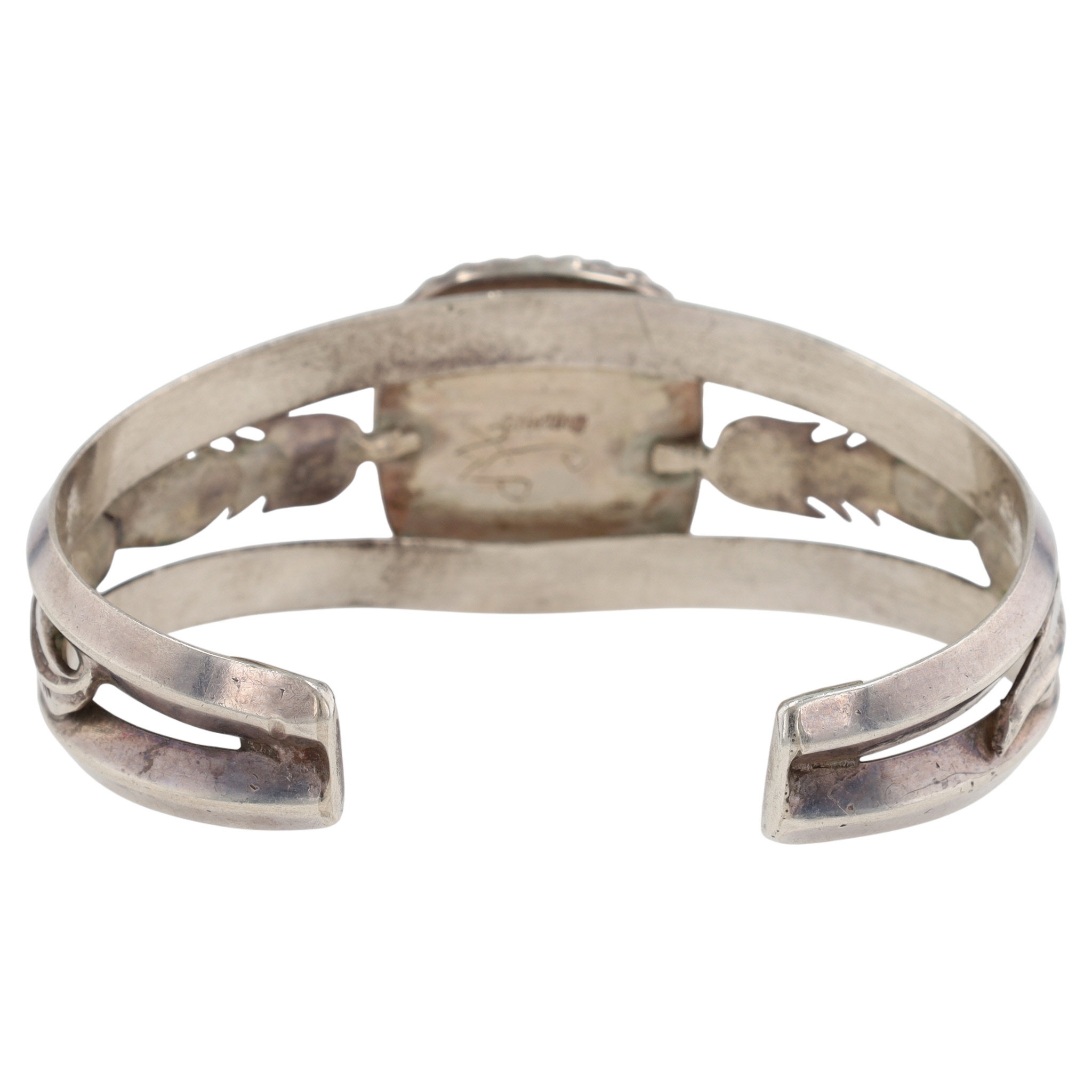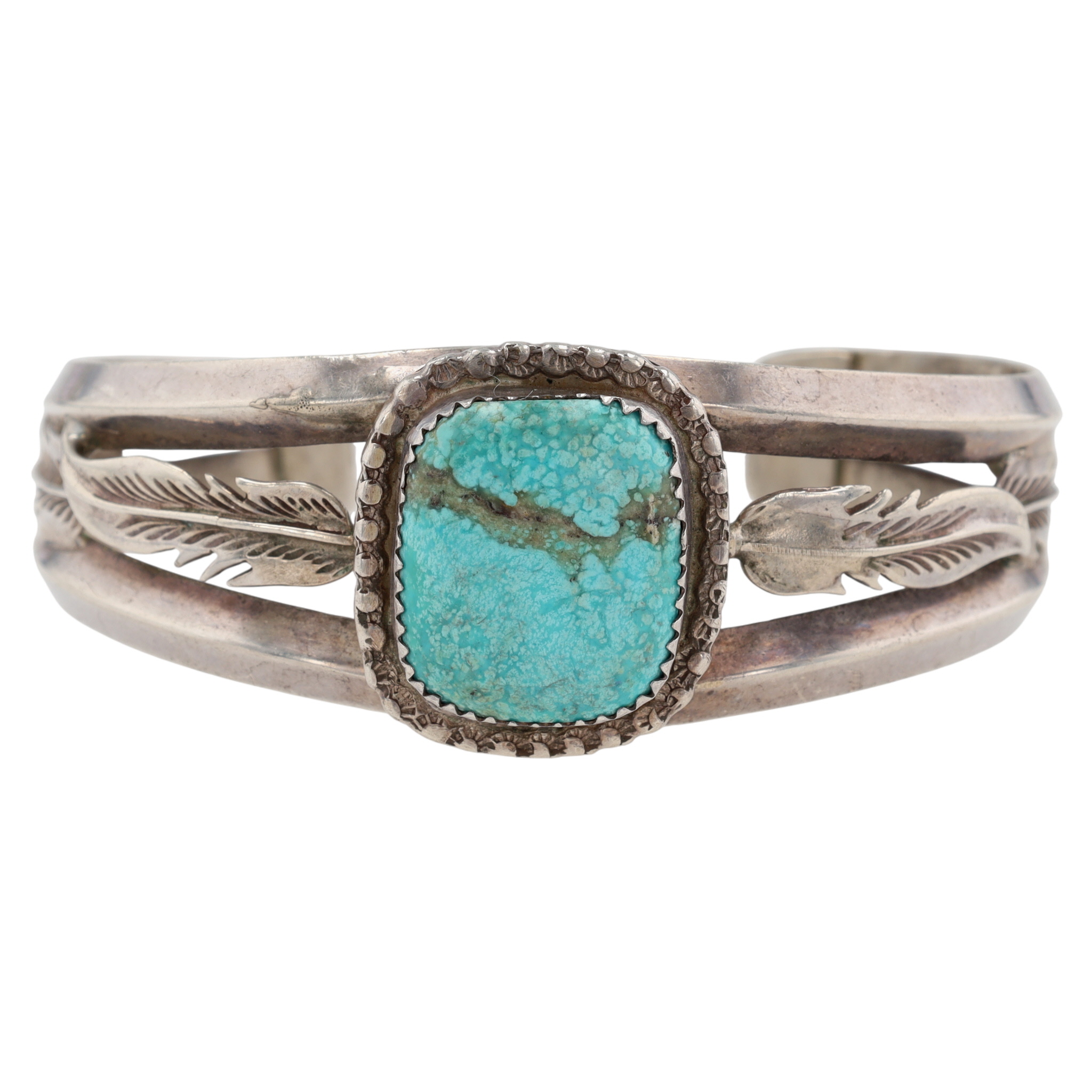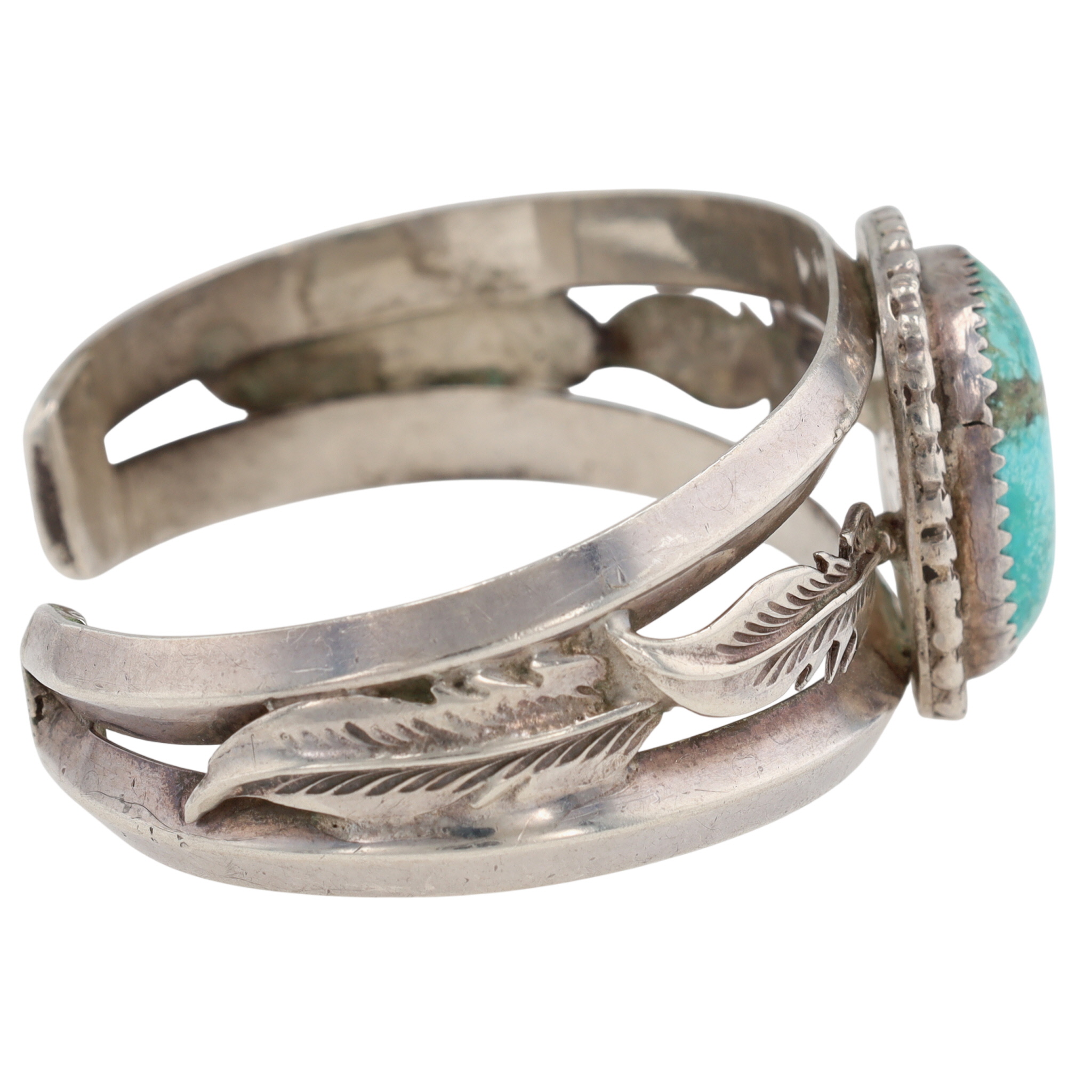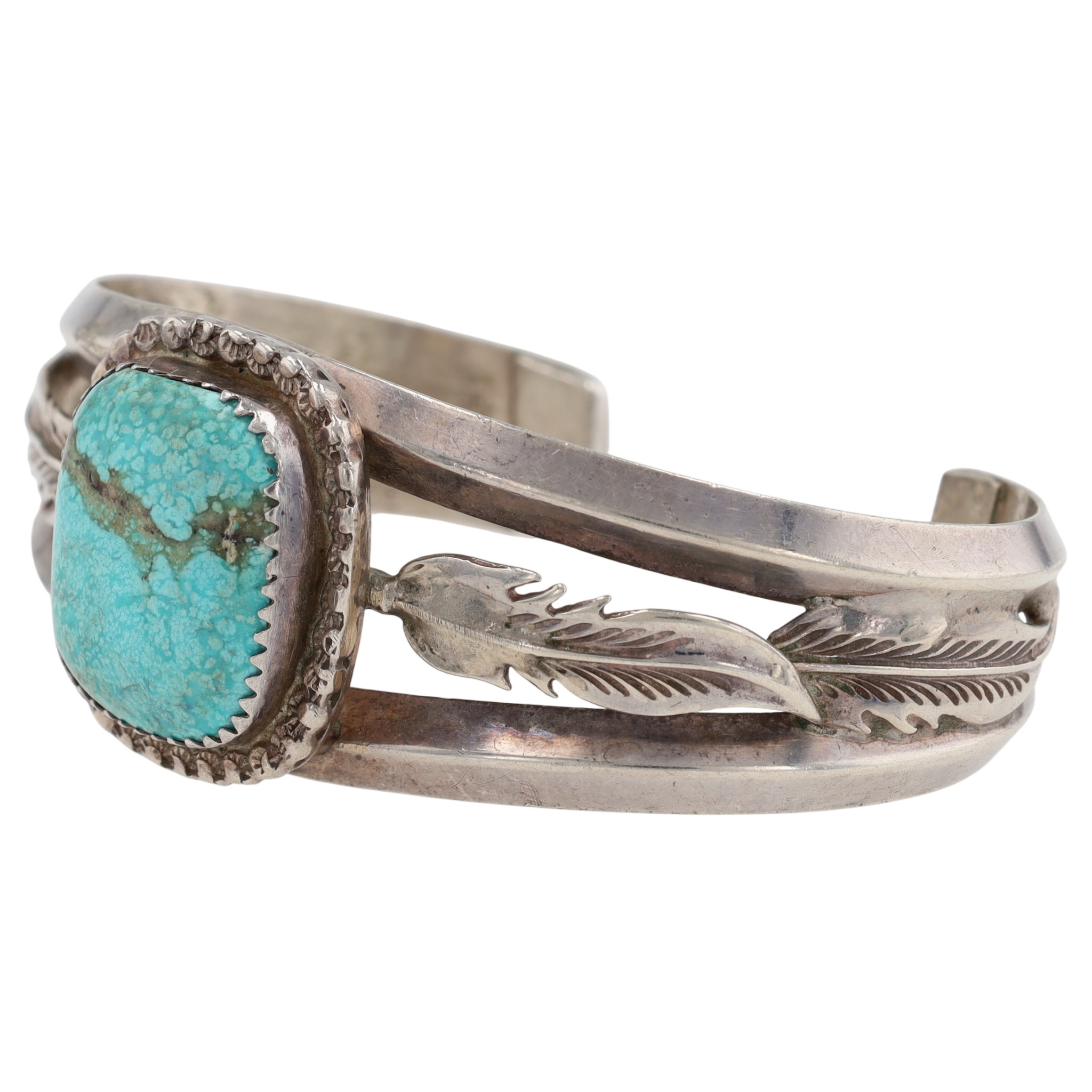 Hand Signed Navajo Sterling Turquoise Feather Cuff Bracelet – 30.3g