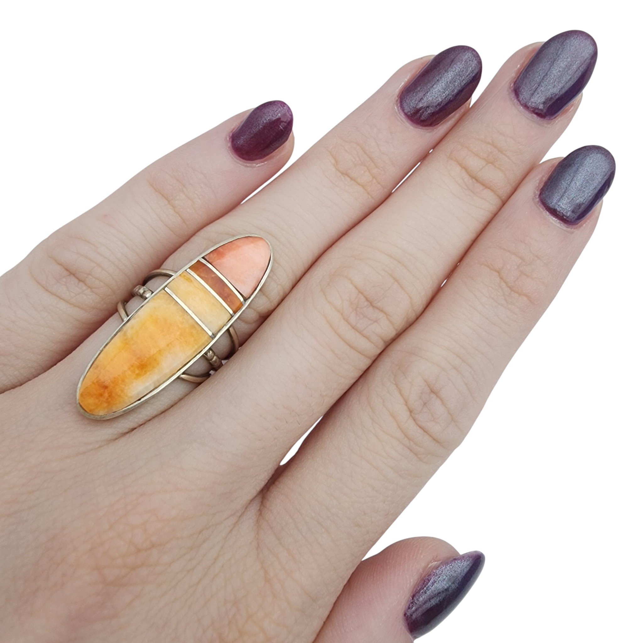 Harold Smith Navajo Sterling Spiny Oyster Inlay Ring Sz 5 – 6.2g
