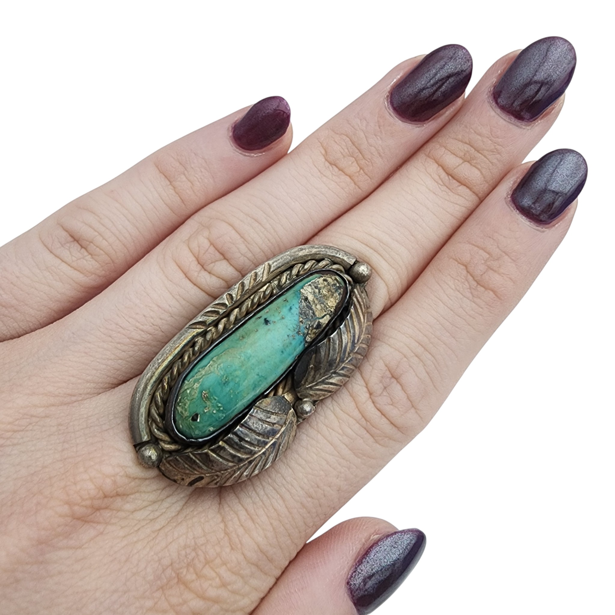 Vintage Navajo Sterling Turquoise Ring Sz 7- 15.3g