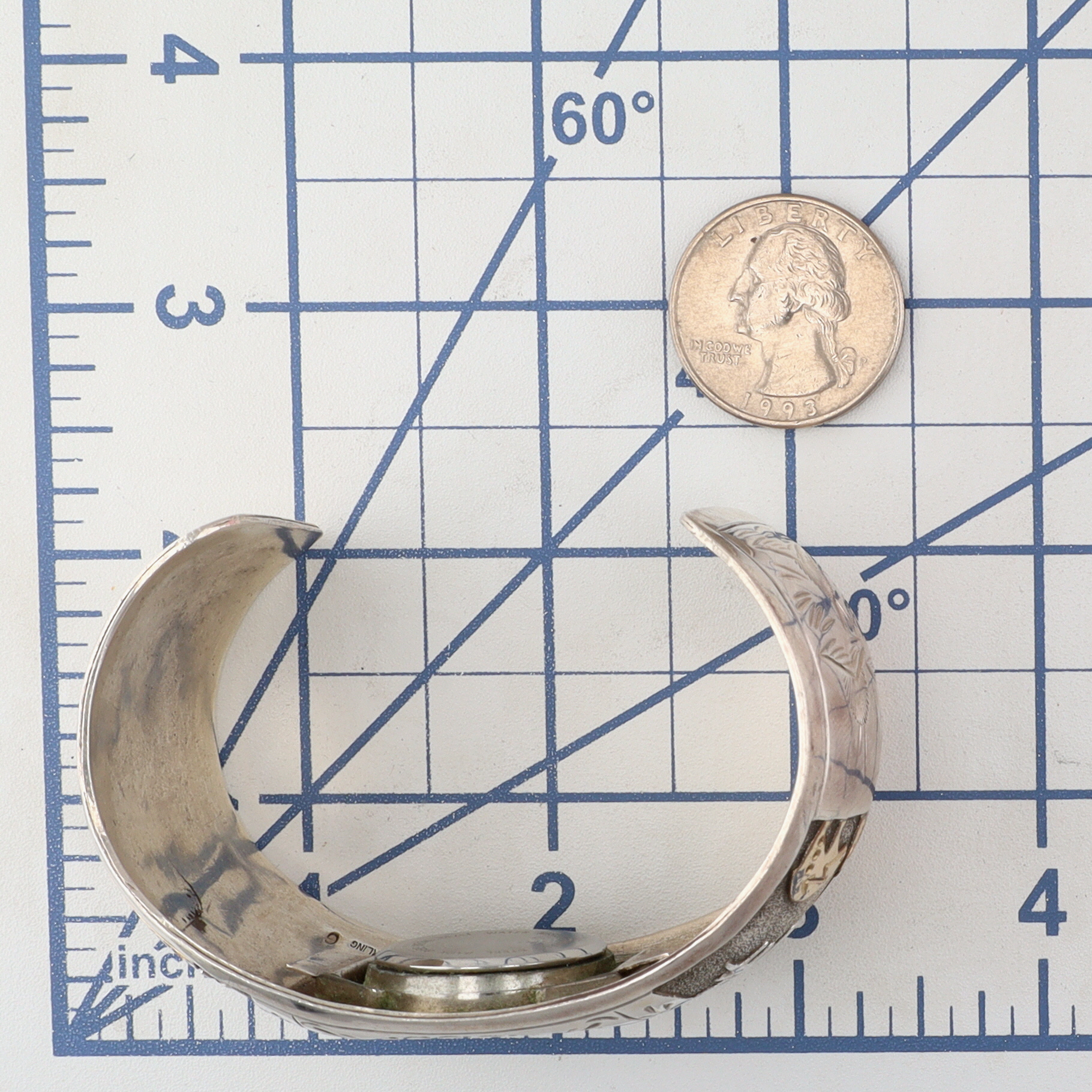 Signed ‘G’ Navajo Sterling Stamped & Textured Storyteller Watch Cuff Bracelet – 57.4g
