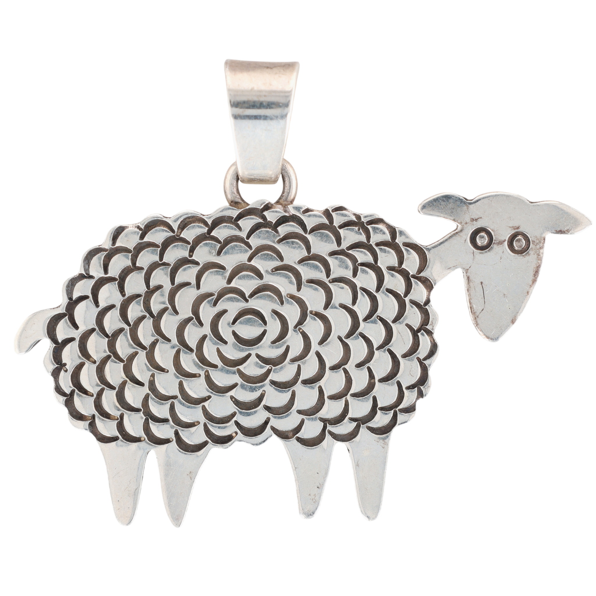 Allison Snowhawk Lee Navajo Sterling Stamped Sheep Pendant – 6.8g