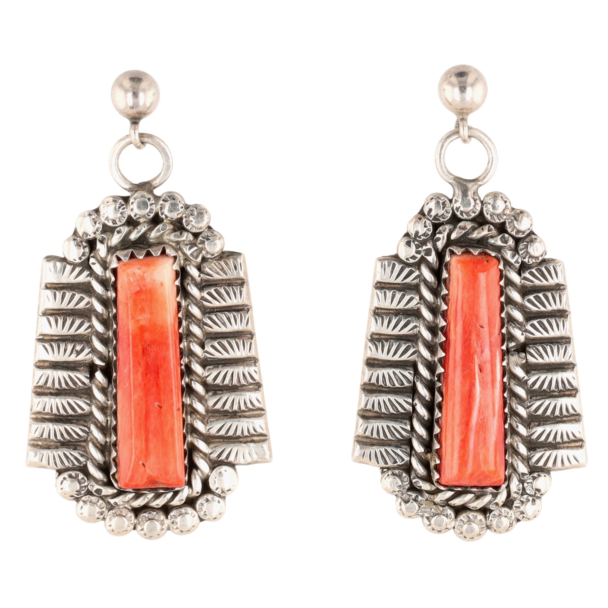 Signed BS Navajo Sterling Spiny Oyster Dangle Earrings – 10.6g