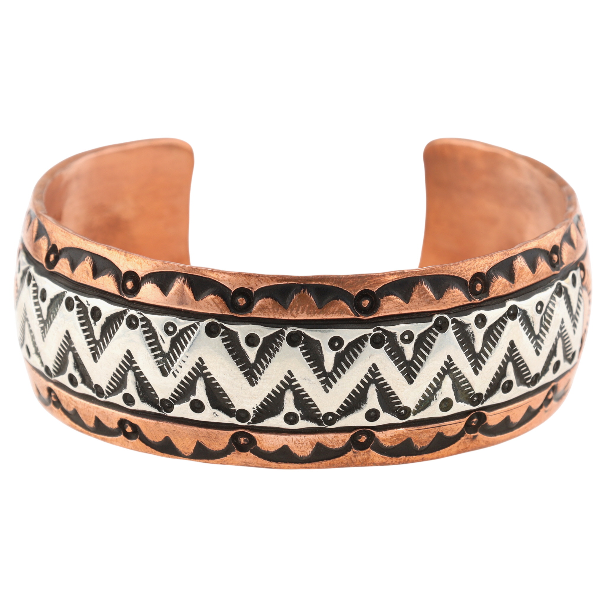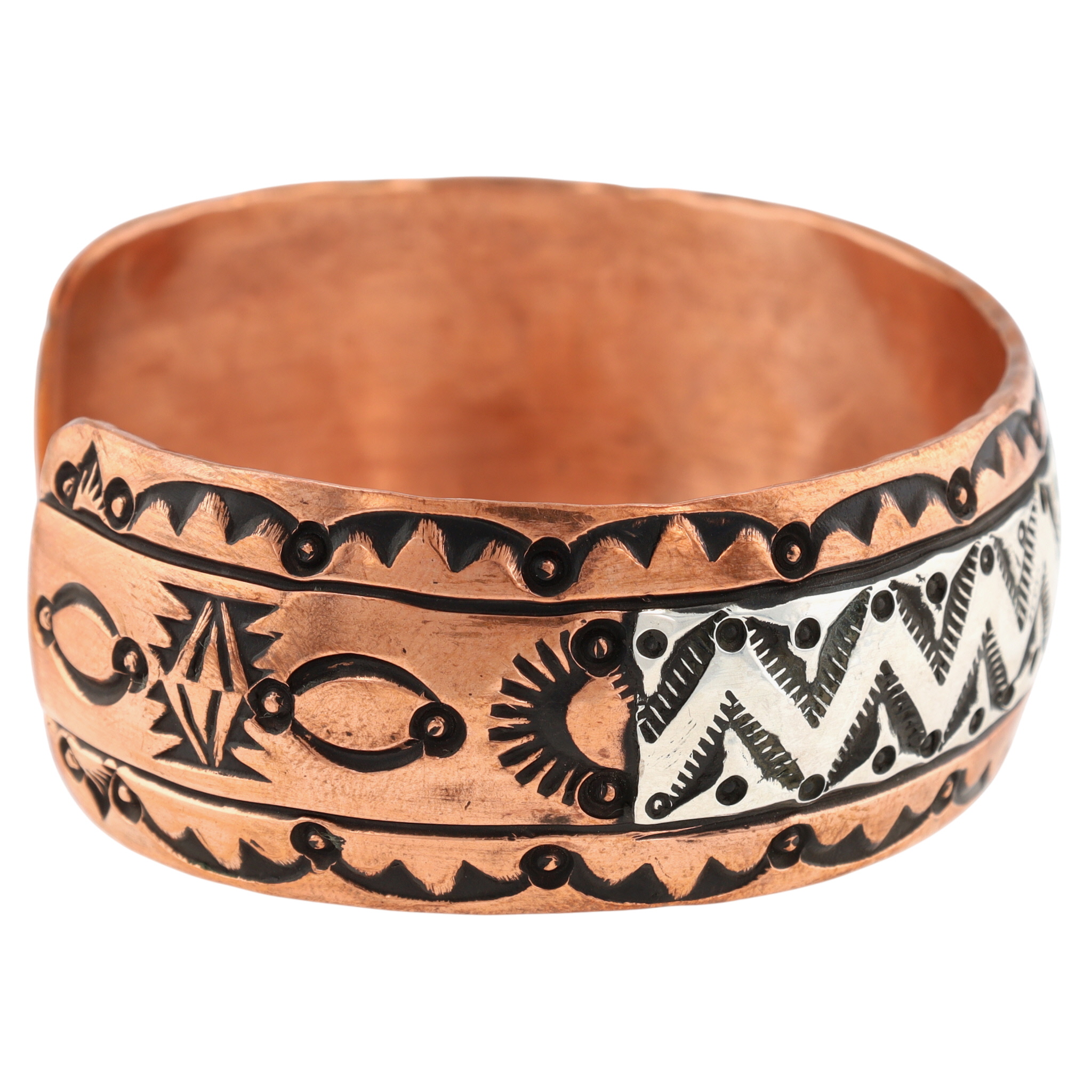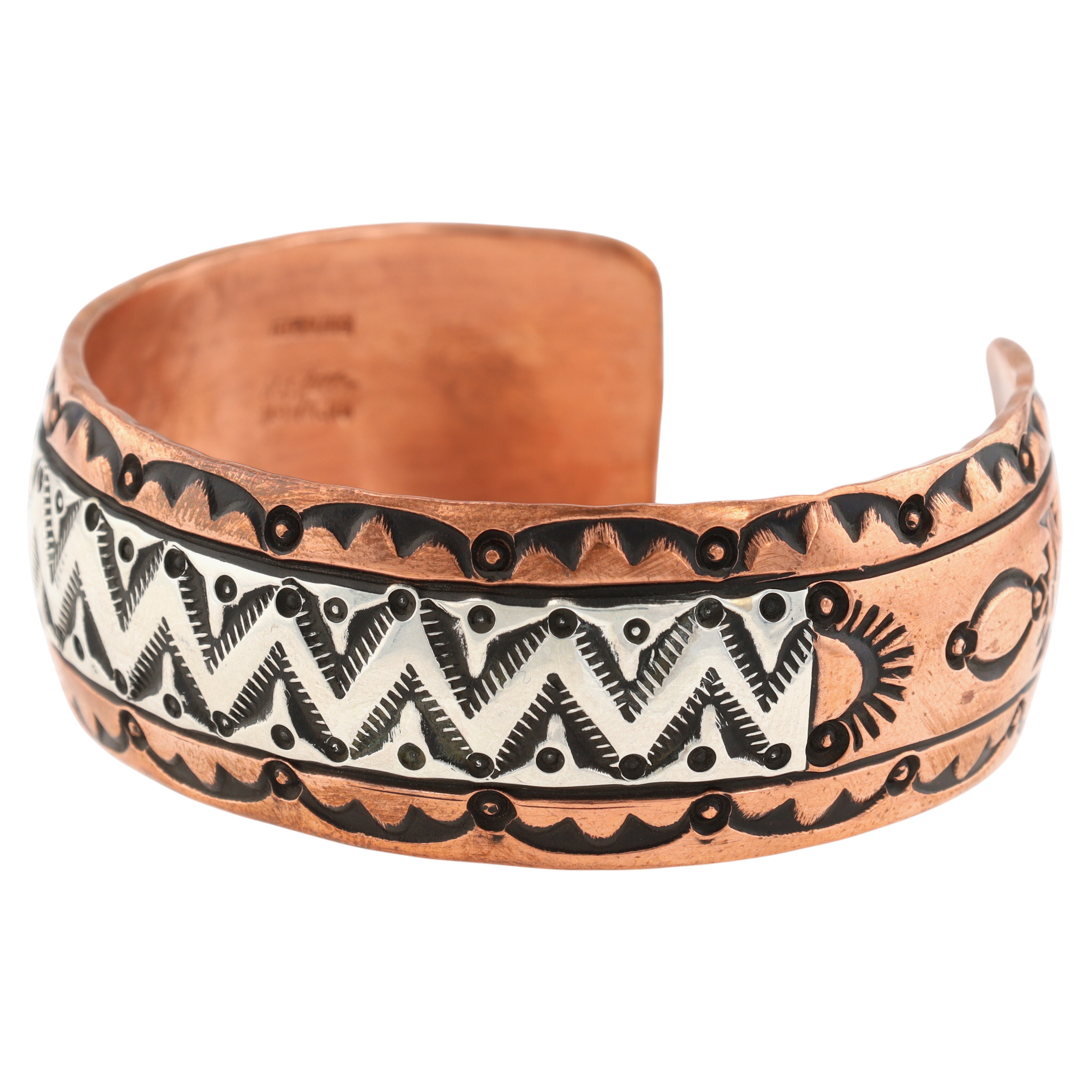 Charlene & Robert Little Navajo Copper & Sterling Stamped Cuff Bracelet – 45.5g