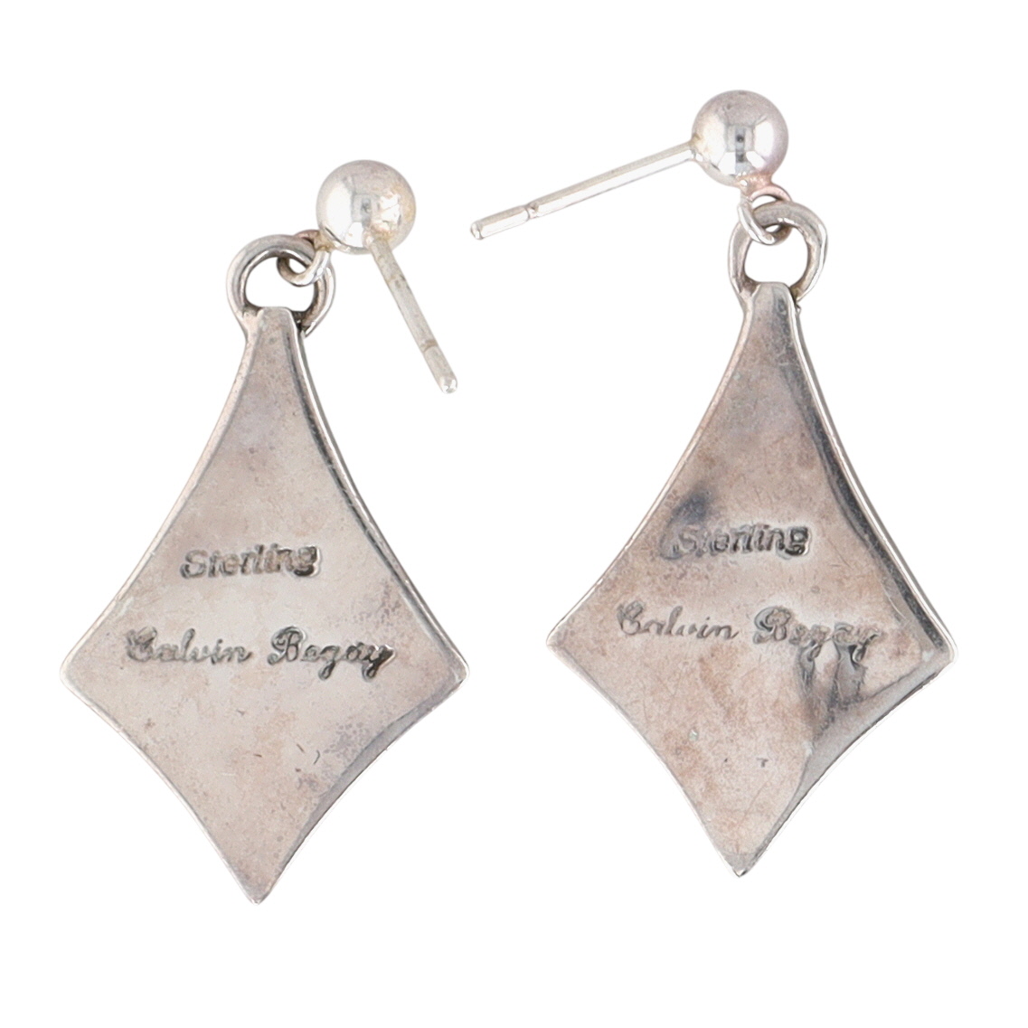 Calvin Begay Navajo Sterling and Multistone (Turquoise, Lapis Lazuli, Opal, Spiny Oyster) Inlay Earrings – 5.8g