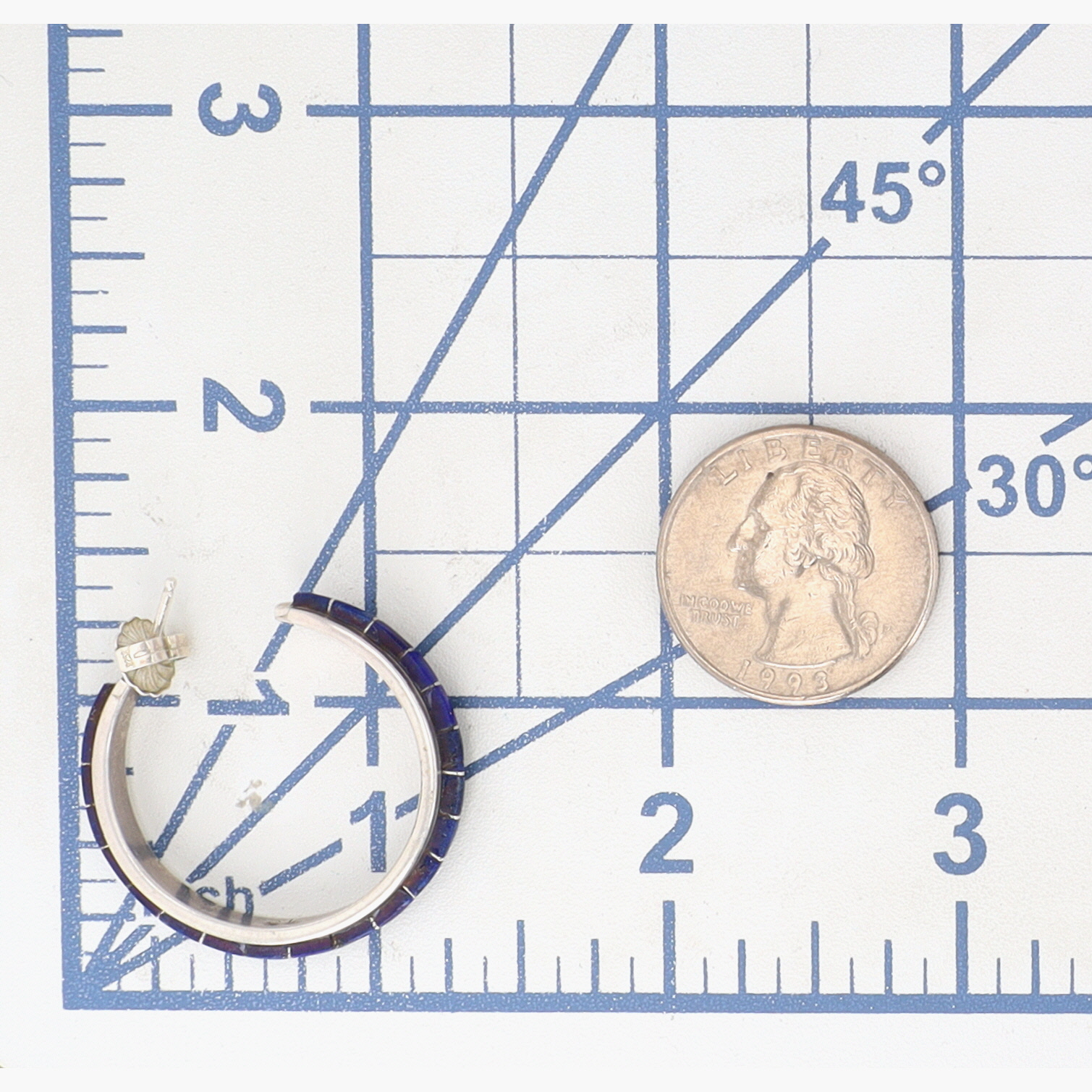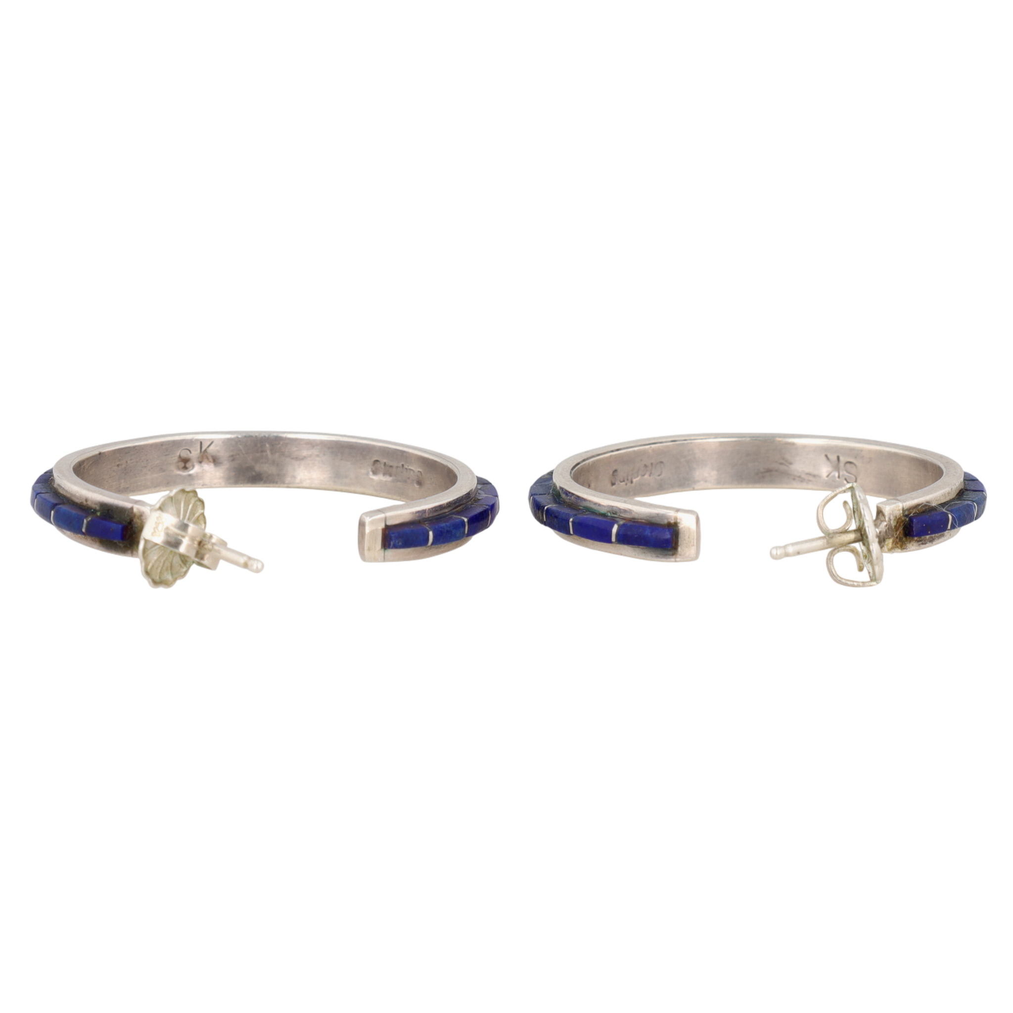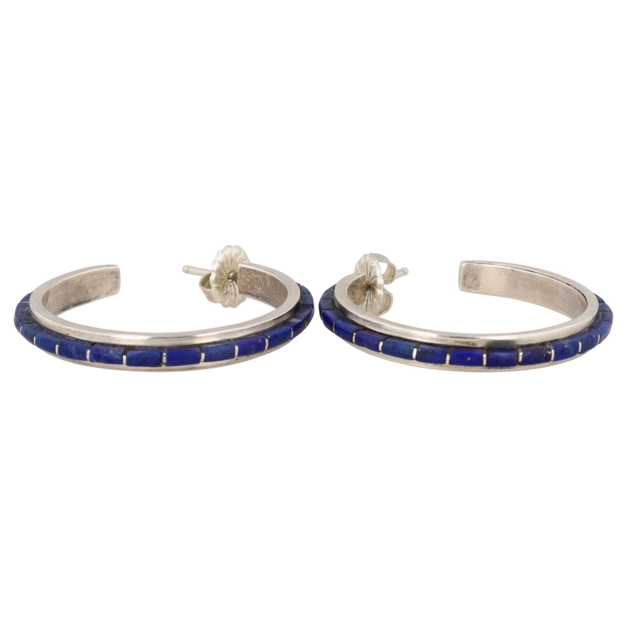 Sam Kee Navajo Sterling Lapis Lazuli Inlay Hoop Earrings – 8g