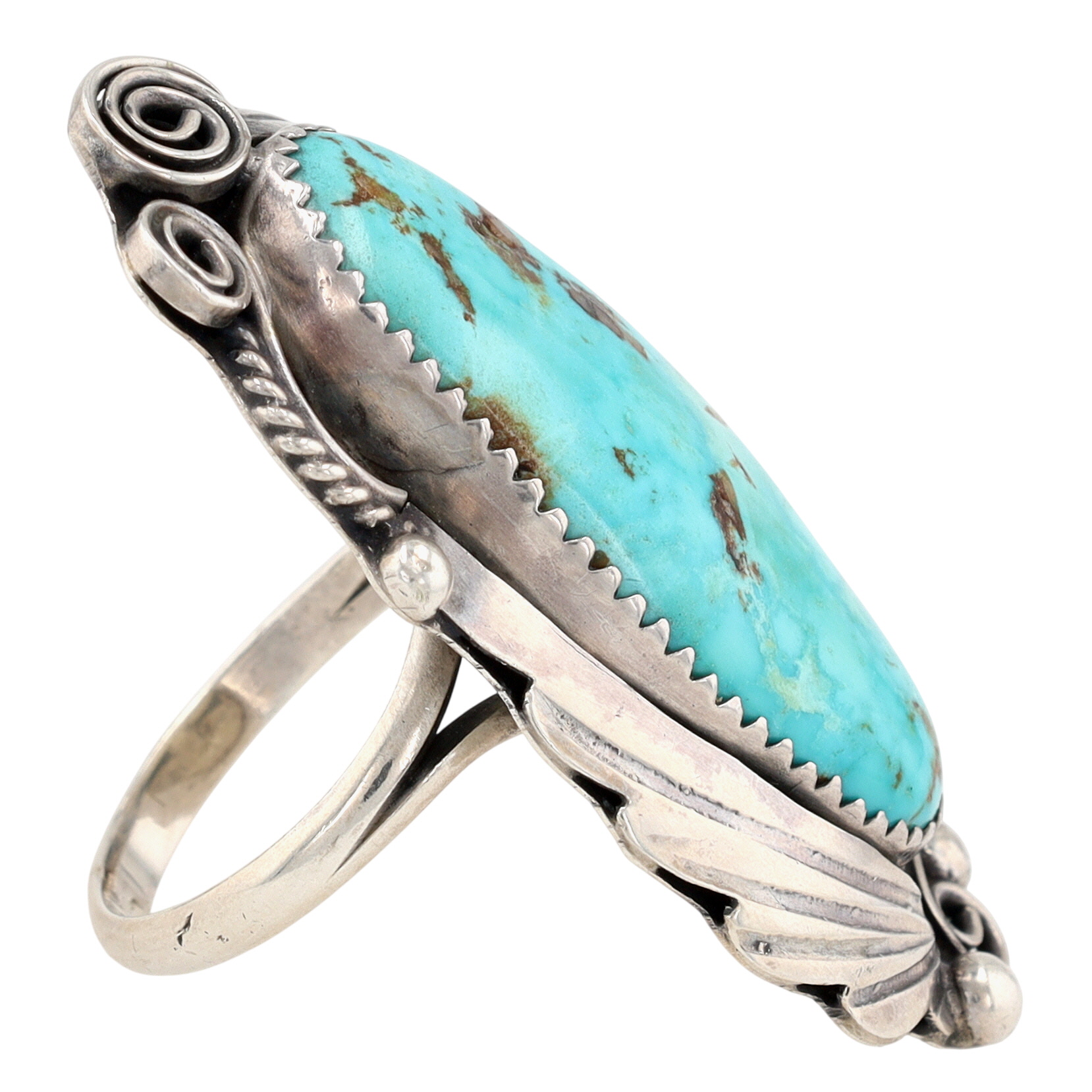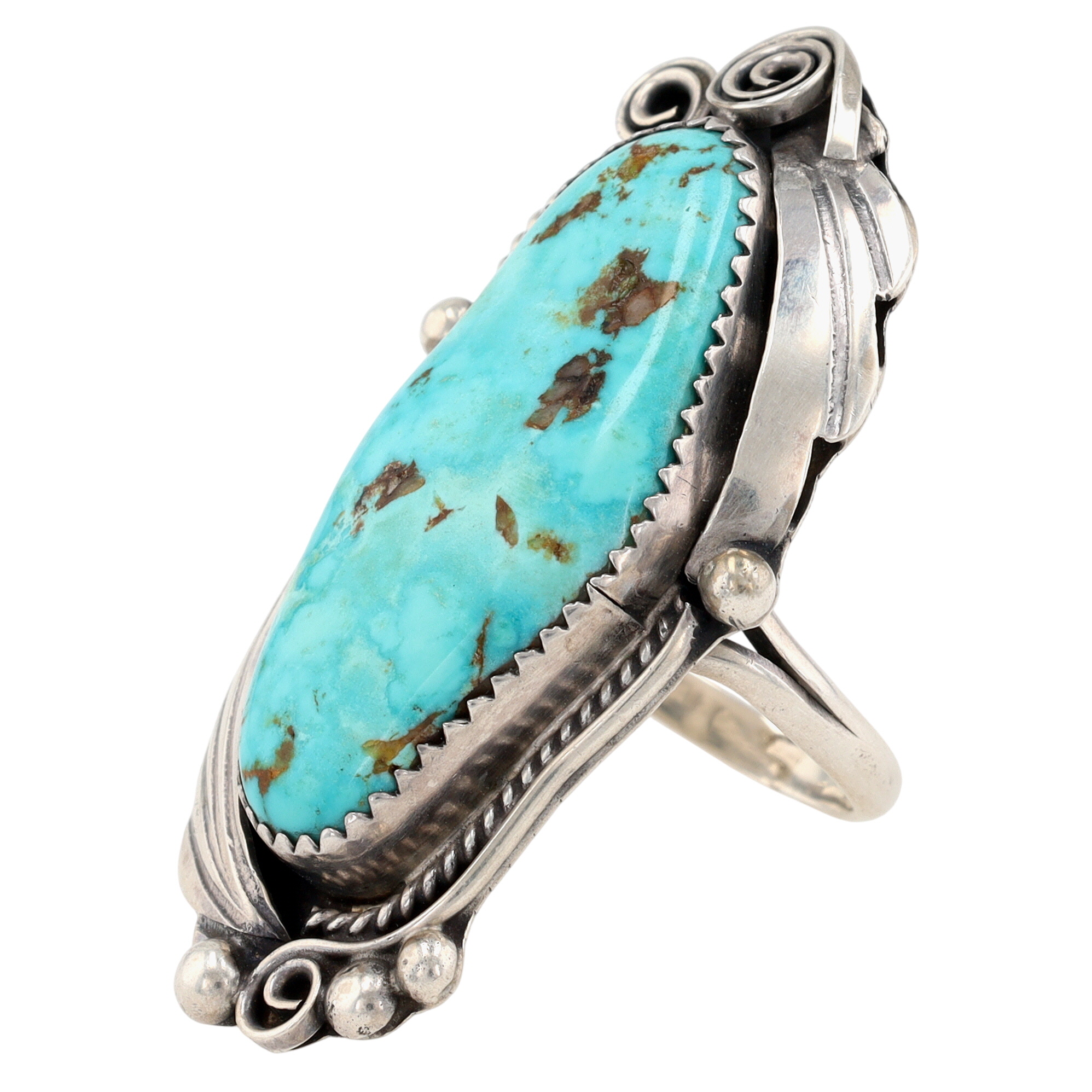 Amazing Justin Morris Navajo Sterling Turquoise Ring Sz 7.5 – The shape, color, and quality of the turquoise in this ring is amazing!! – 11.5g