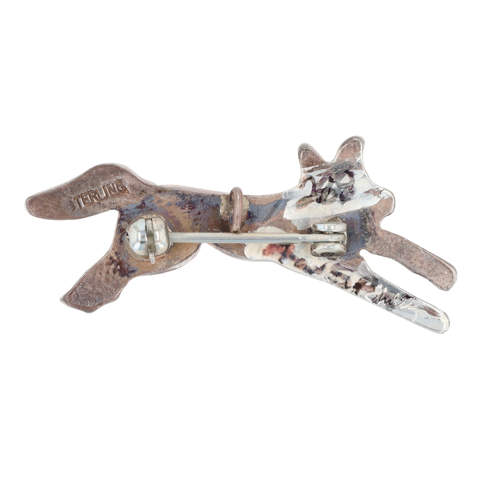 Rare! Vintage Andrea Lonjose Shirley (aka Andrea Pinto) Zuni Sterling Carved Multistone Inlay Fox Pendant Brooch – 3.5g – amazing piece