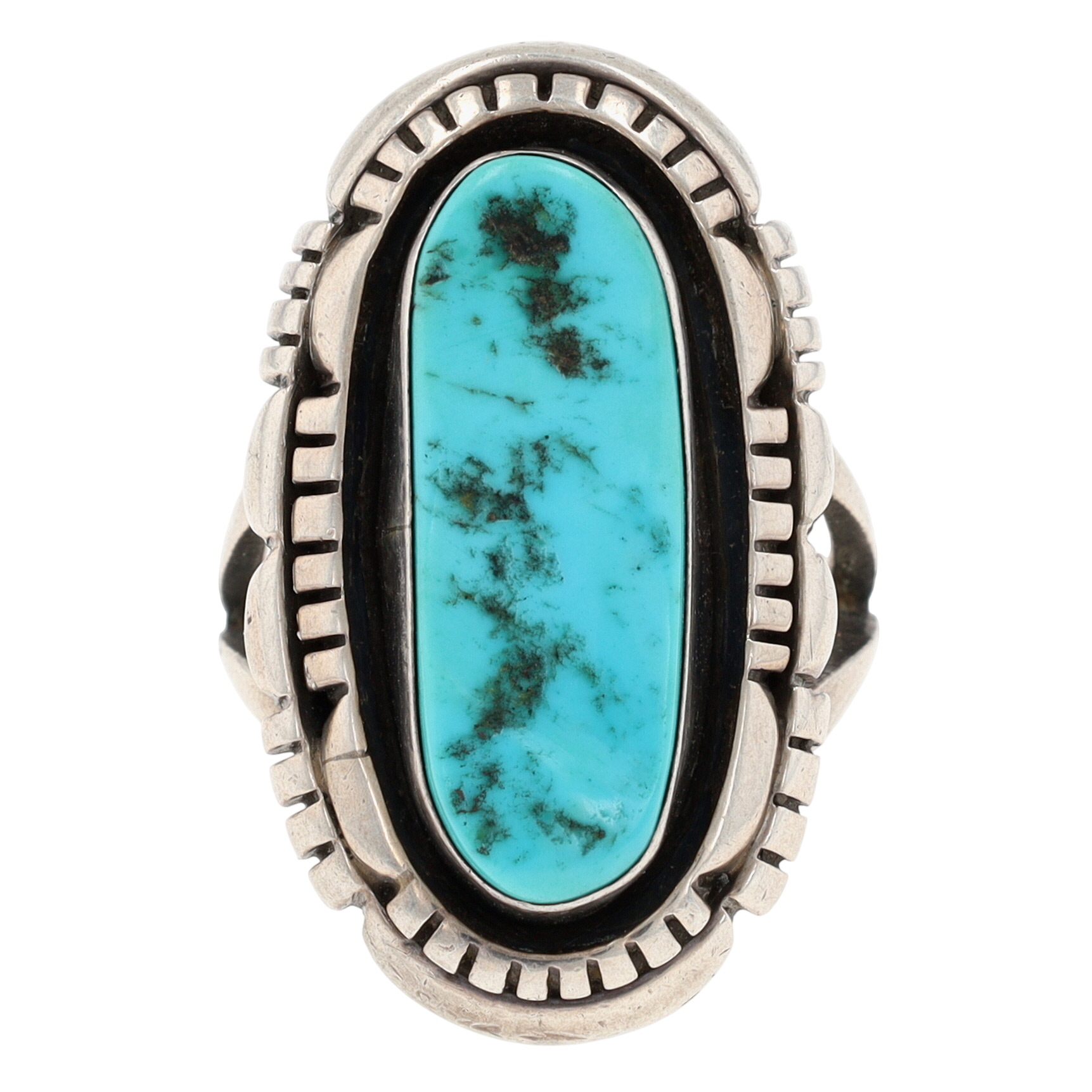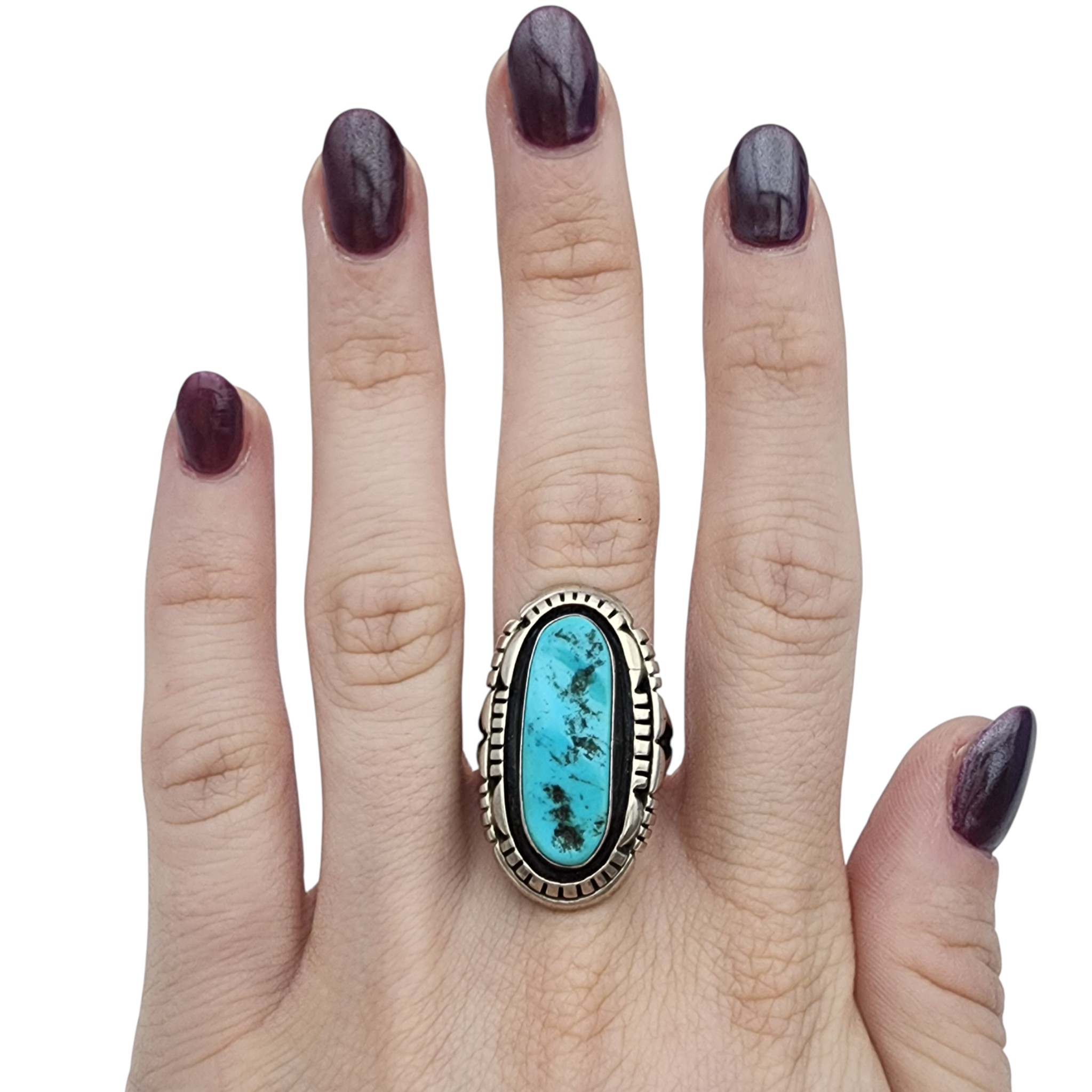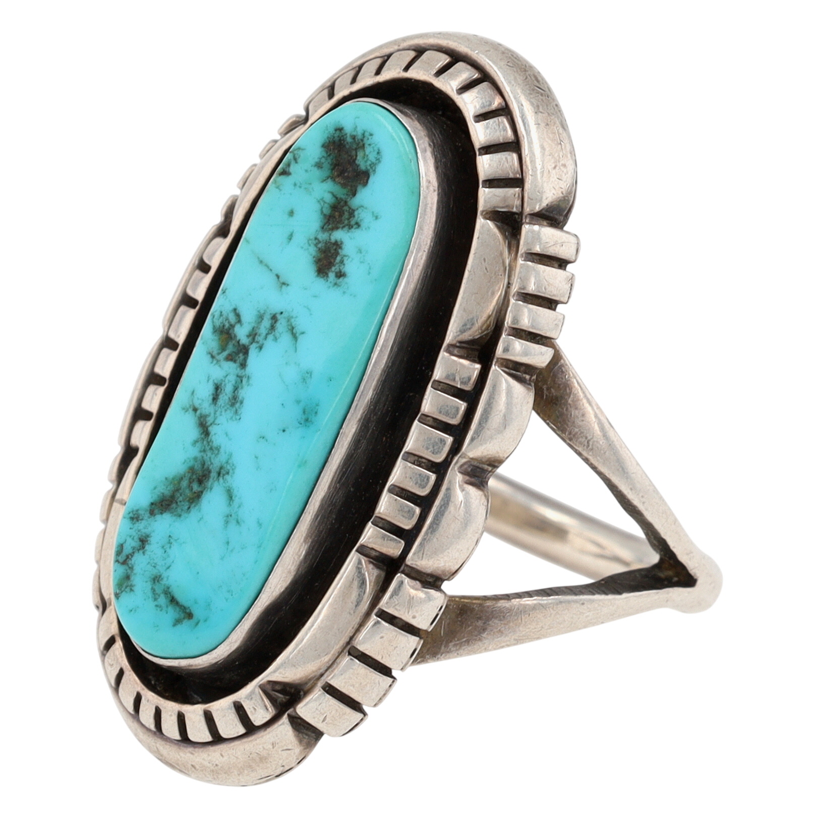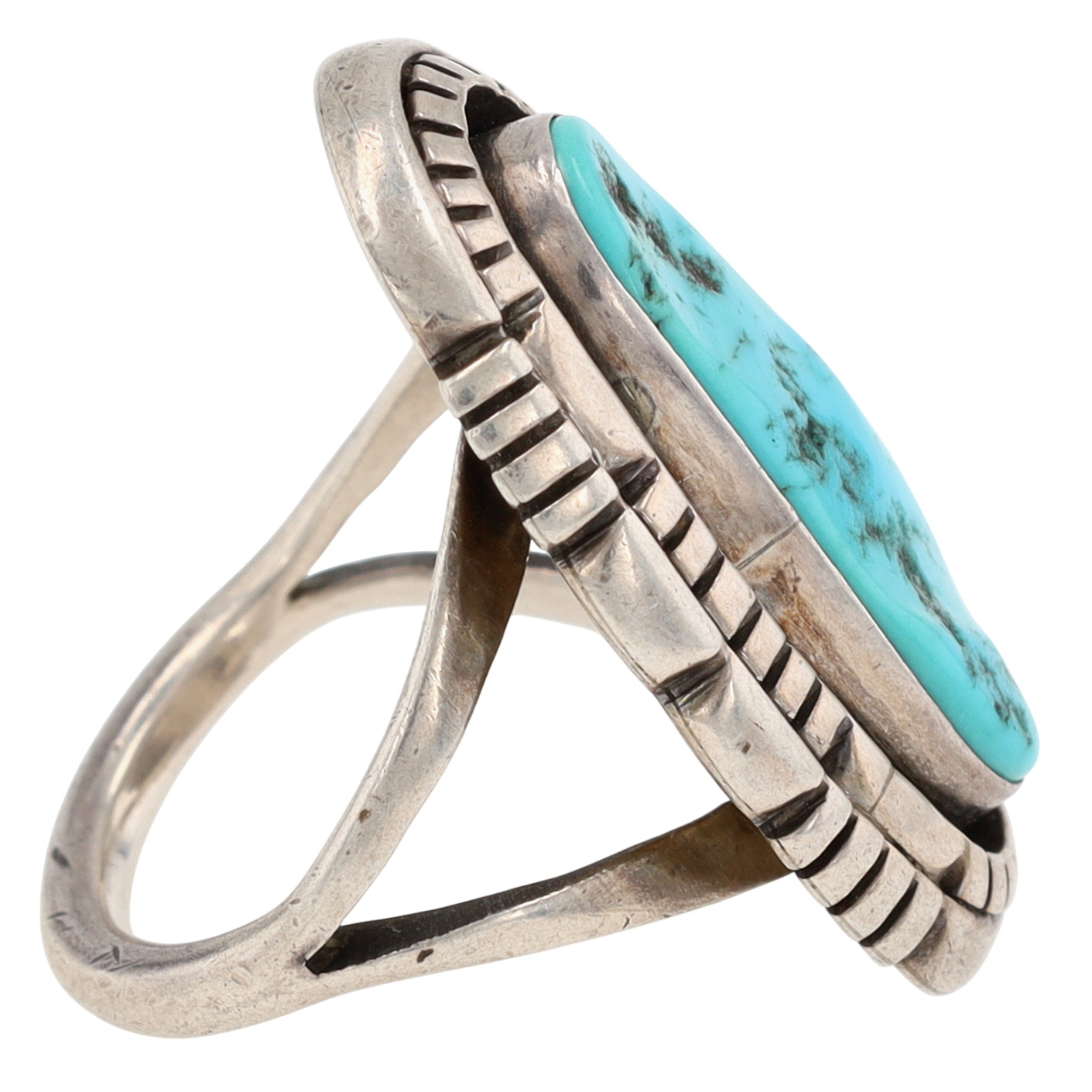 Dennison John Navajo Sterling Turquoise Shadow Box Ring Sz 7.5 – 11g