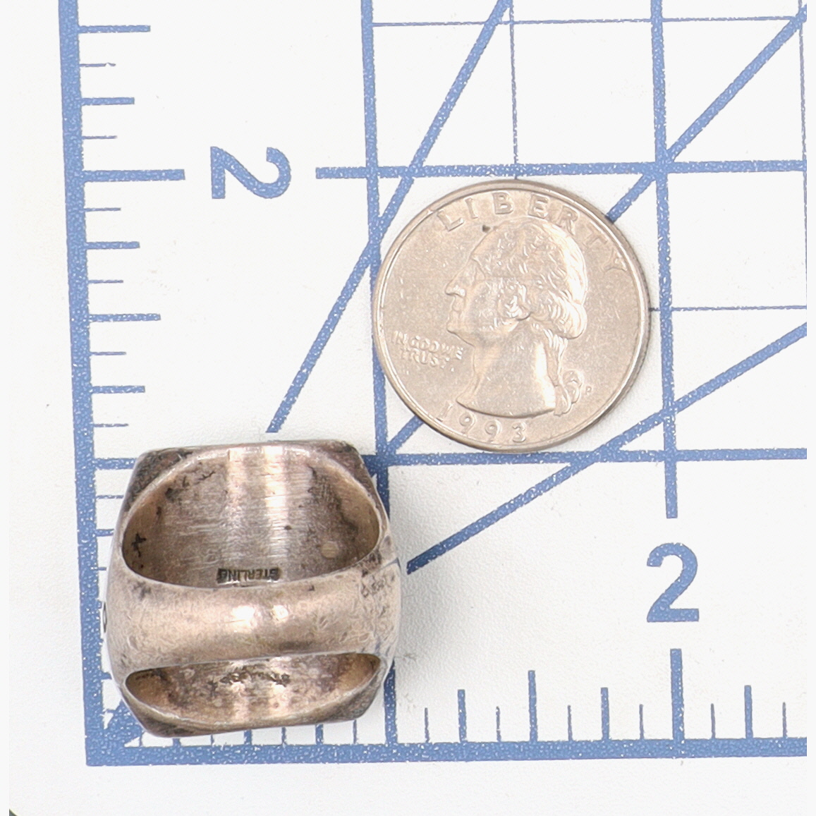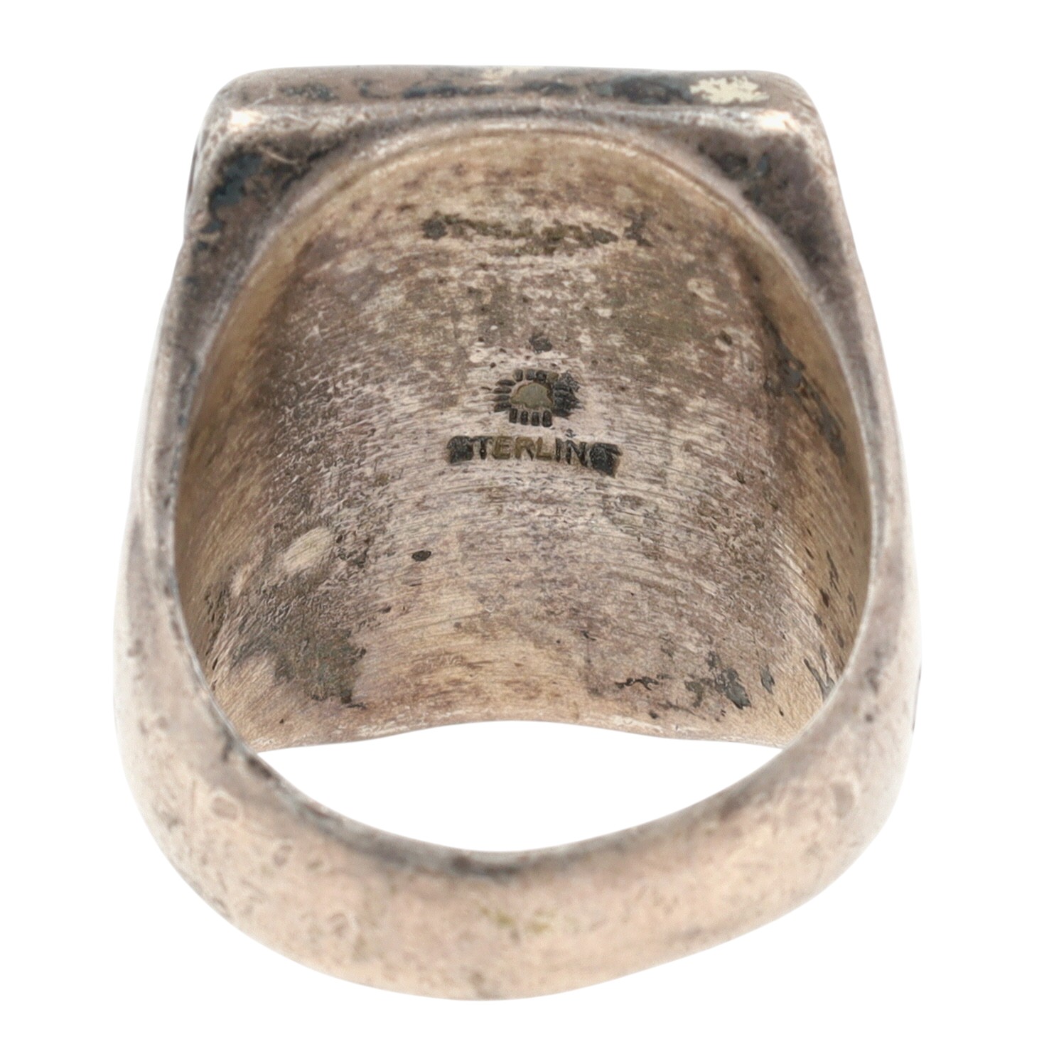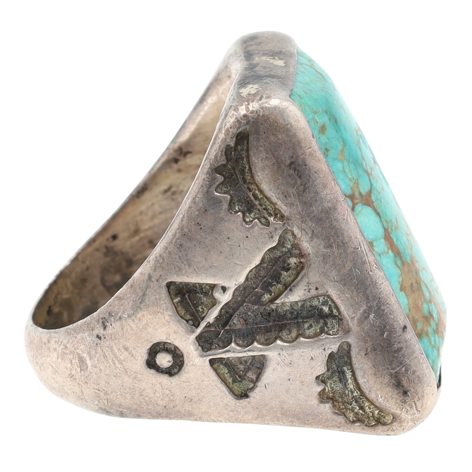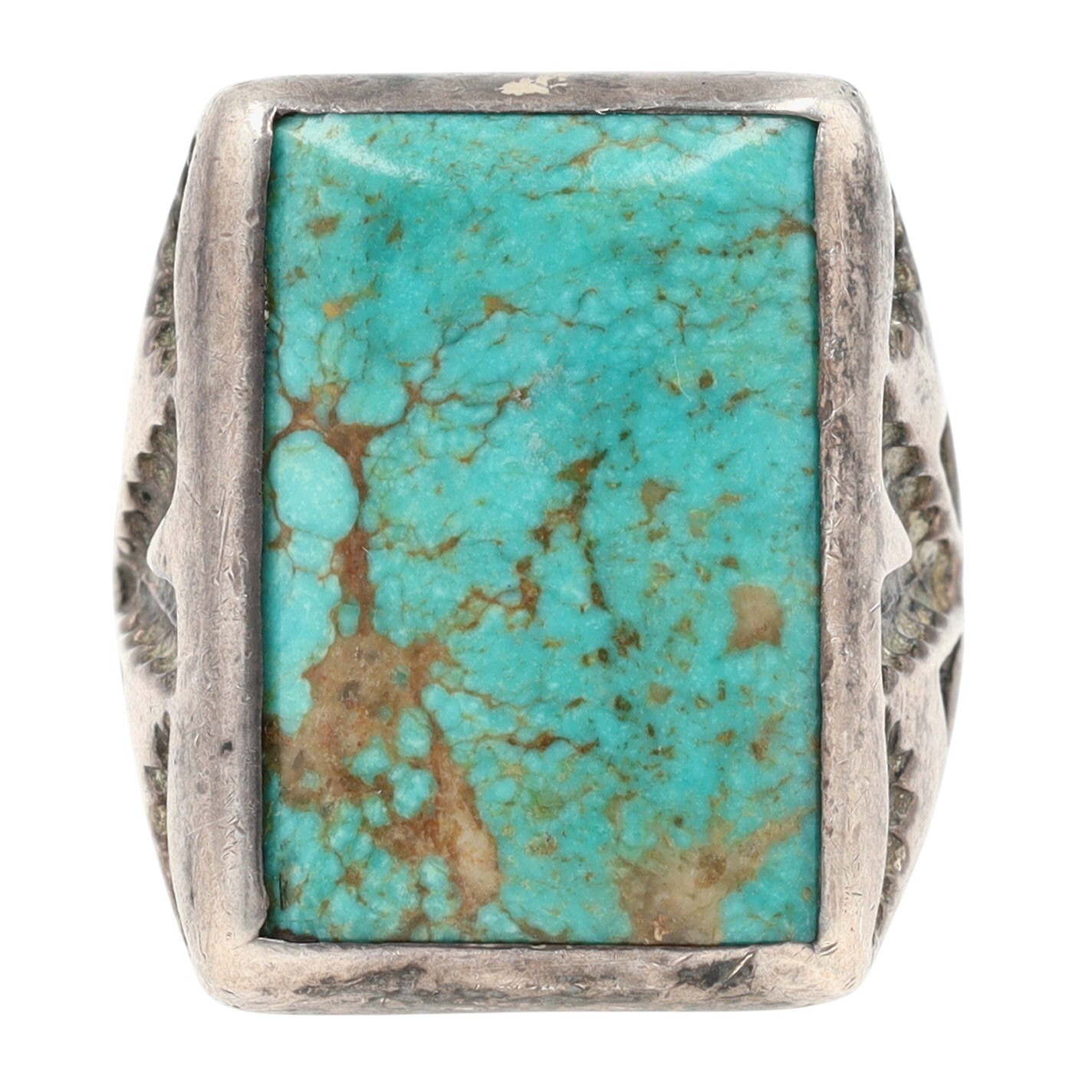 Vintage Bell Trading Post Sterling Stamped Turquoise Ring Sz 9 – 21g – nice, deep stampwork!