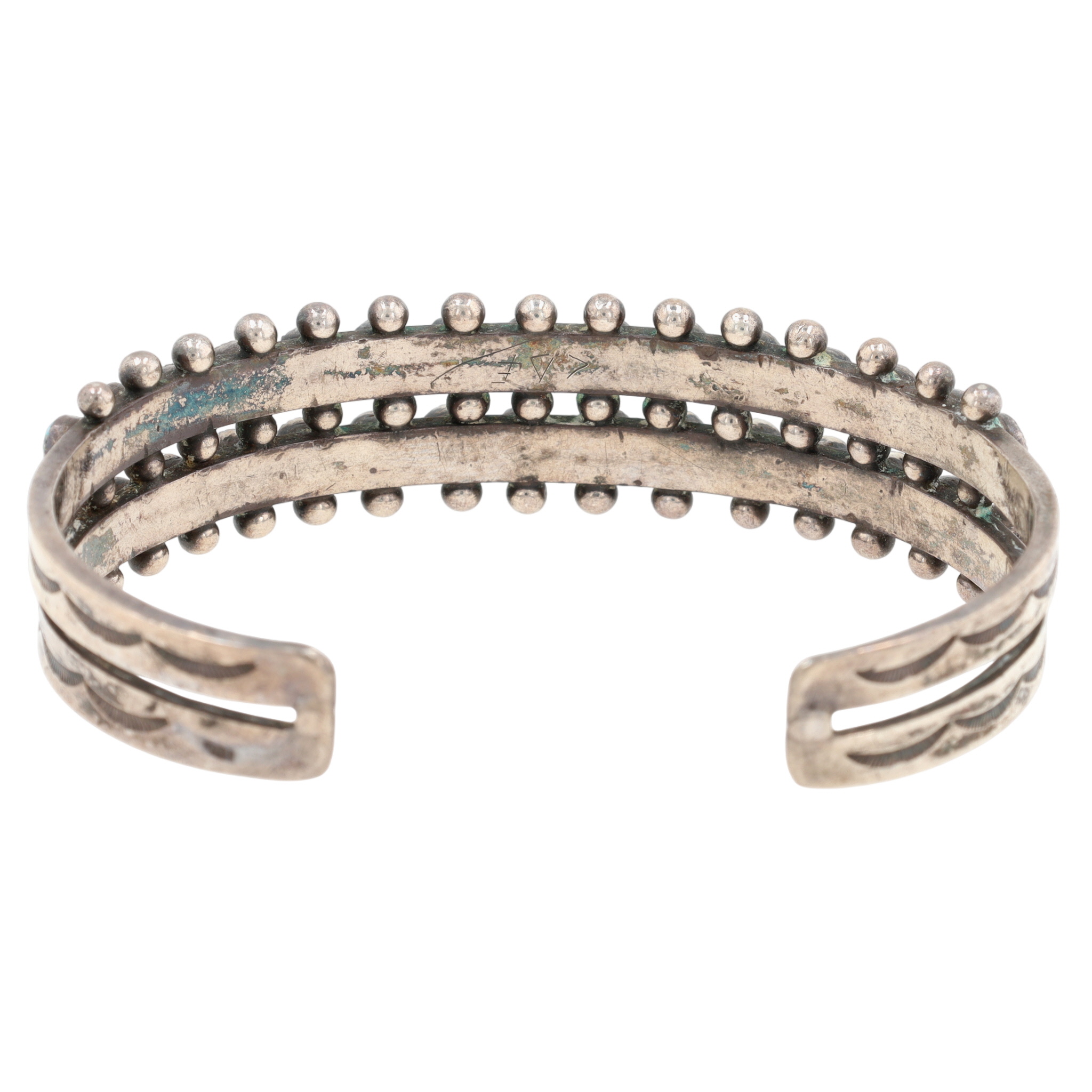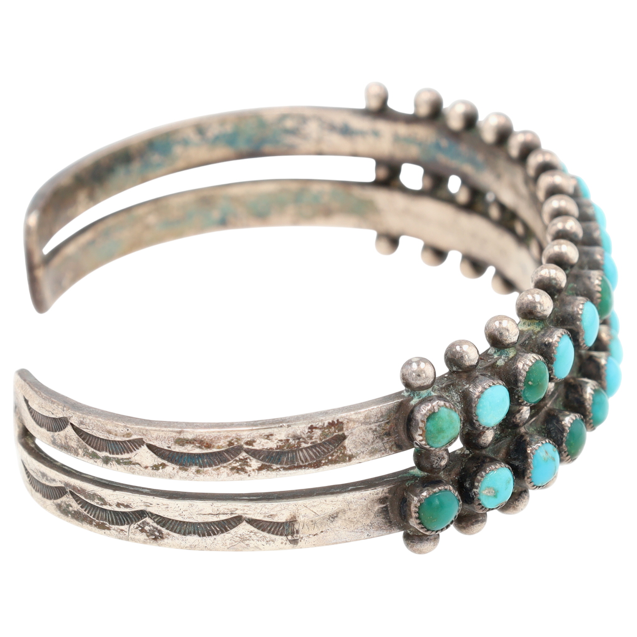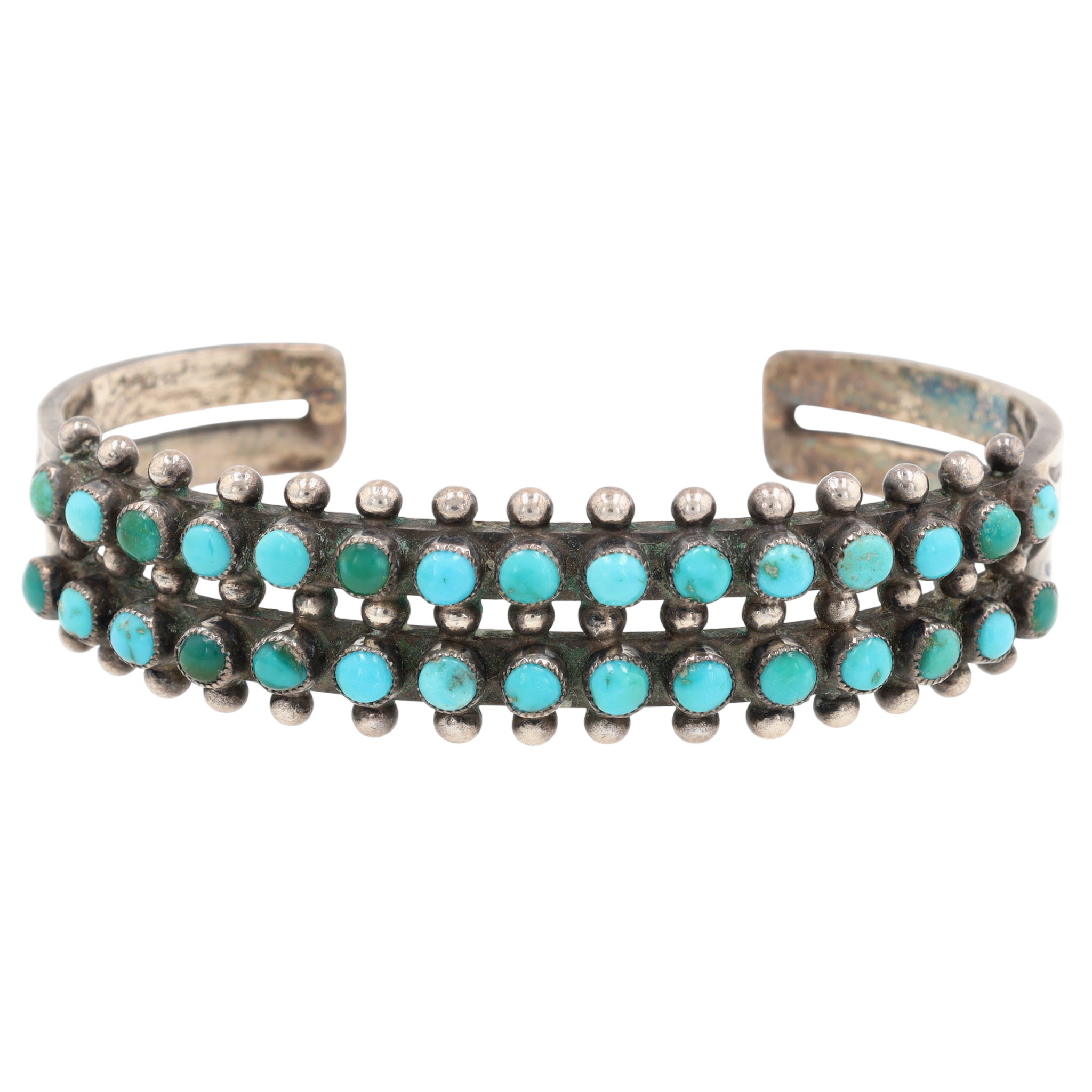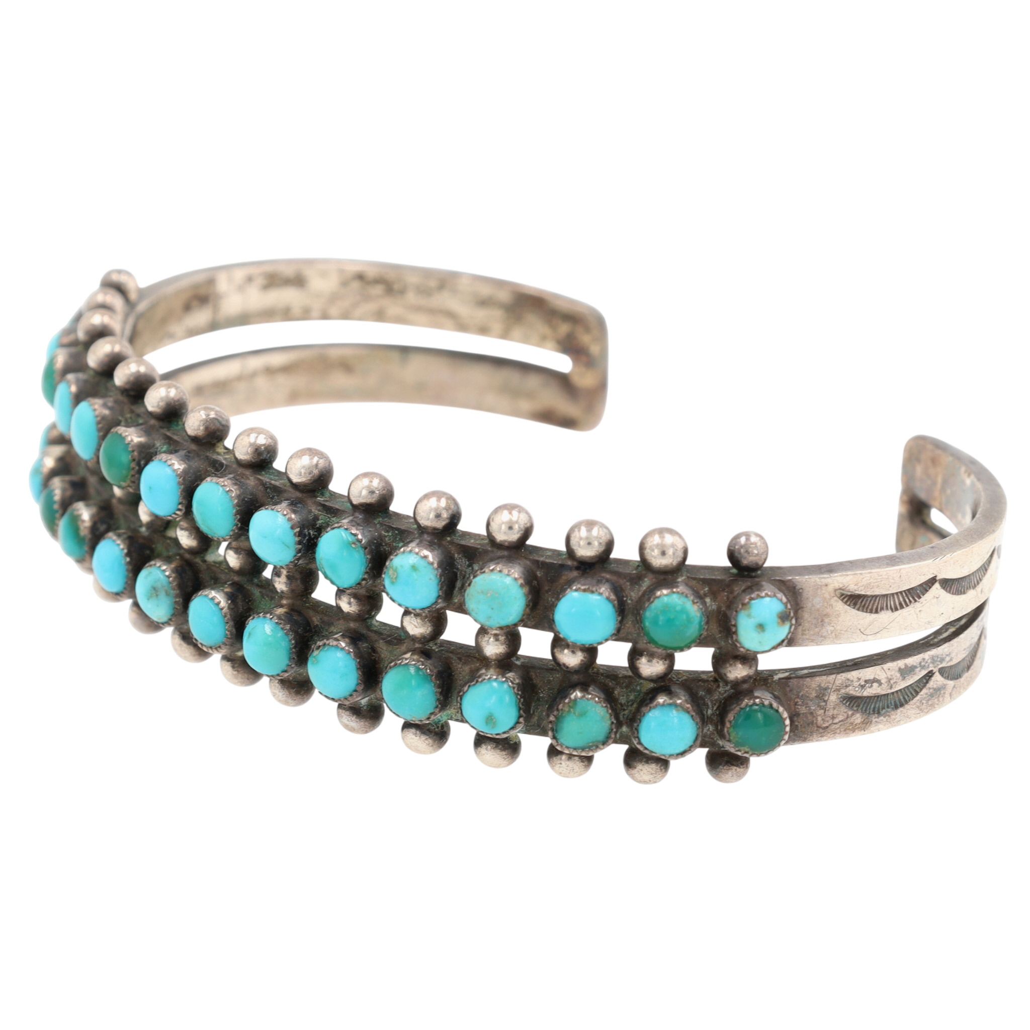 Vintage Zuni Sterling Snake Eye Turquoise Double Row Cuff Bracelet – 24.7g