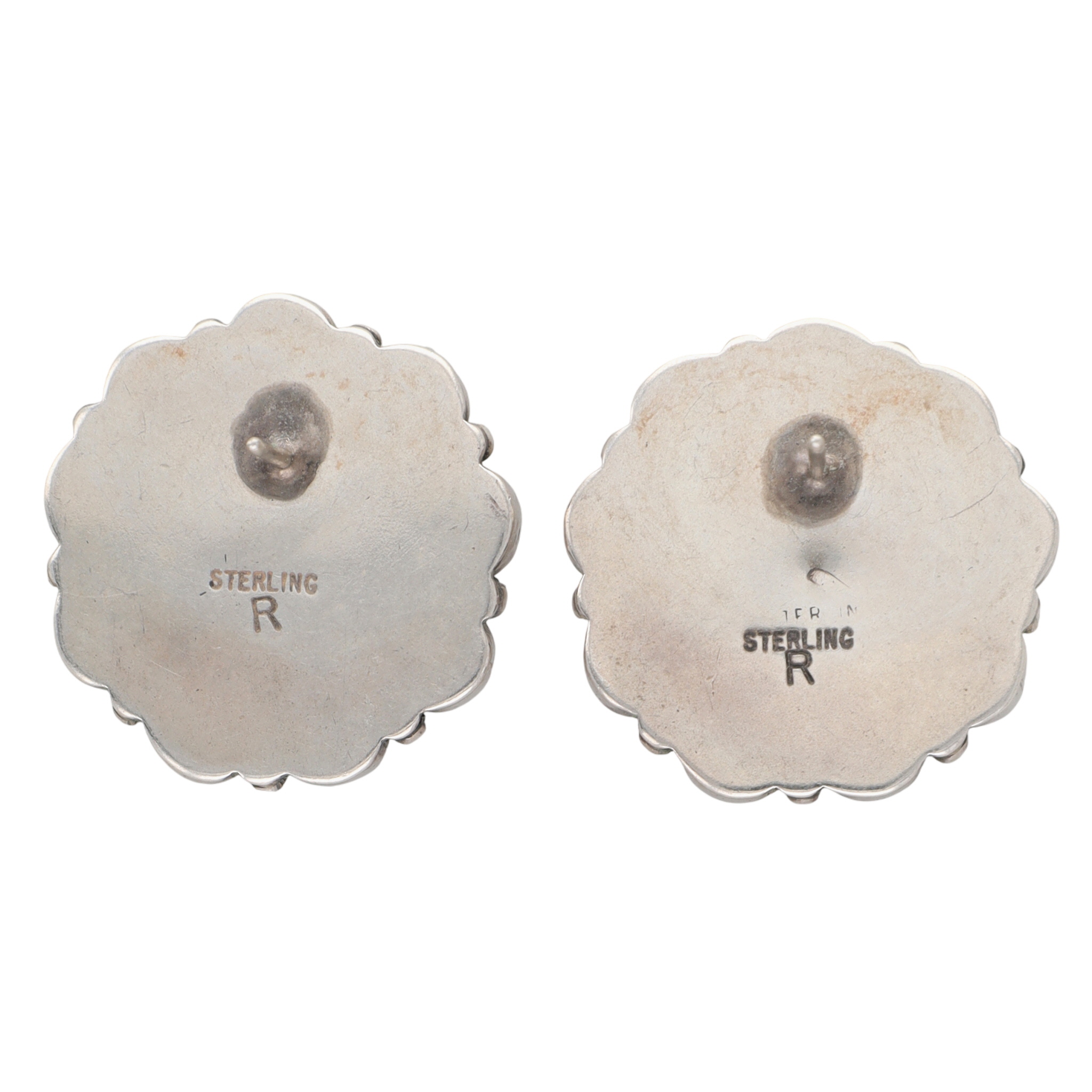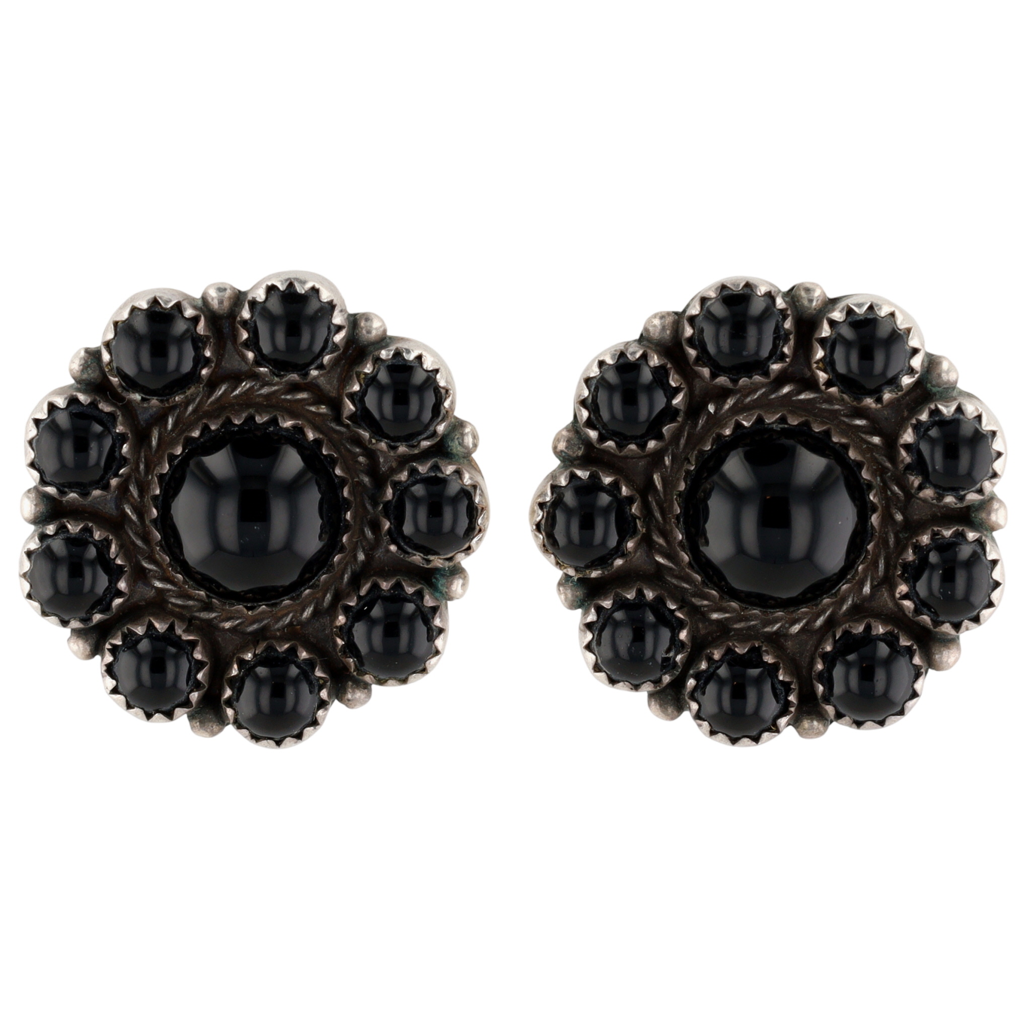 Signed R Navajo Sterling Onyx Cluster Earrings – 12.1g – approx. 1″d