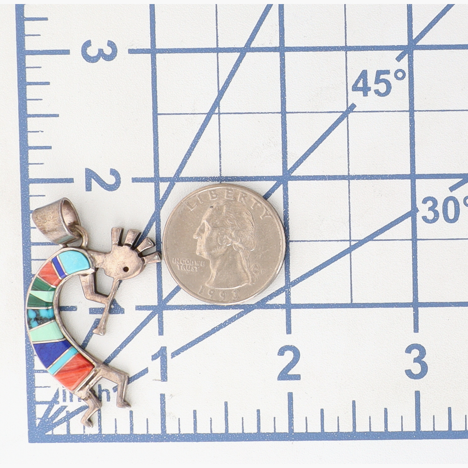 Calvin Begay Navajo Sterling Multistone (Various Turquoises, Spiny Oyster, Malachite, Lapis Lazuli, etc.) Inlay Kokopelli Pendant – 6.7g