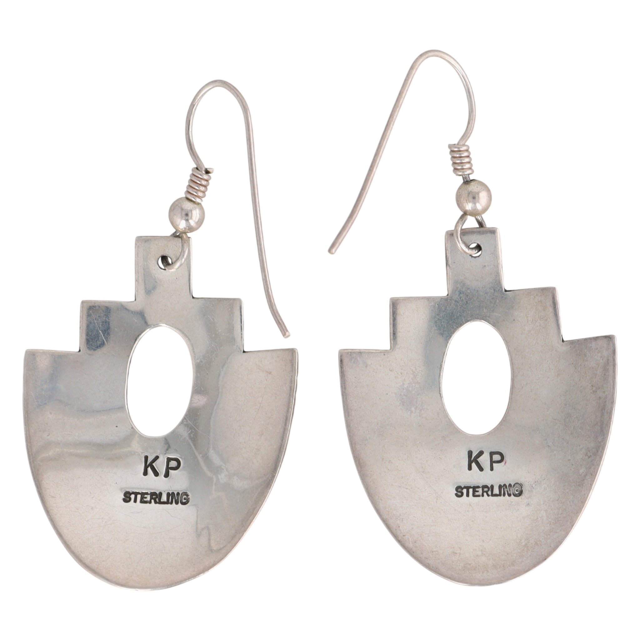 Signed Navajo Sterling Stamped Turquoise Earrings – 6.4g