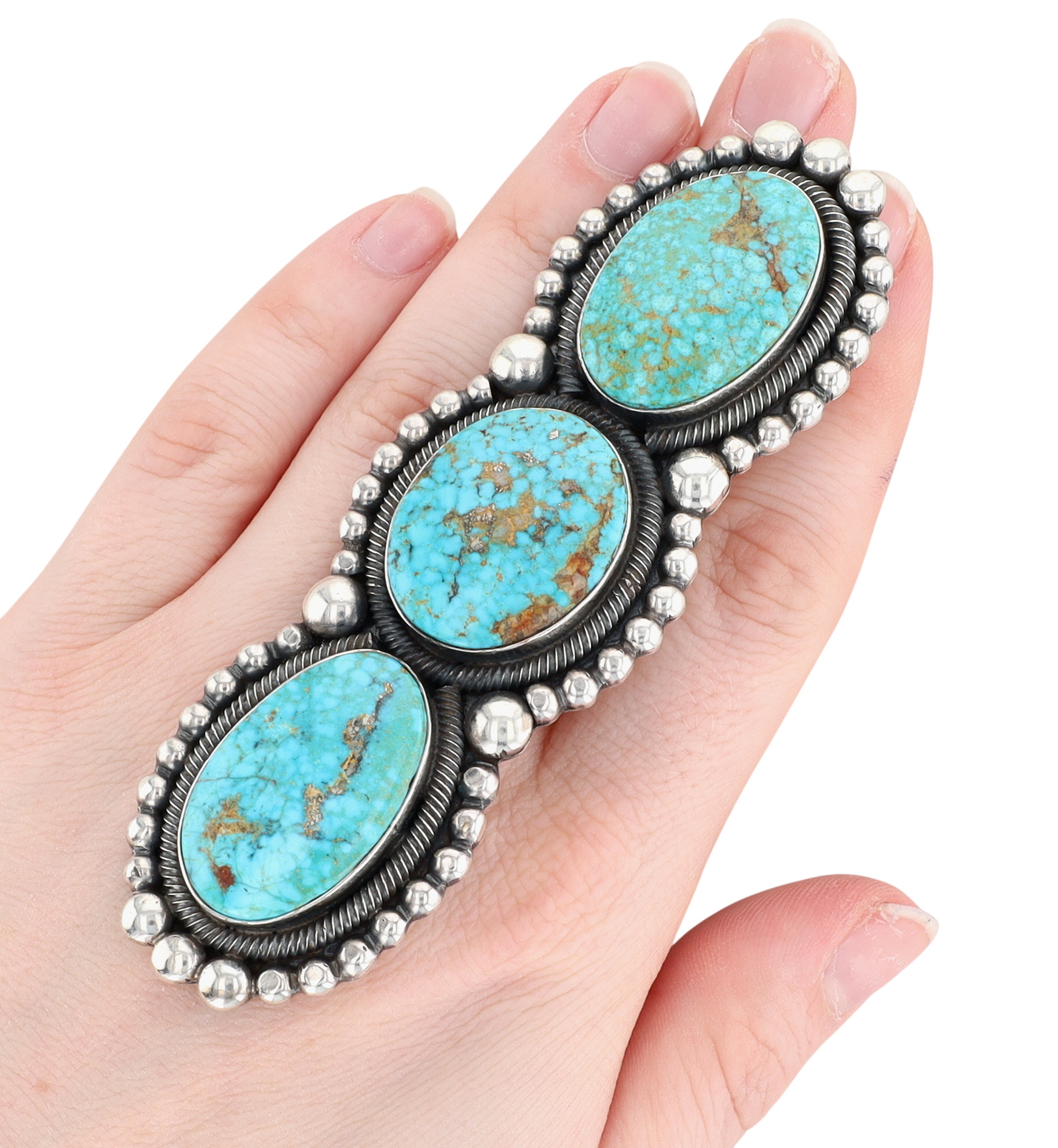 Wow! HUGE Readda Begay Navajo Sterling High Grade Turquoise Totem Statement Ring, Adjustable Sizing – 73.2g – approx 4.25″ long! A rare & beautiful find!