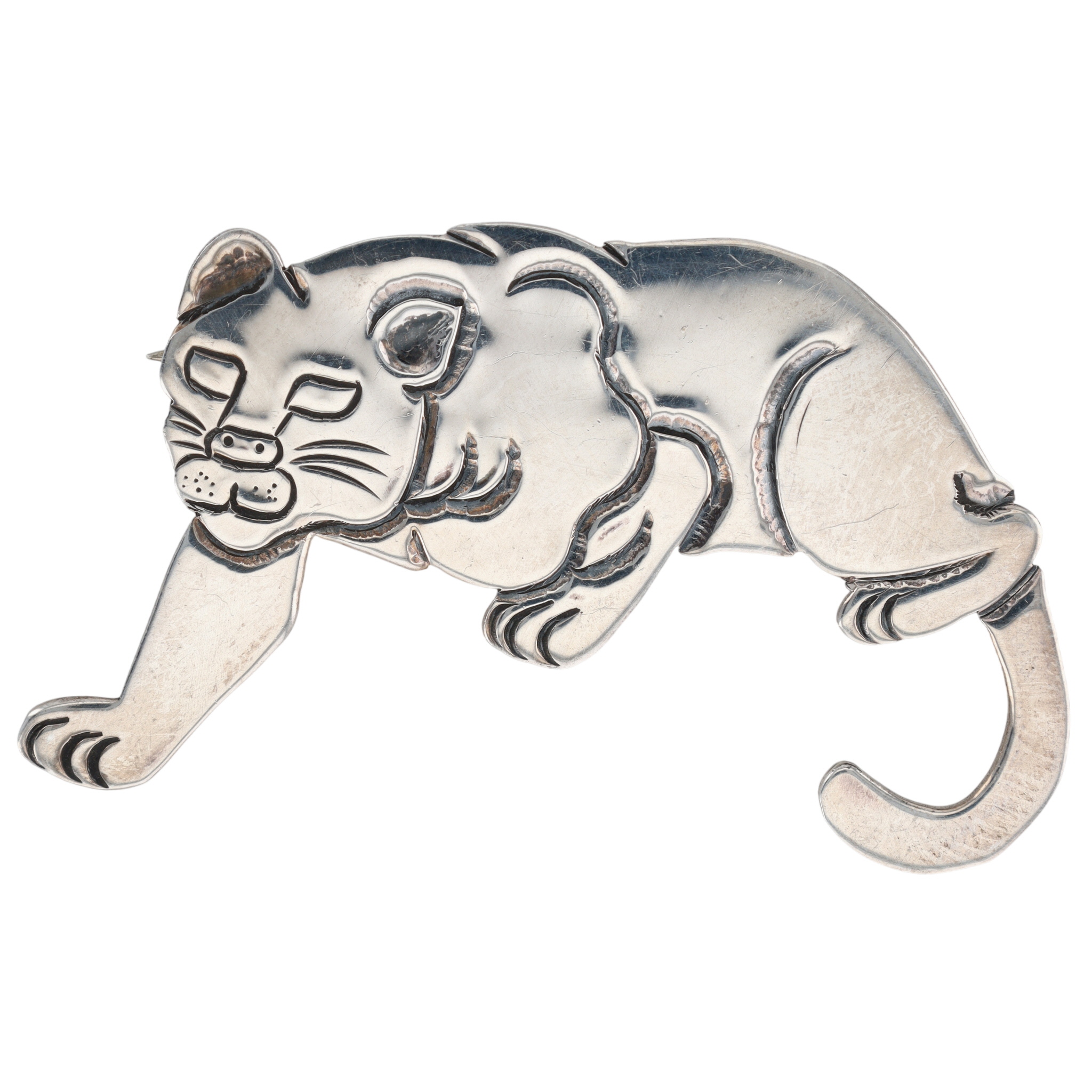 Rare Find! Multiple Award Winner Clarence Lee (1952-2011) & Russell Lee Navajo Sterling Silver Prowling Panther Brooch – 10.7g – Approx. 2.1″ long x 1.3″ tall