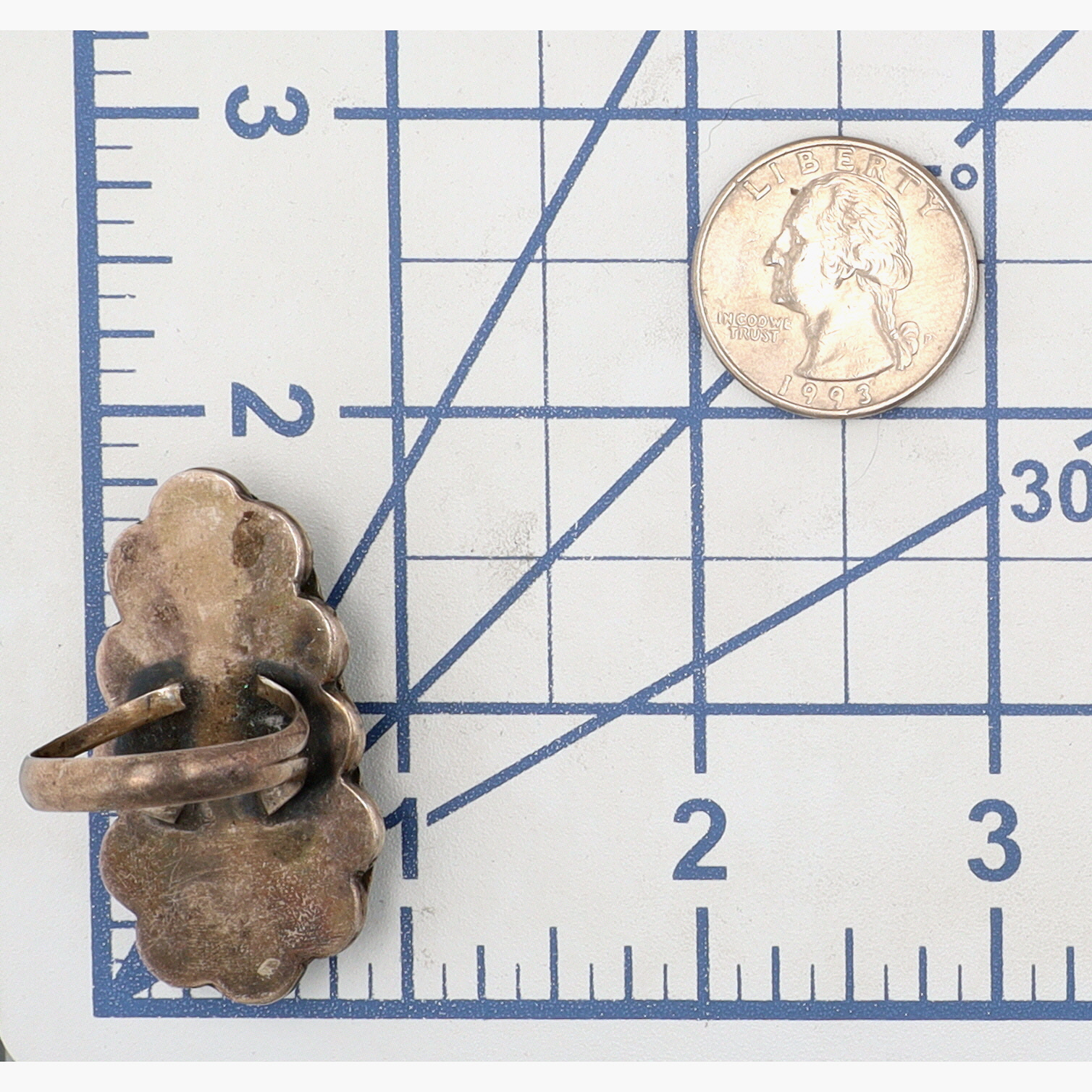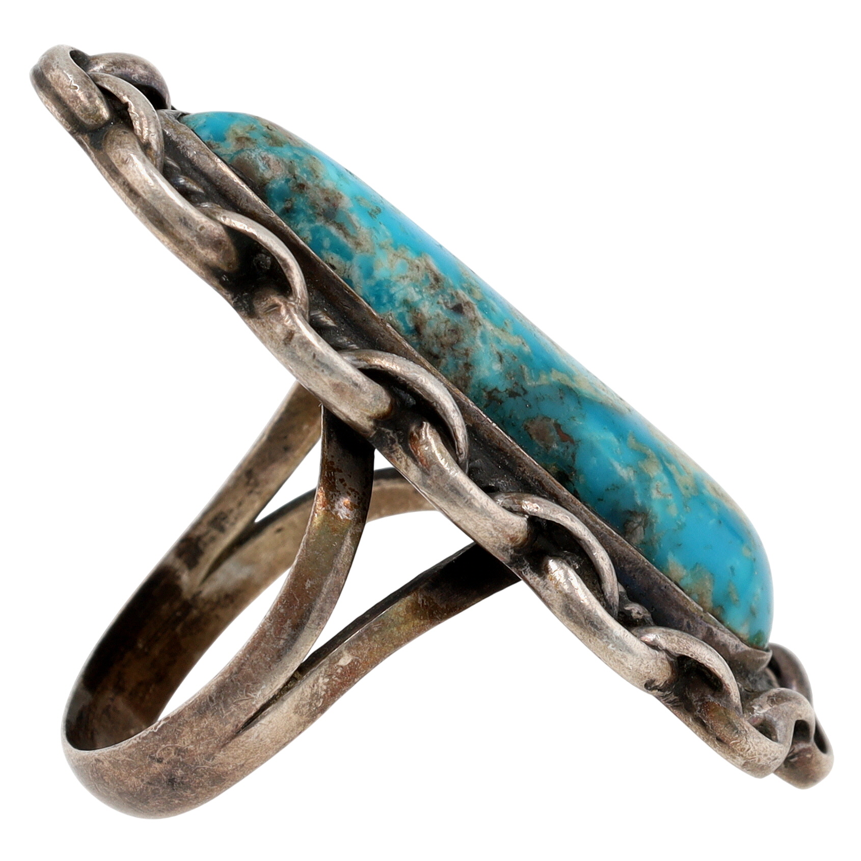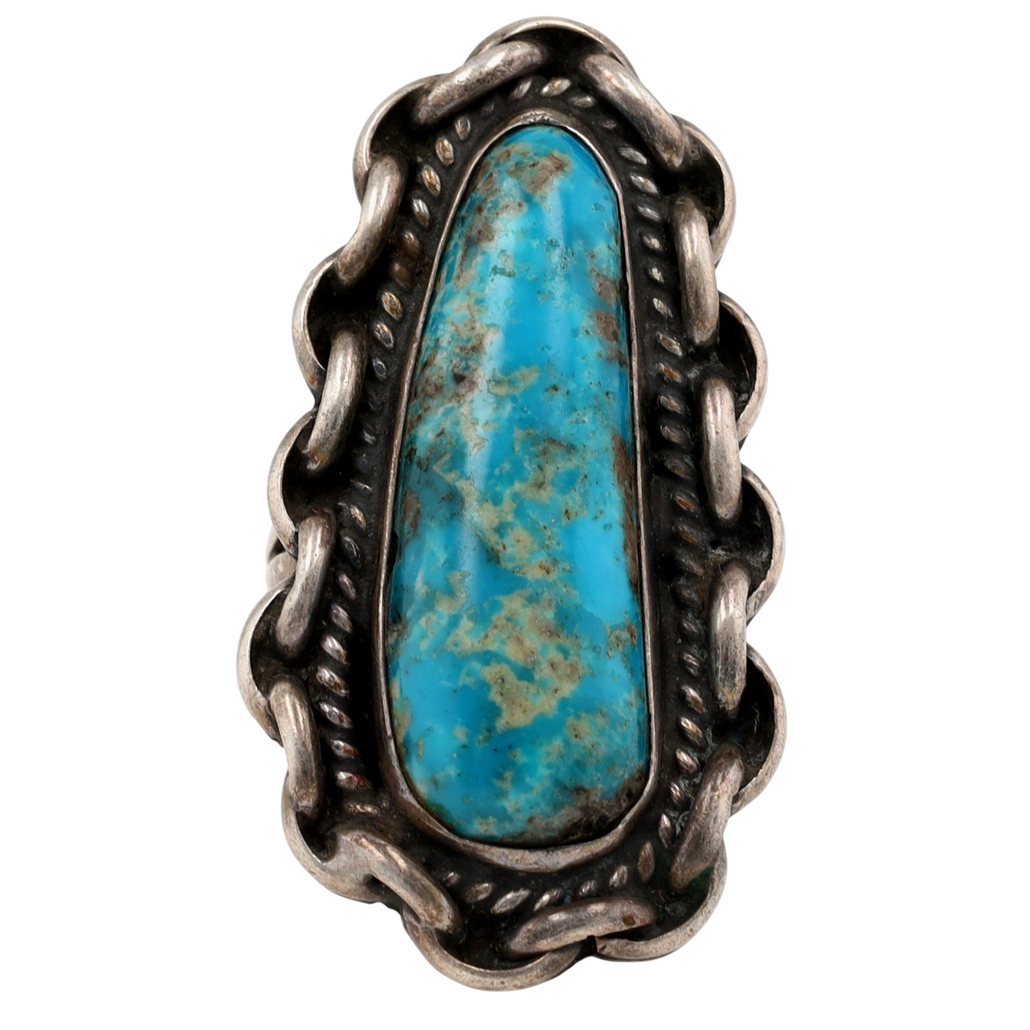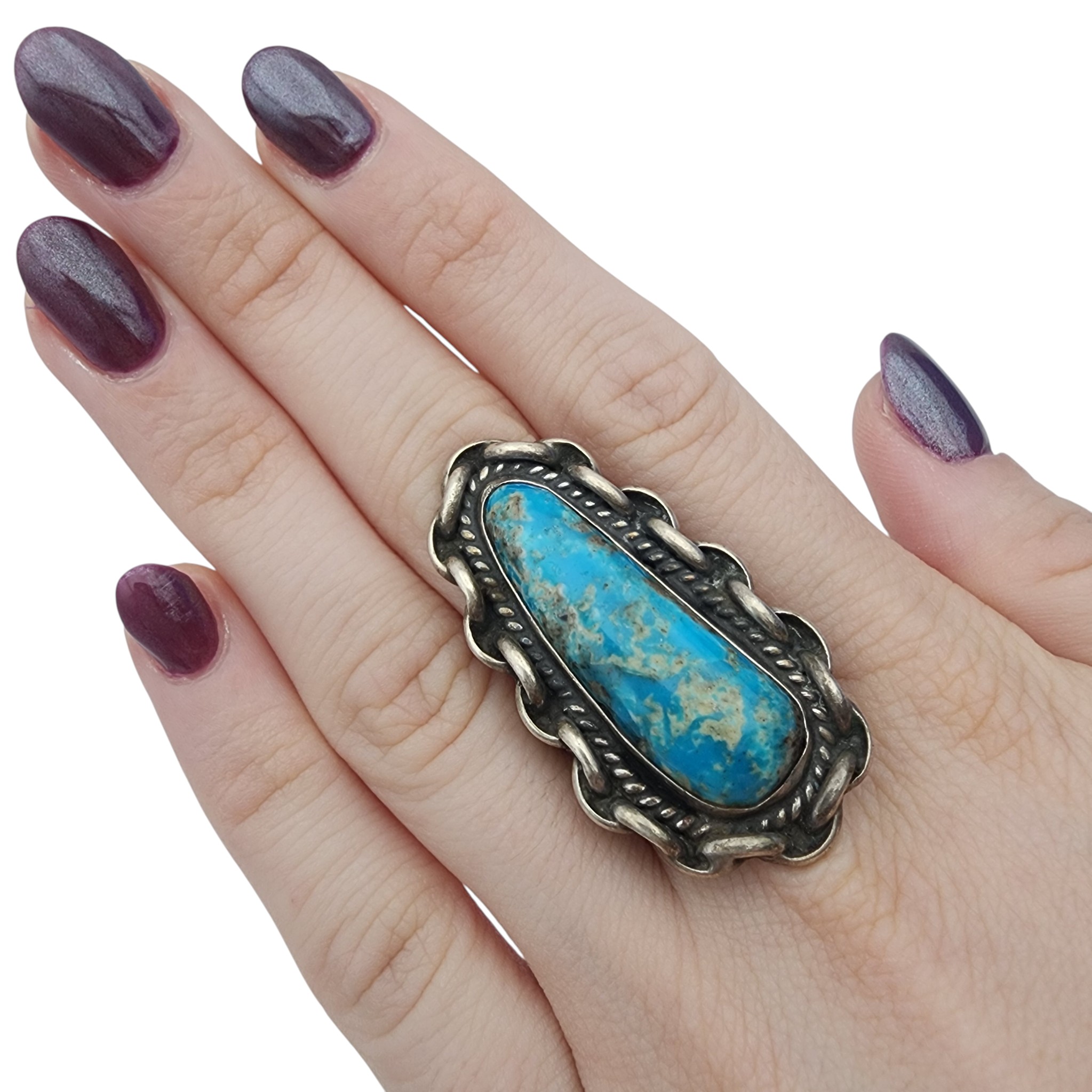 Vintage Navajo Sterling Turquoise Ring Sz 9 – 16.1g – approx. 1.8″ long