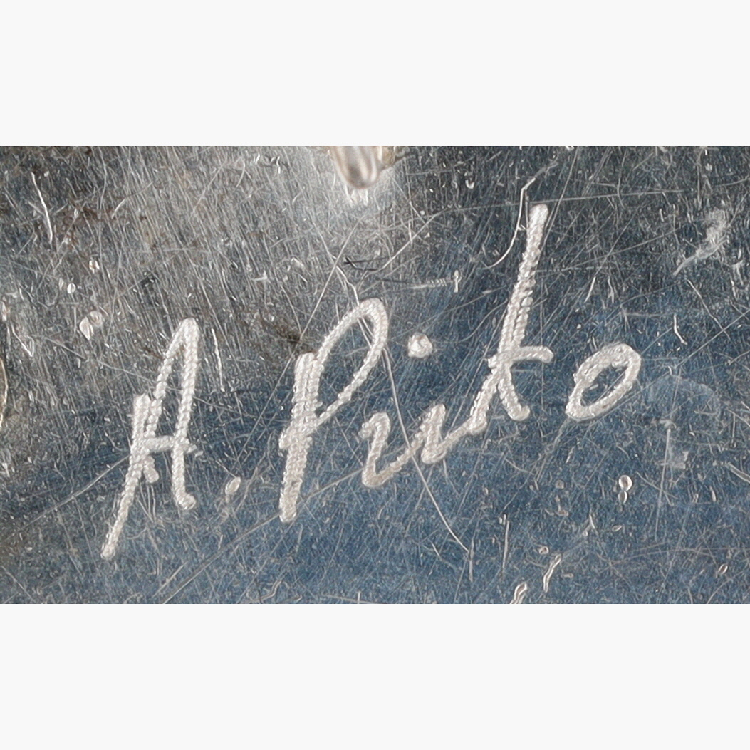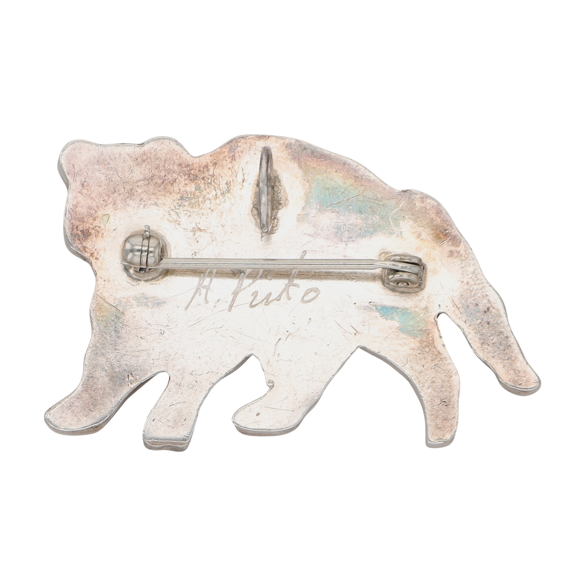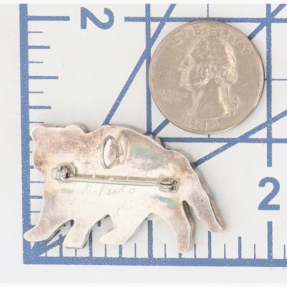 Vintage Andrea Pinto (aka Andrea Lonjose Shirley) Zuni Sterling Carved Raccoon Multistone (Shell, Turquoise, Jet) Inlay Pendant Brooch – 7.6g – Approx 1.76″ wide x 1.05″ tall