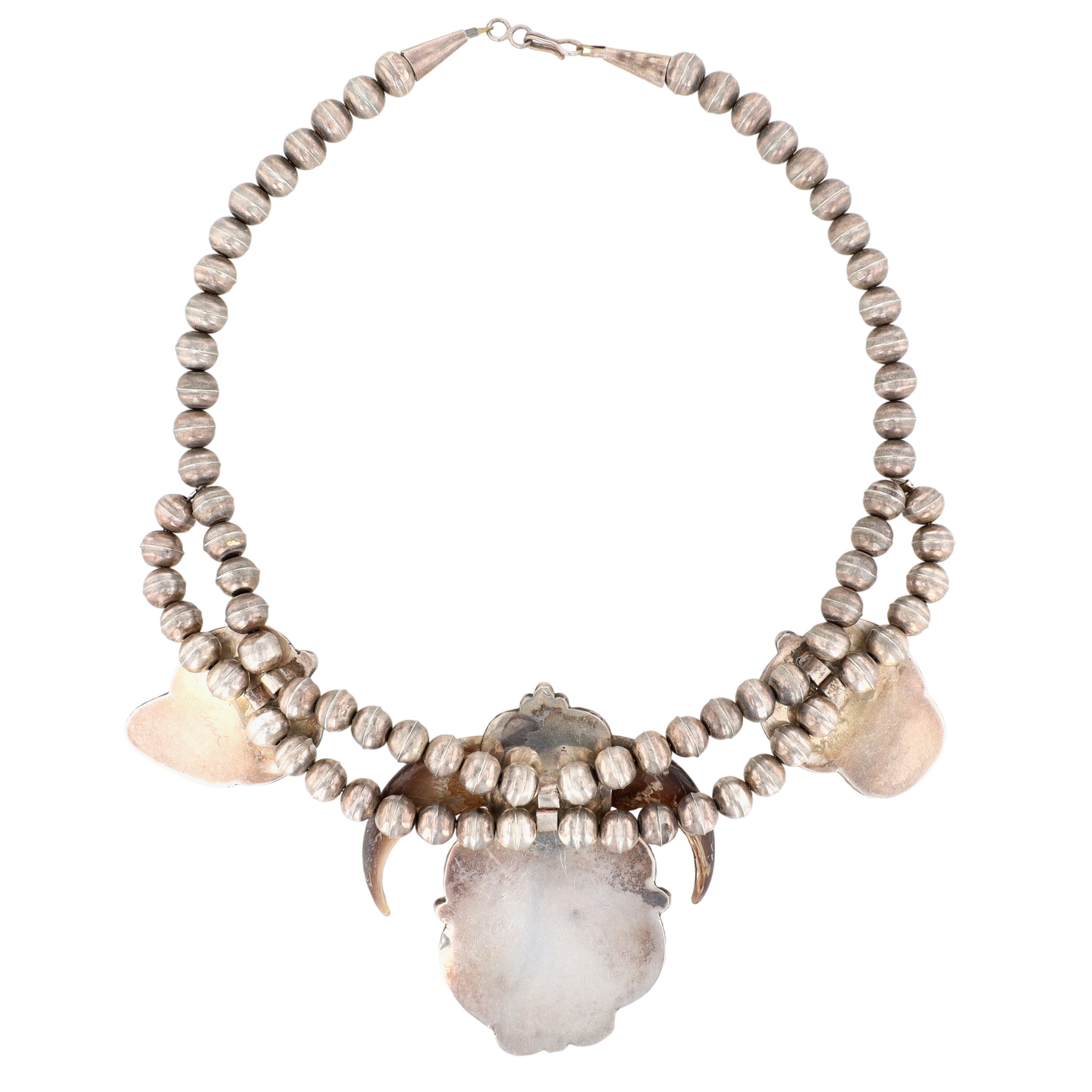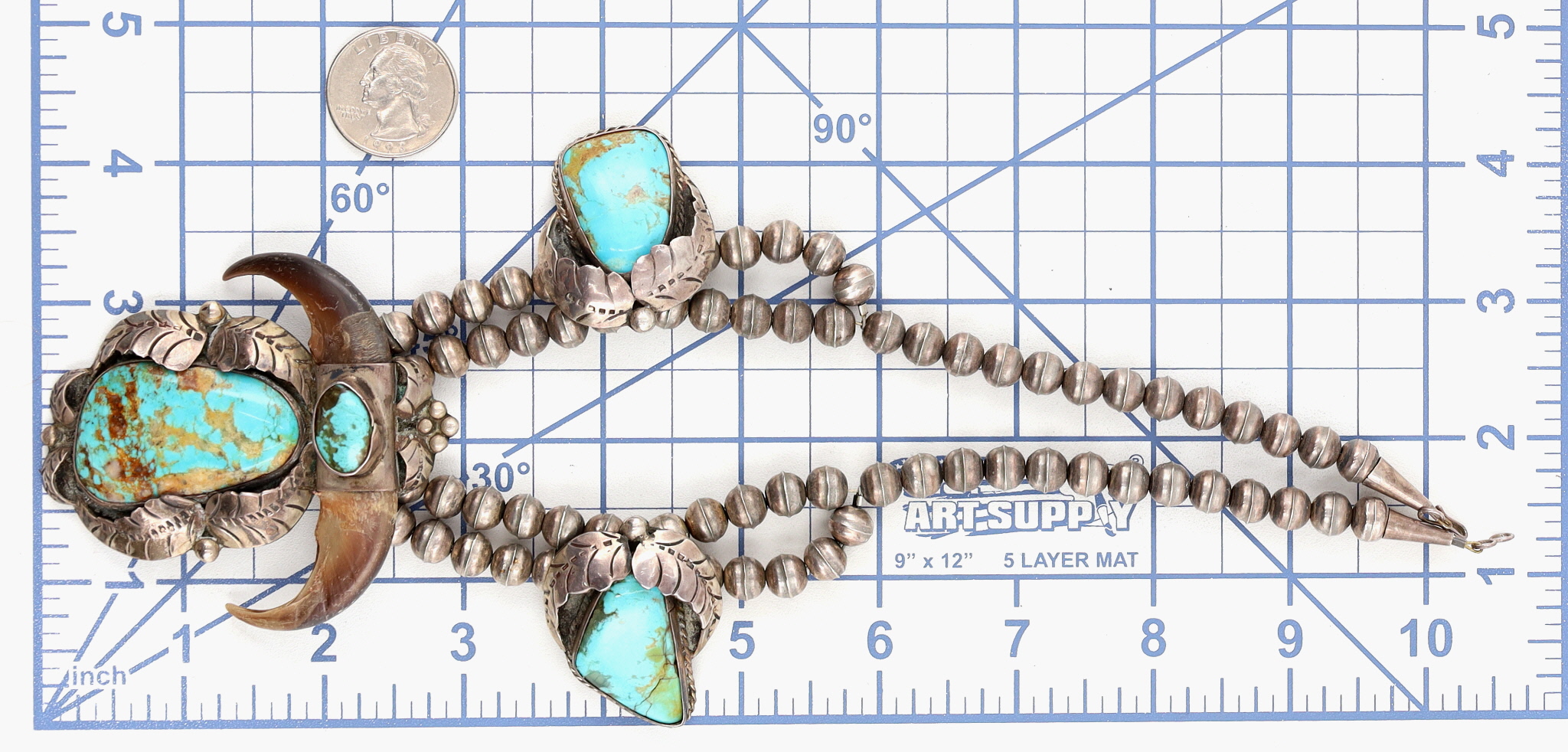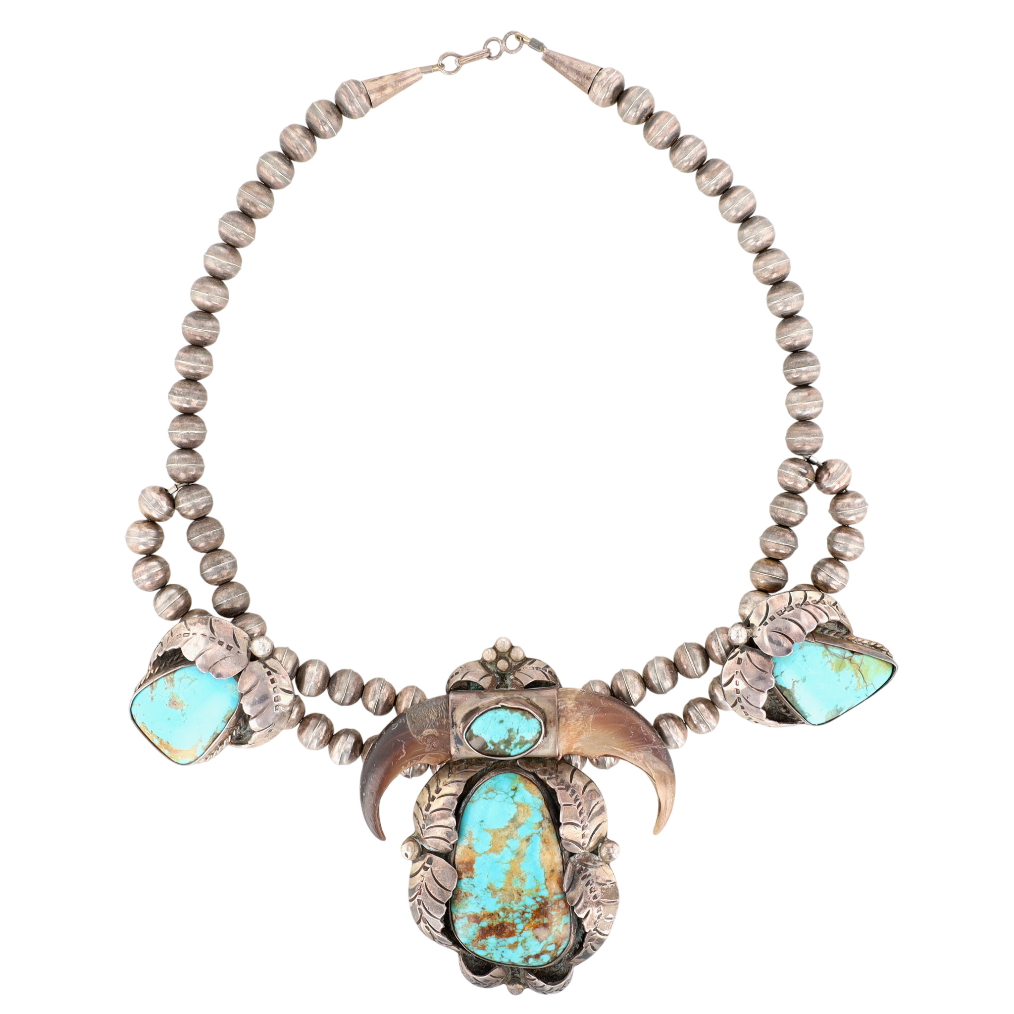 Signed Vintage Navajo Claw and Turquoise Station Necklace