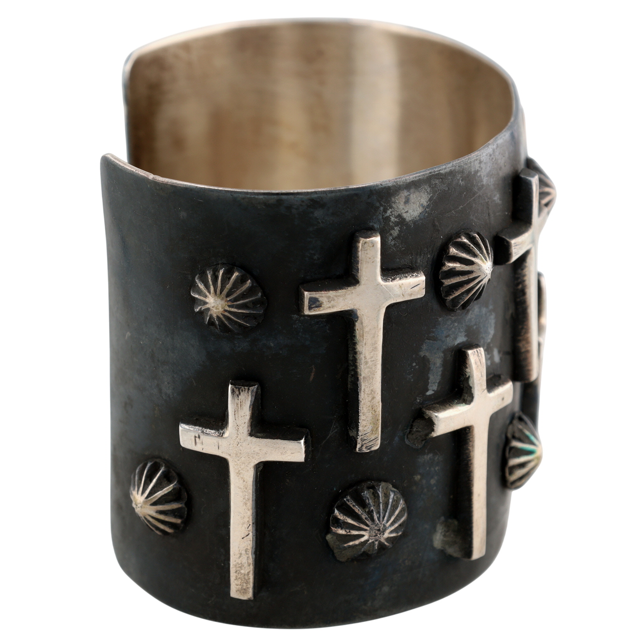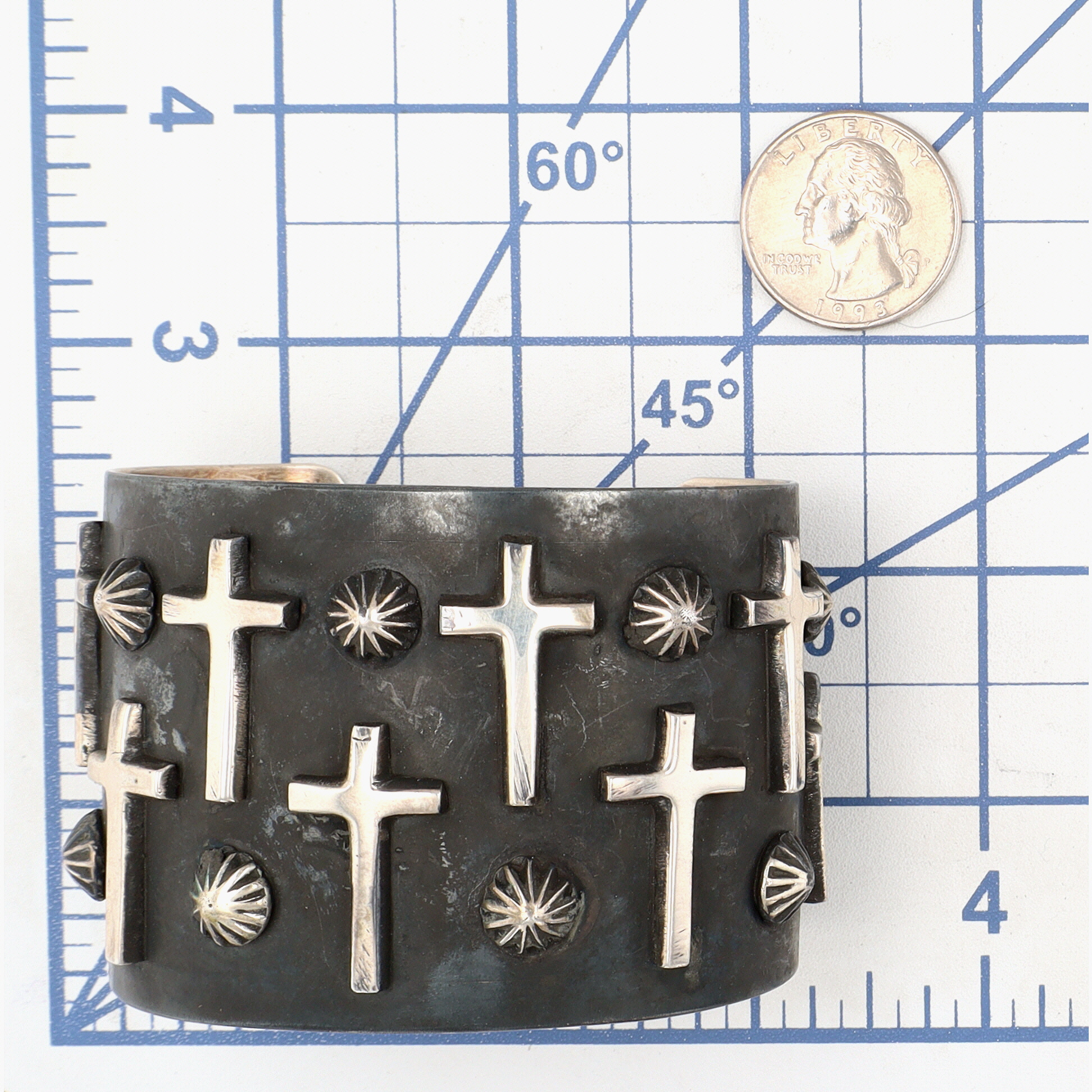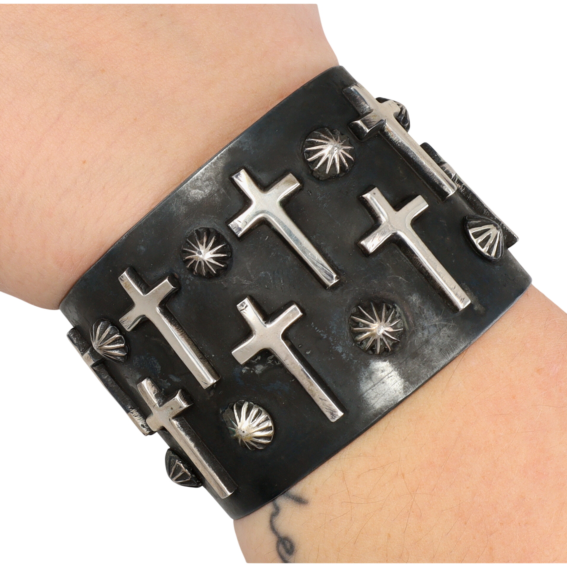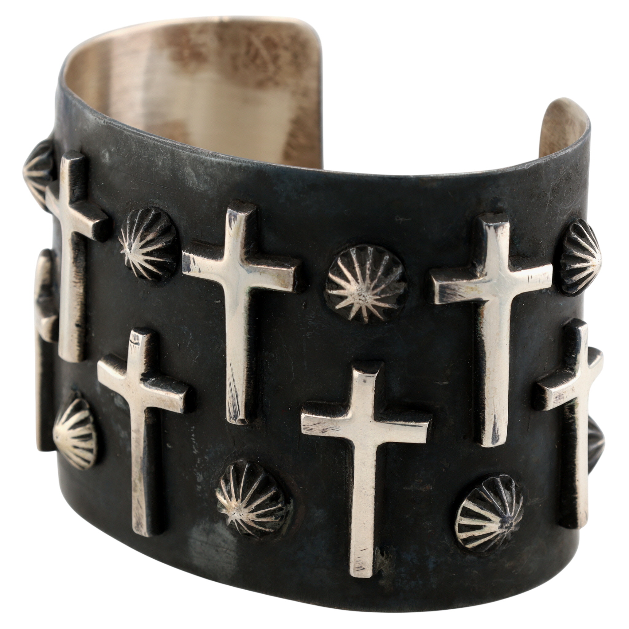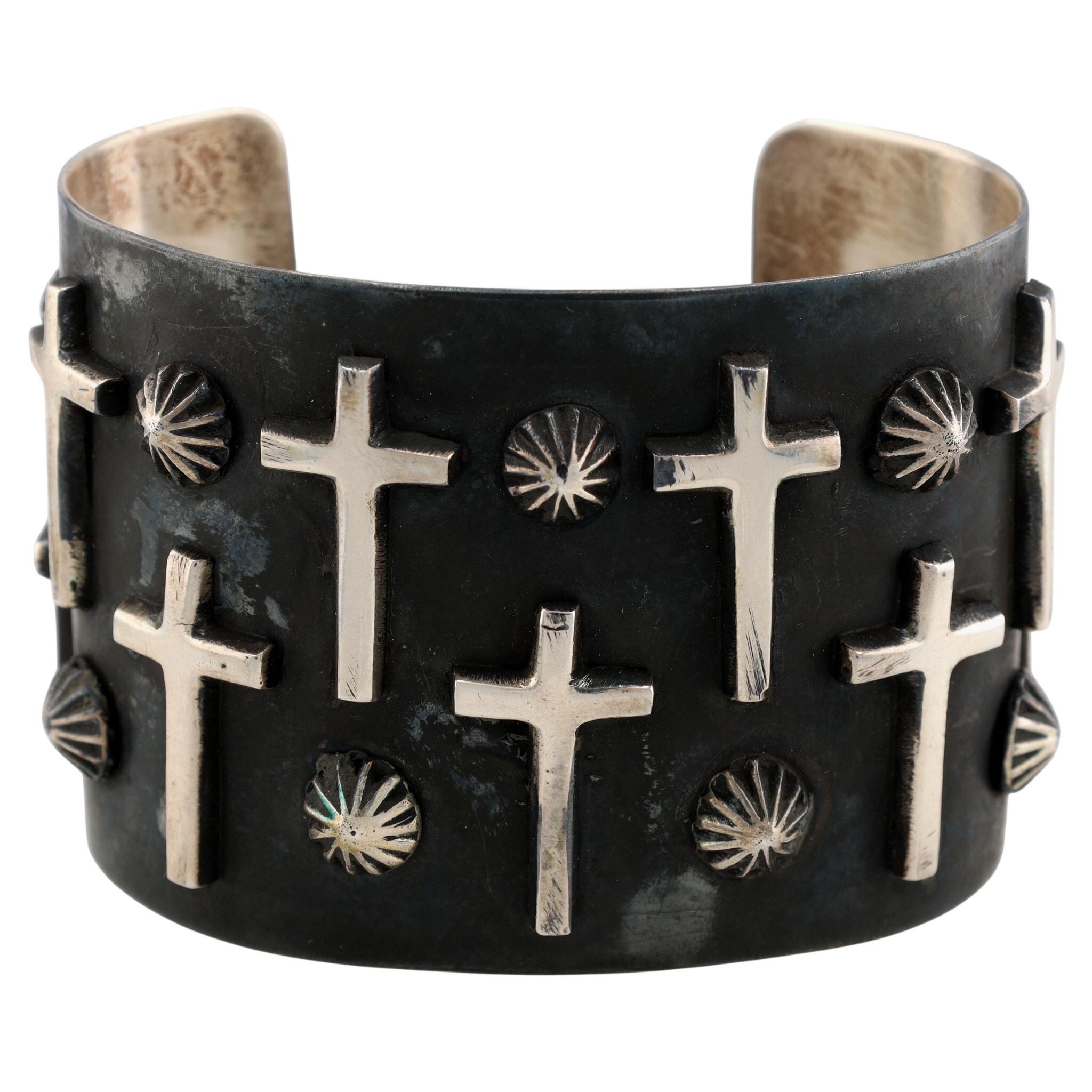 Amazing Chimney Butte Navajo Oxidized Sterling Raised Cross Wide Cuff Bracelet – 98.5g