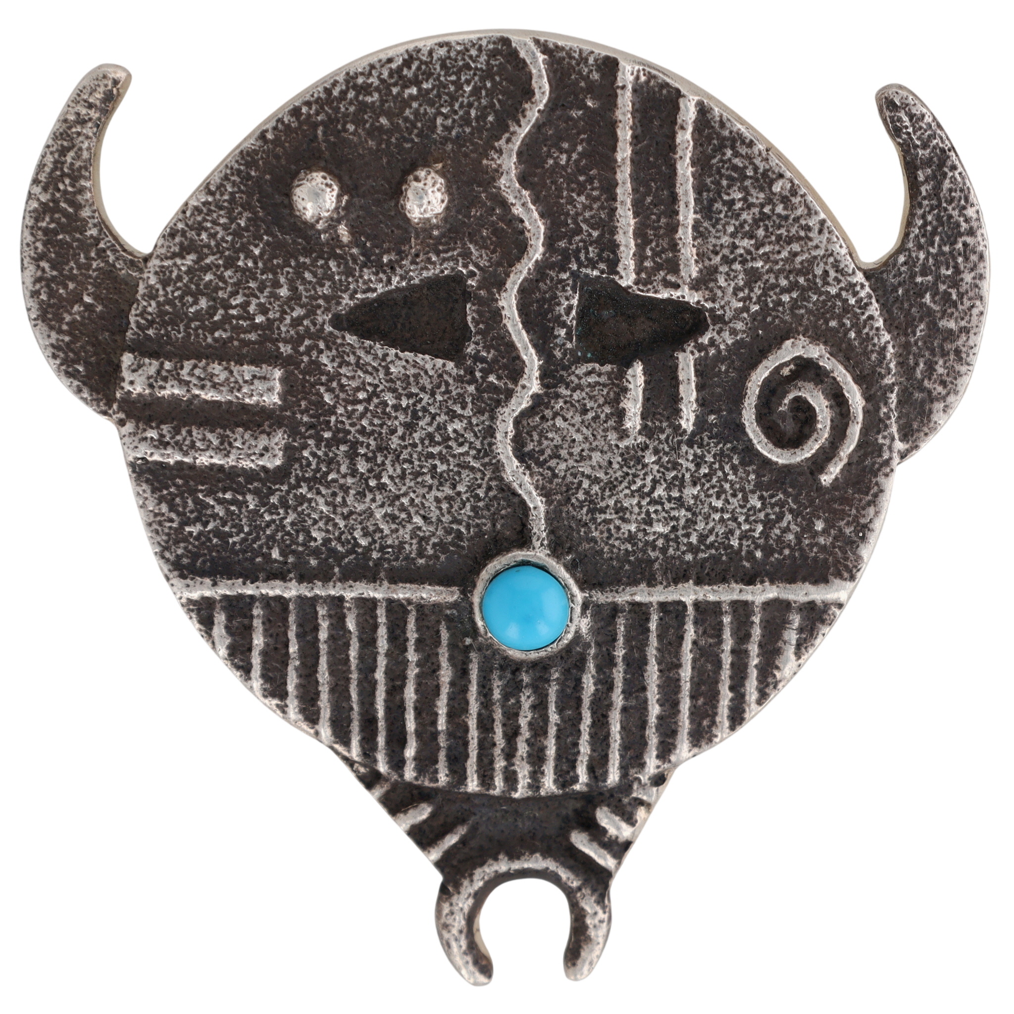 Rare Find – Lee Begay ’23 Navajo Sterling Silver and Sleeping Beauty Turquoise Yei Tufa Cast Pendant – 19.8g / Lee Begay learned the art of silversmithing from his brother, renowned Navajo artist Darryl Dean Begay. Acclaimed for his skill in tufa casting, Lee creates jewelry inspired by traditional Navajo ceremonial imagery – like this Yei pendant – and has earned multiple awards for his outstanding craftsmanship.