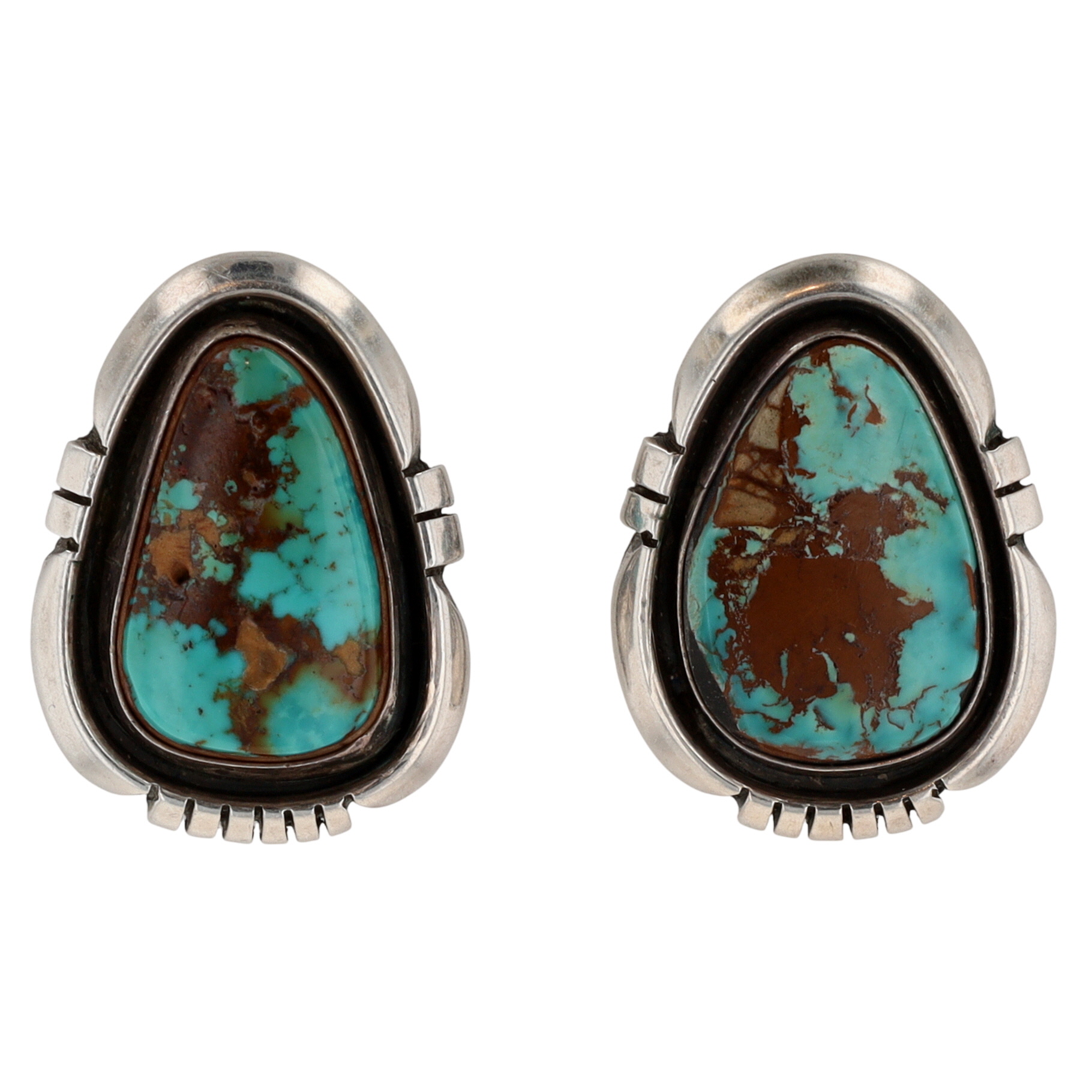 Gorgeous – Navajo Sterling Bisbee (or possibly #8) Turquoise Earrings – 13.8g – Note: one of the earrings has a small pinhole, appears to be natural to the stone, but could be a defect – see photos