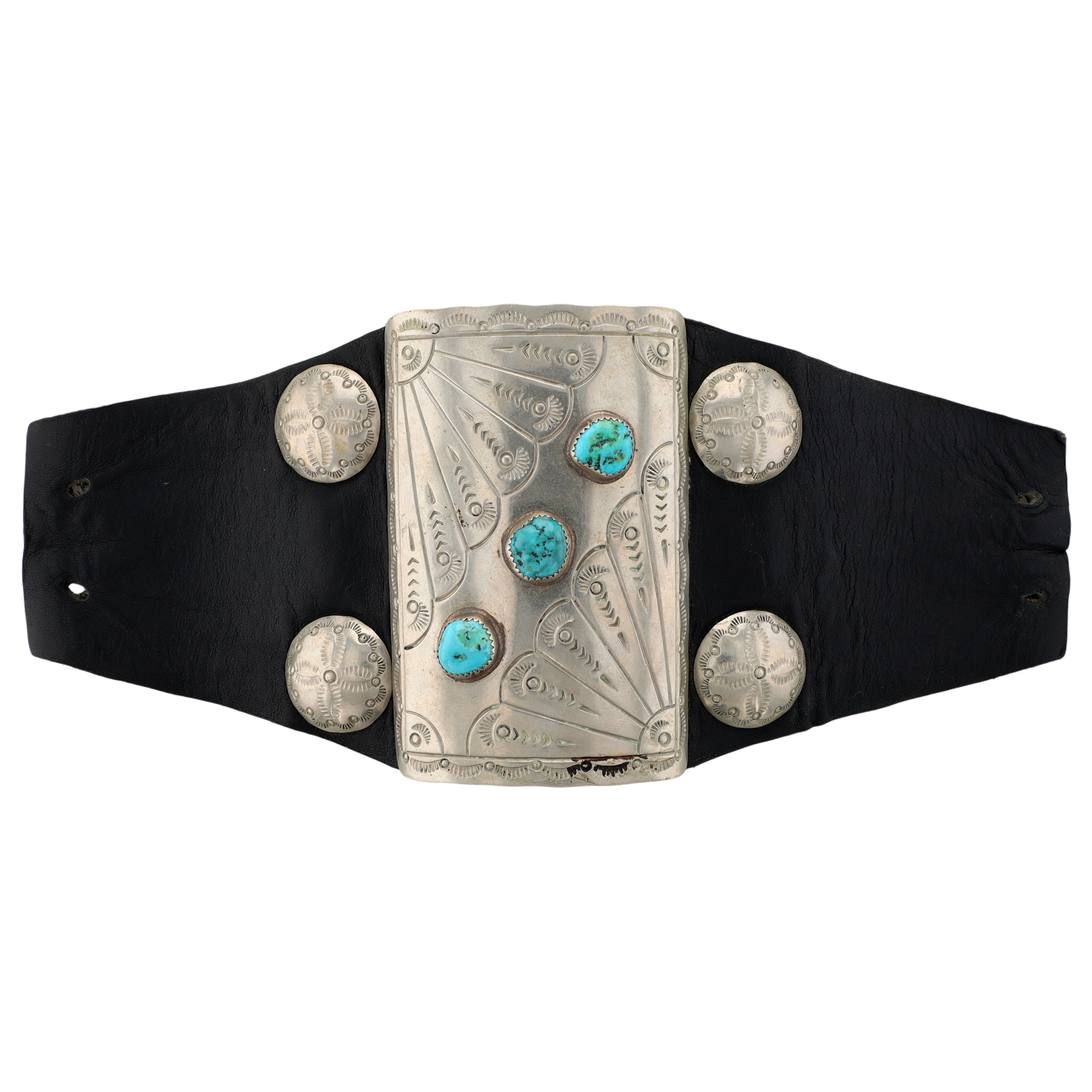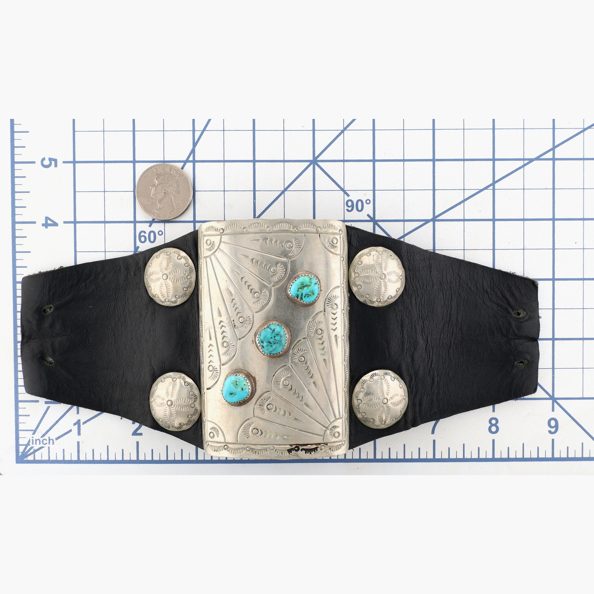 Vintage Navajo Sterling and Turquoise Stamped Ketoh Bracelet – 94.6g – Note: requires string to lace for closure