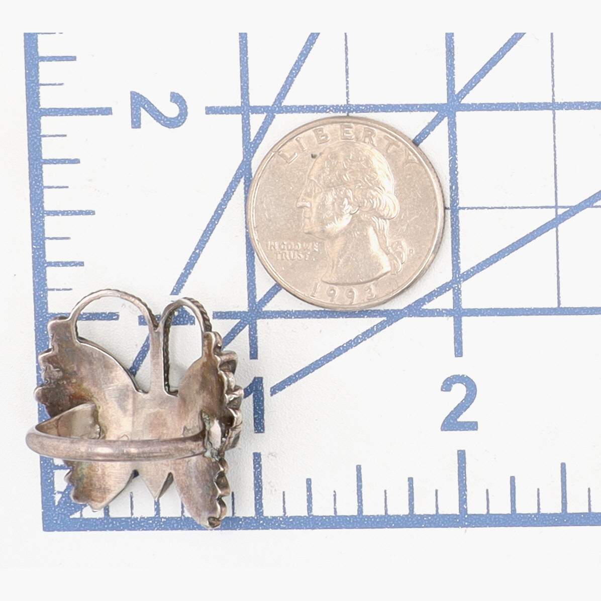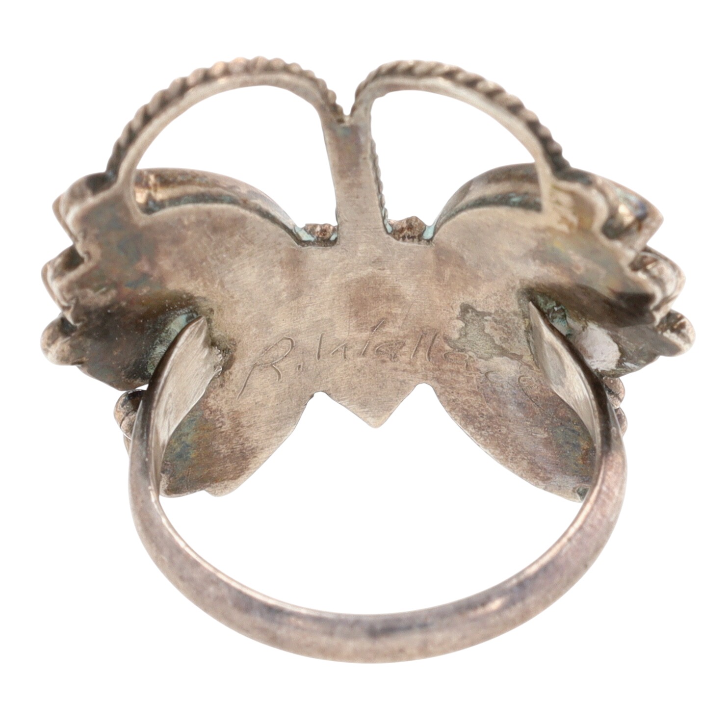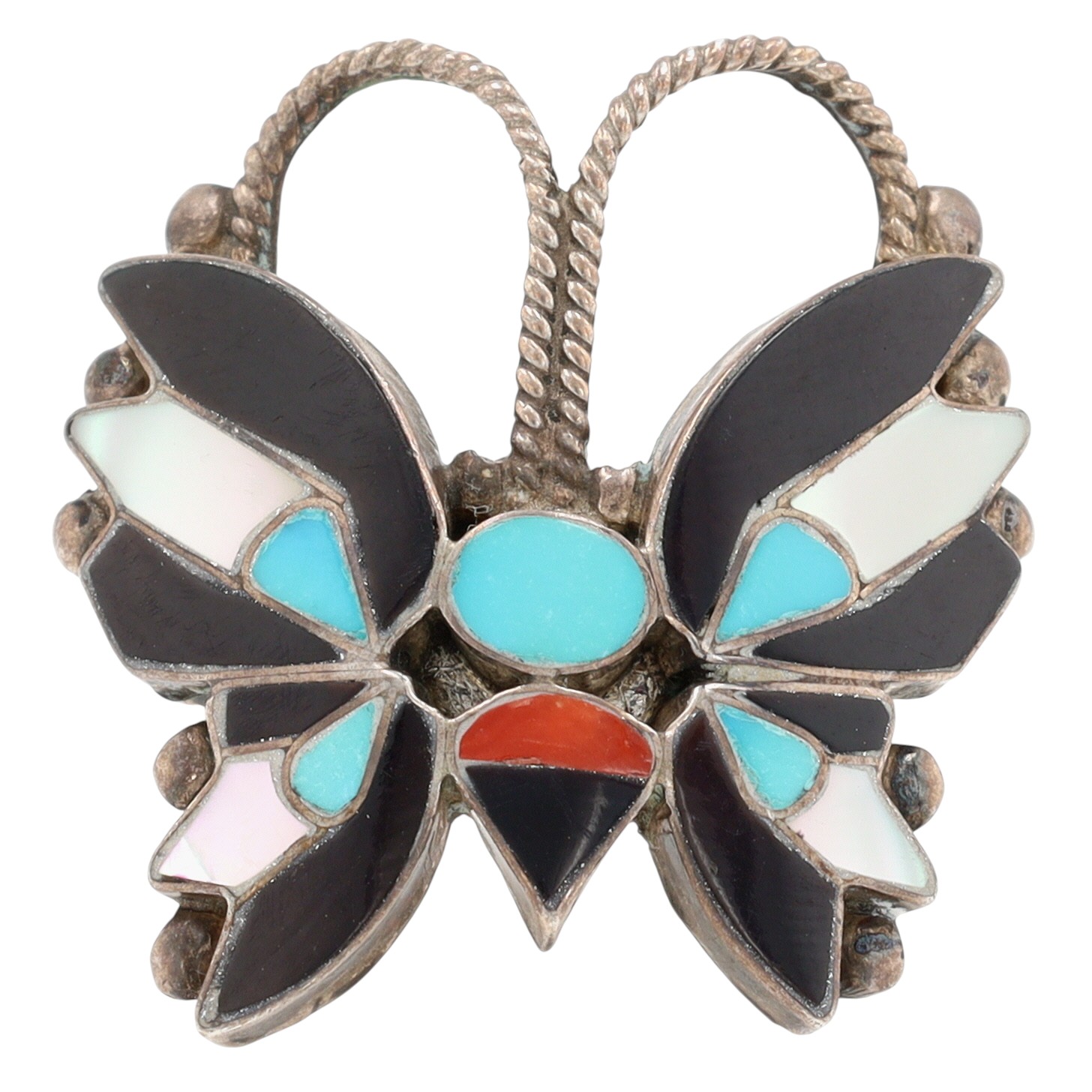 Rare Vintage Rosita Wallace Zuni Sterling Multistone (Turquoise, Coral, Jet/Onyx, Mother of Pearl) Inlay Butterfly Ring Sz 7 – 6.3g