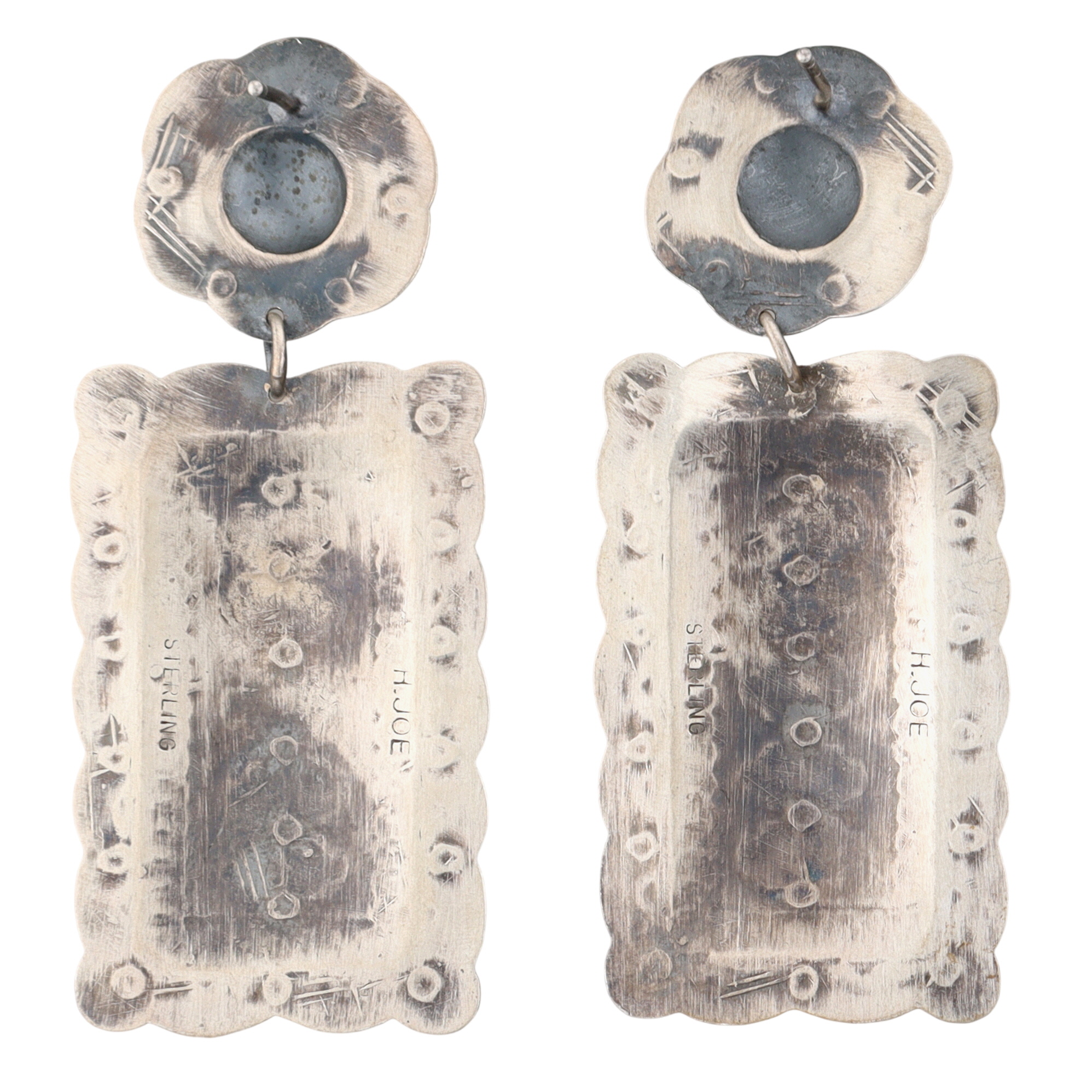 Big! Harold Joe Navajo Sterling Hand Stamped Dangle Earrings – Approx. 2.5″ long x 1″ wide – 12.4g