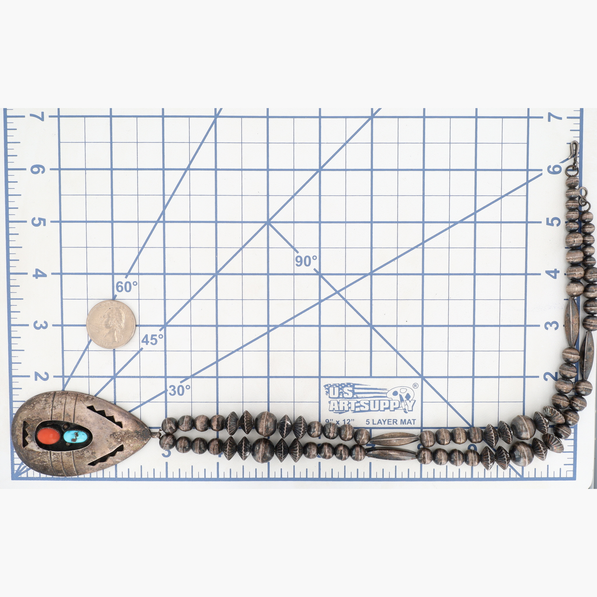 Alice White Navajo Turquoise and Coral Handmade Shadowbox Bead Necklace