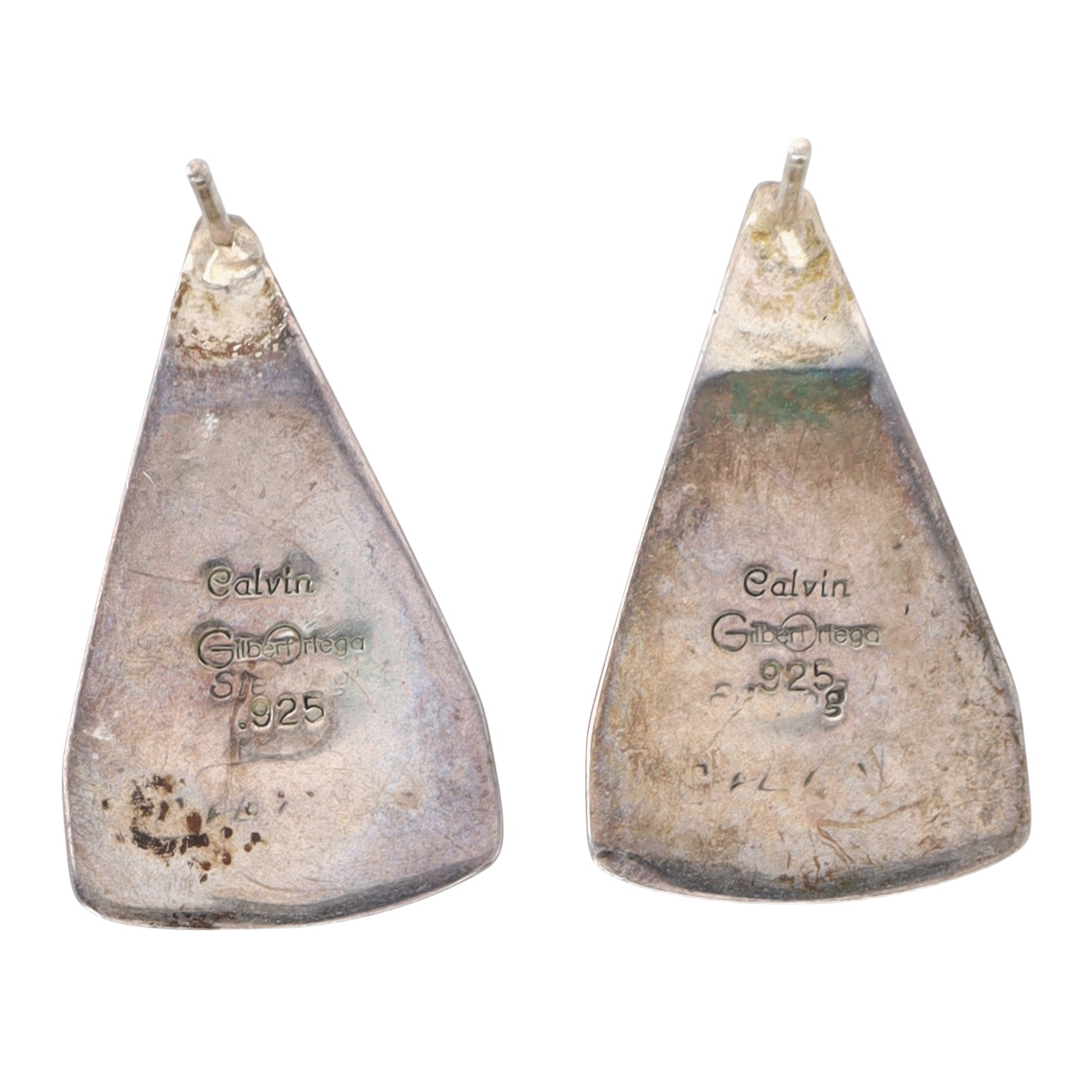 Calvin Begay Navajo for Gilbert Ortega Shop Sterling Turquoise Inlay Earrings – 9.2g