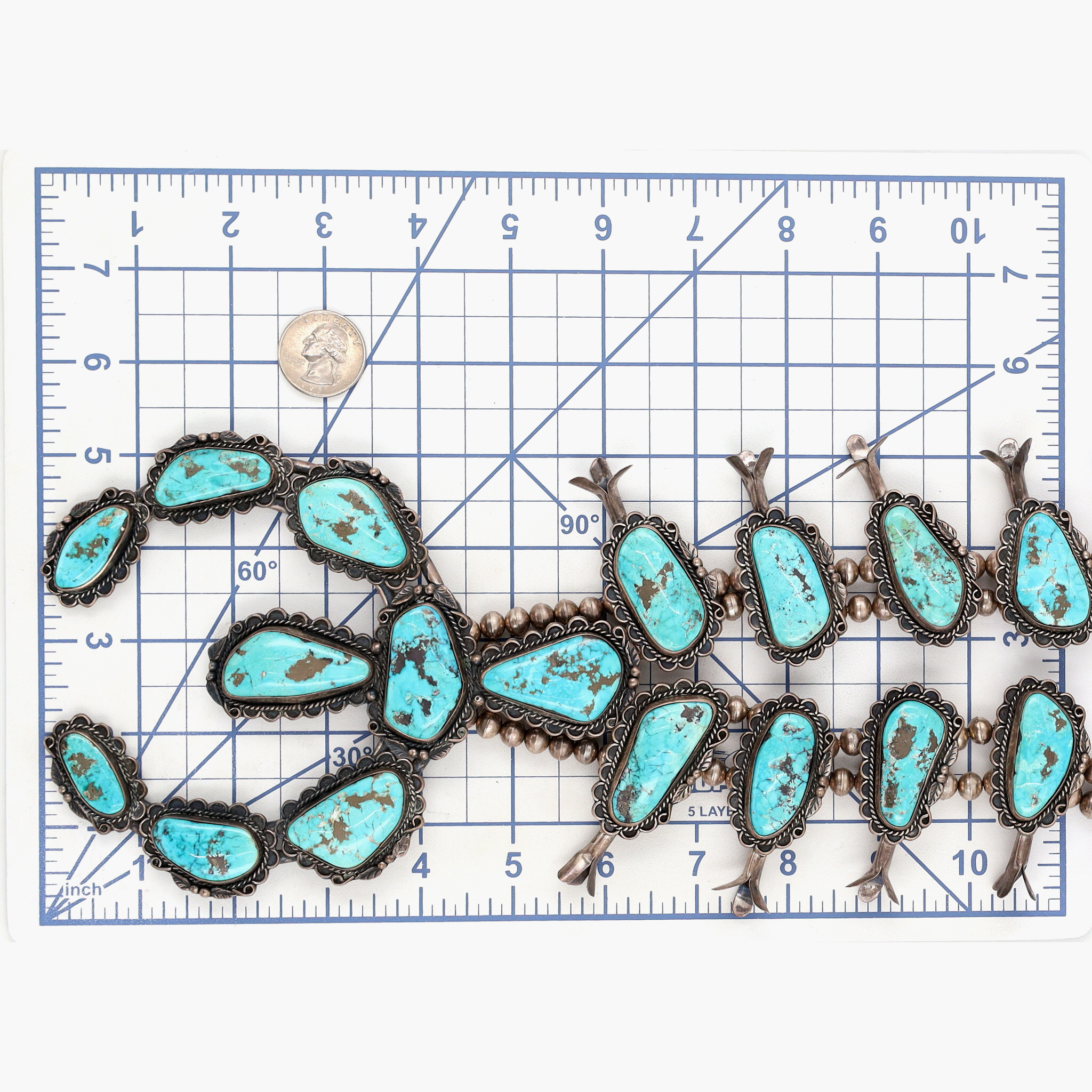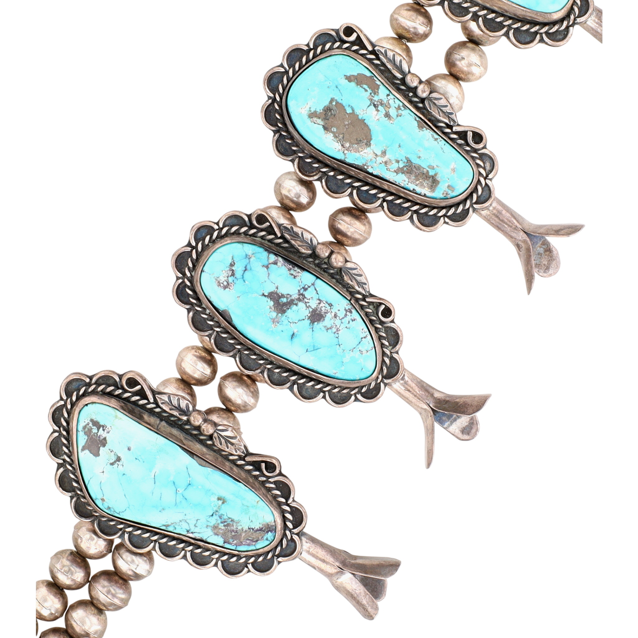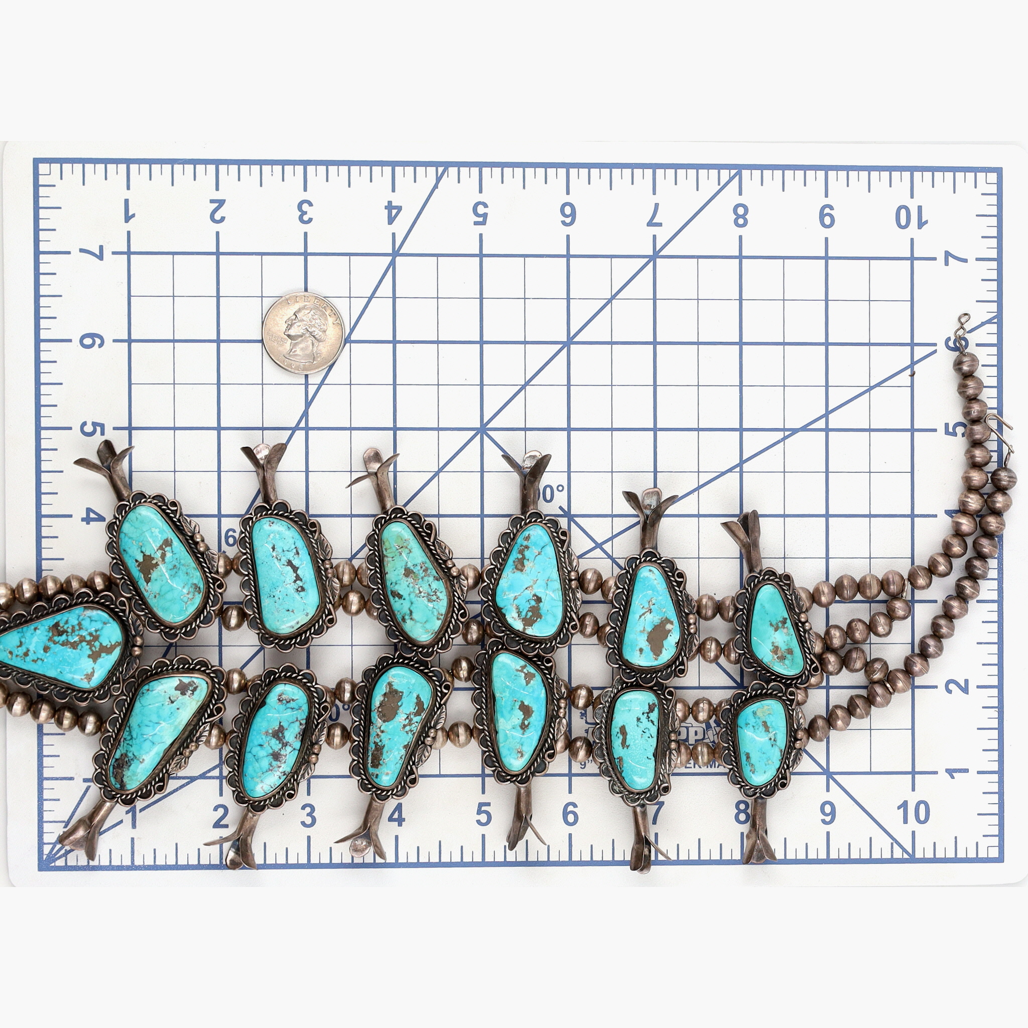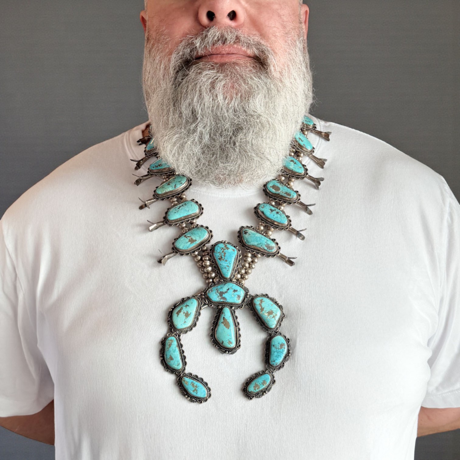 HUGE Signed Navajo Turquoise Squash Blossom Necklace 465g!