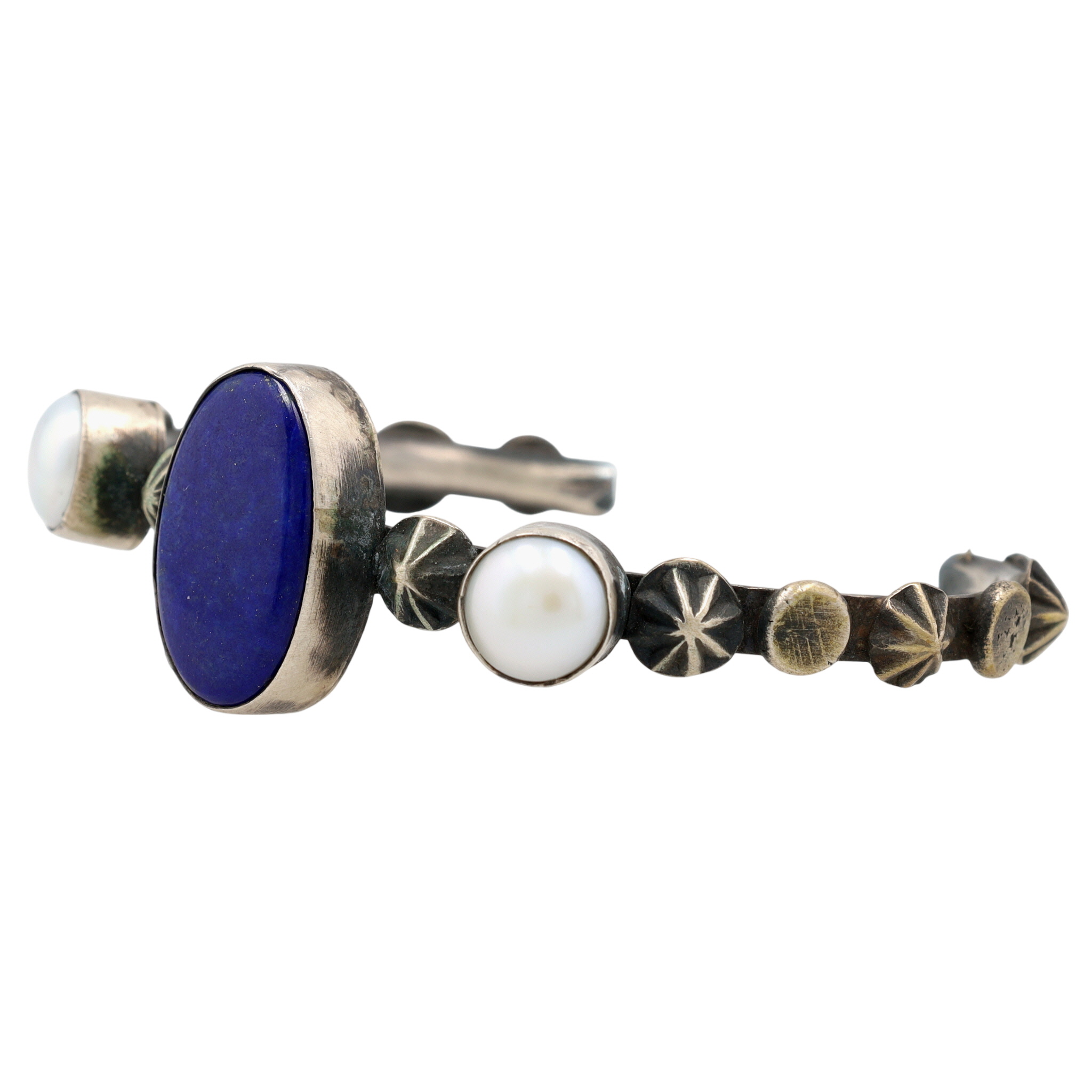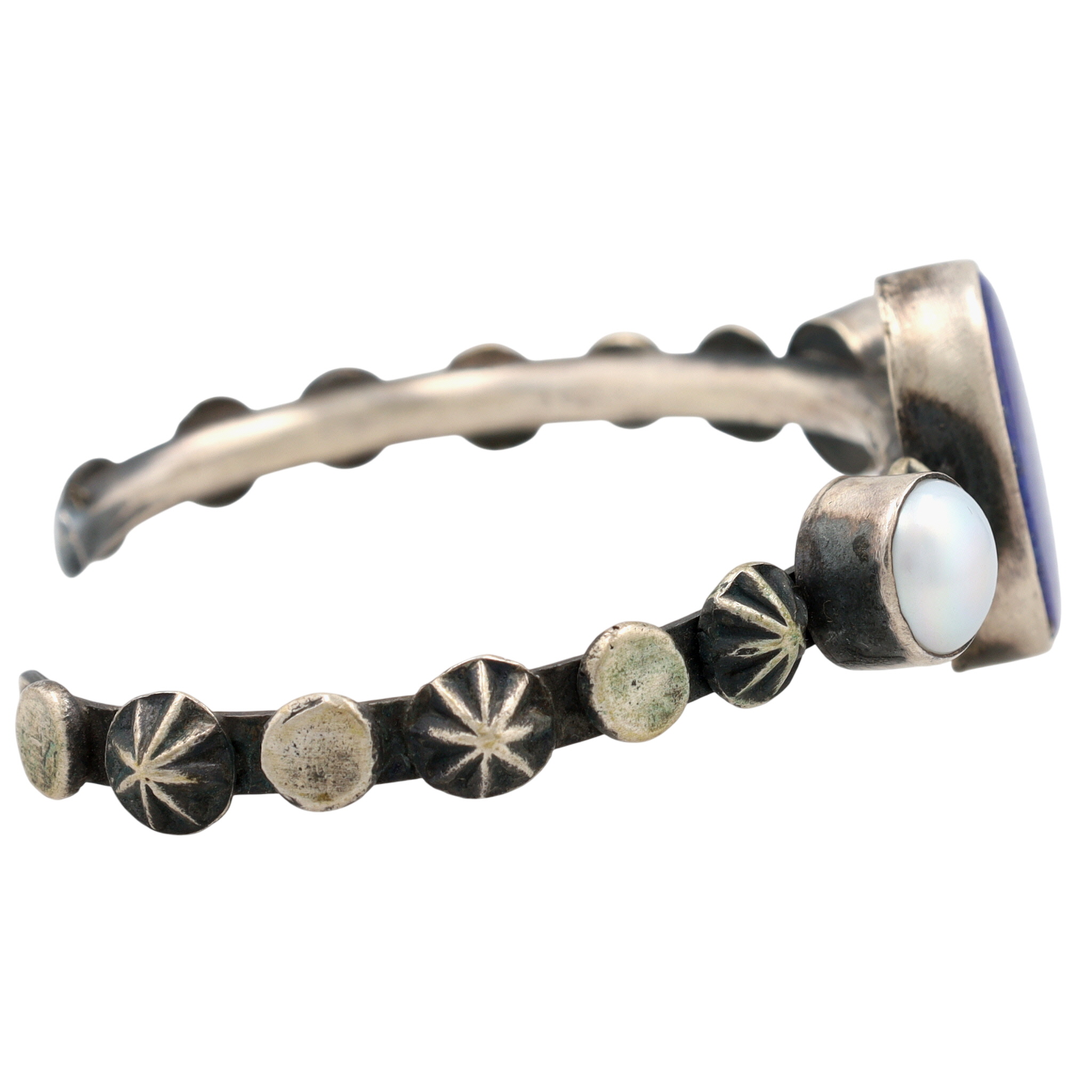 Chimney Butte Navajo Sterling Lapis Lazuli and Pearl Oxidized Cuff Bracelet – 22.9g – Retailed $380