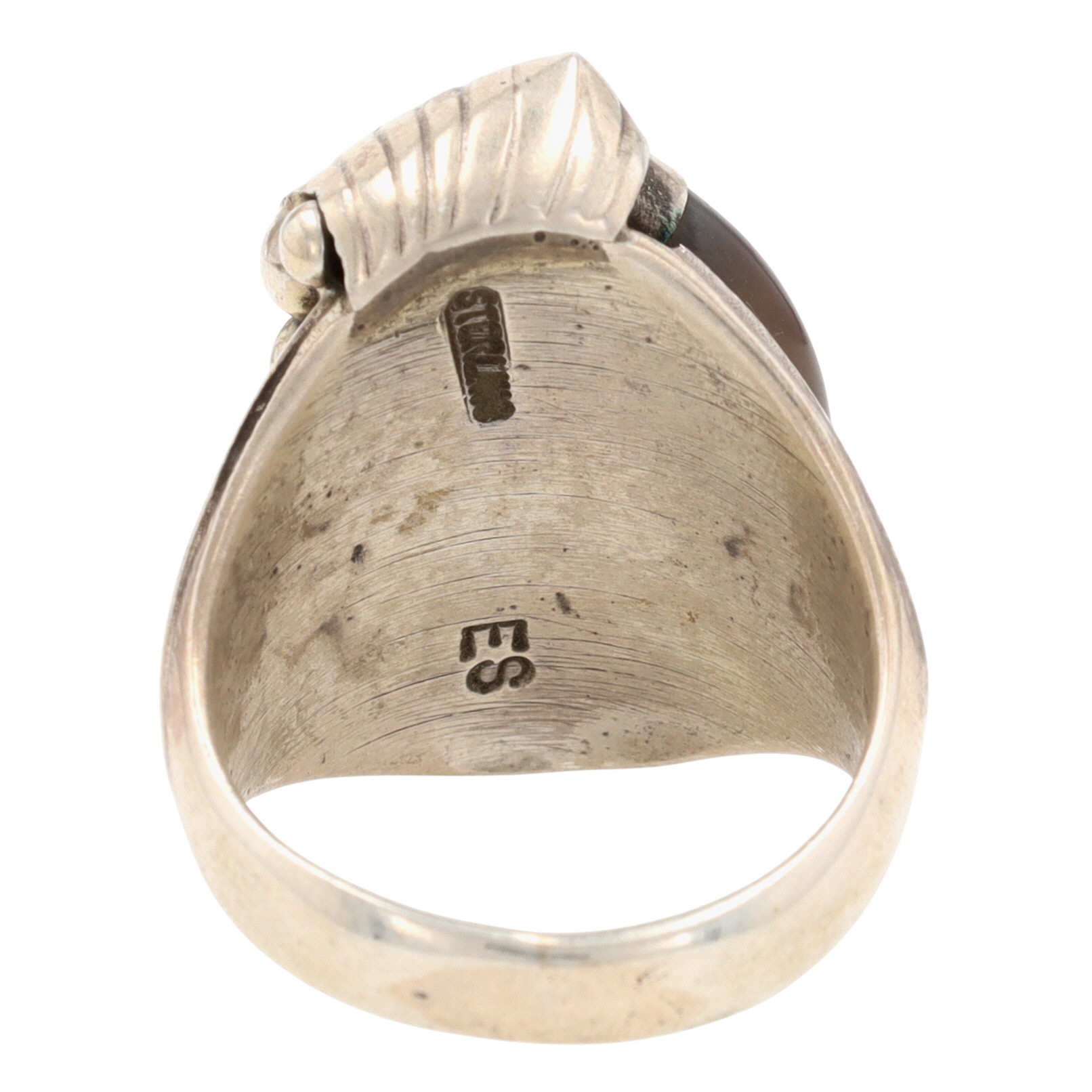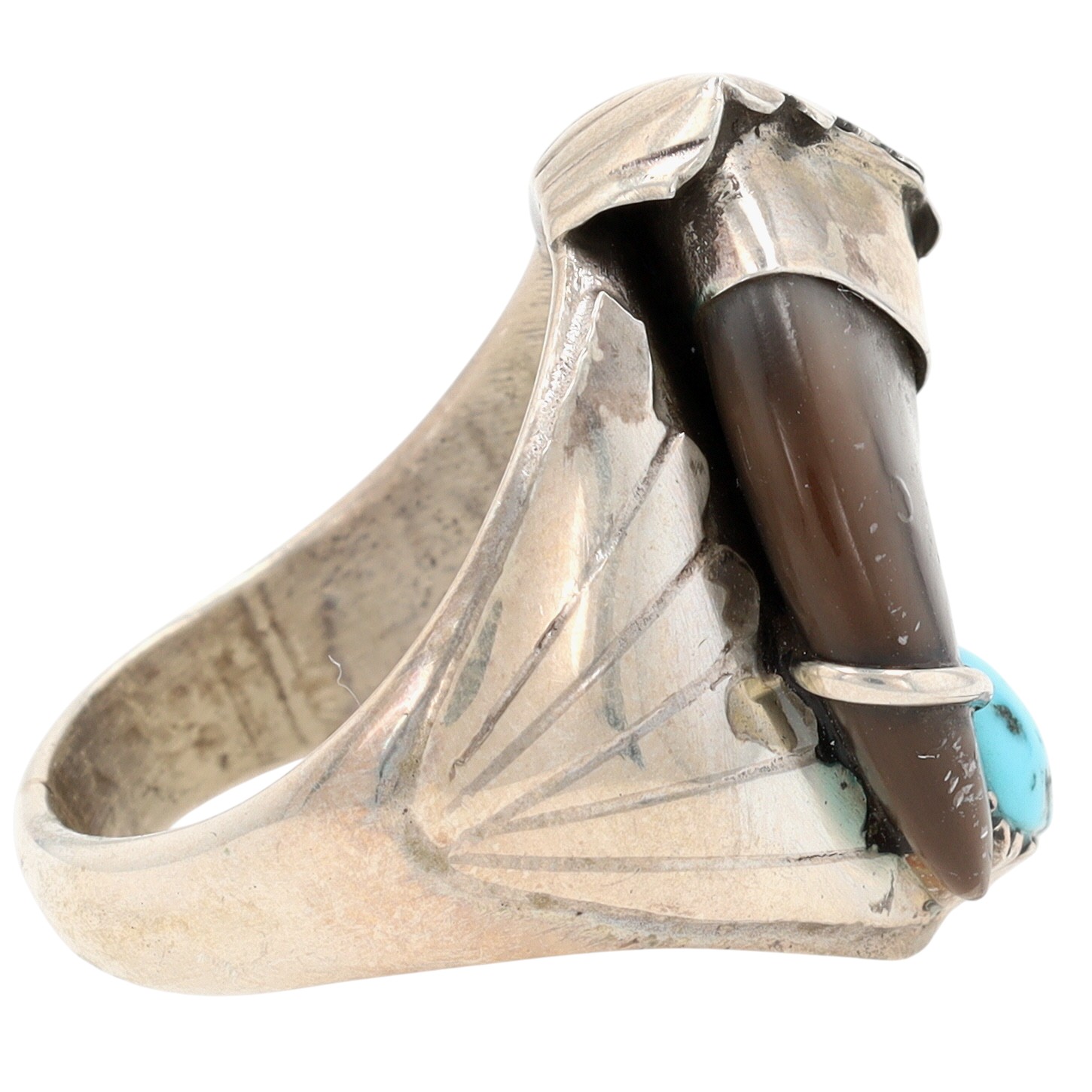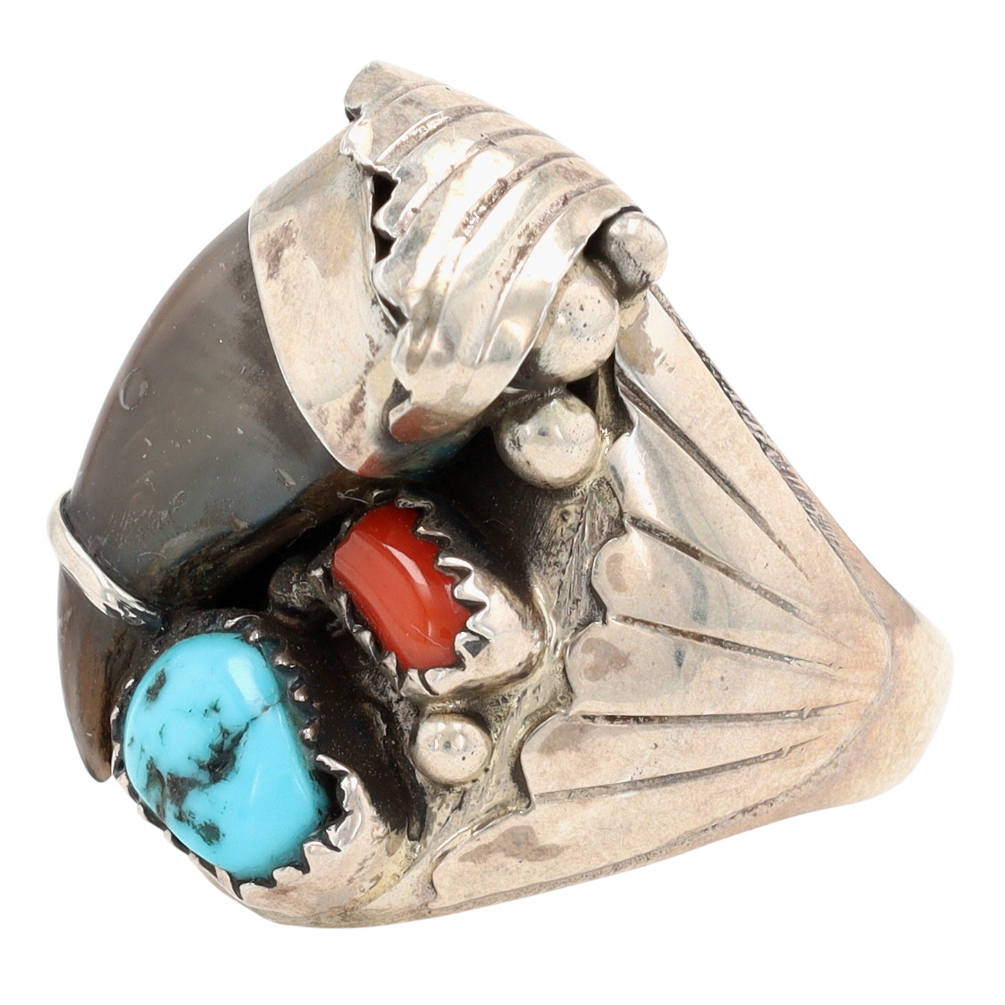 Elaine Sam Navajo Turquoise and Coral Claw Ring Sz 9