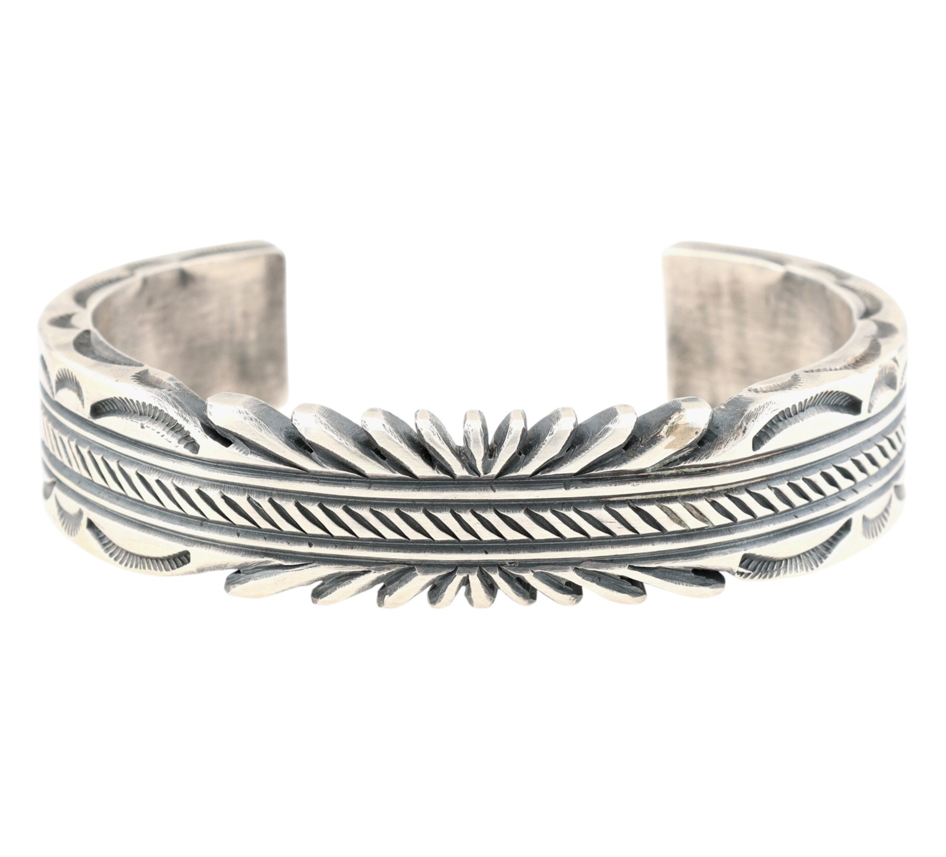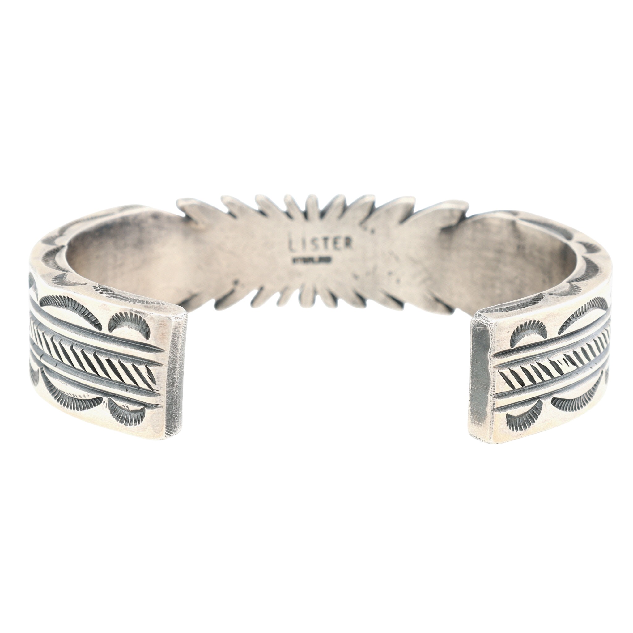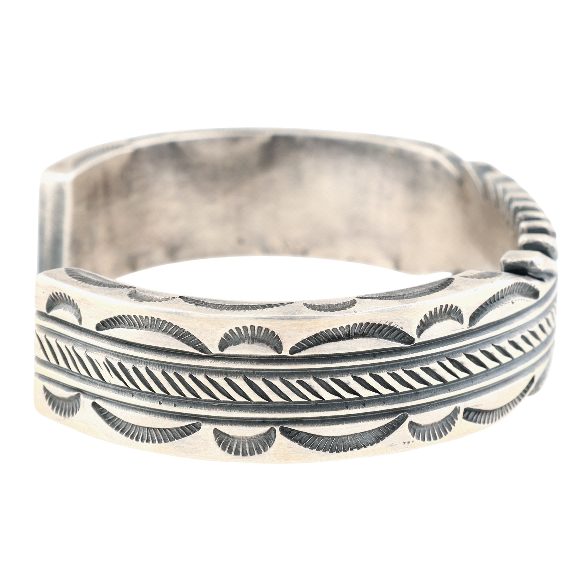 Master Silversmith – David K. Lister Navajo Sterling Silver Tooled Heavy Gauge Stamped Hand Cast Cuff Bracelet – 121g! Solid, stunning tooling and stampwork!