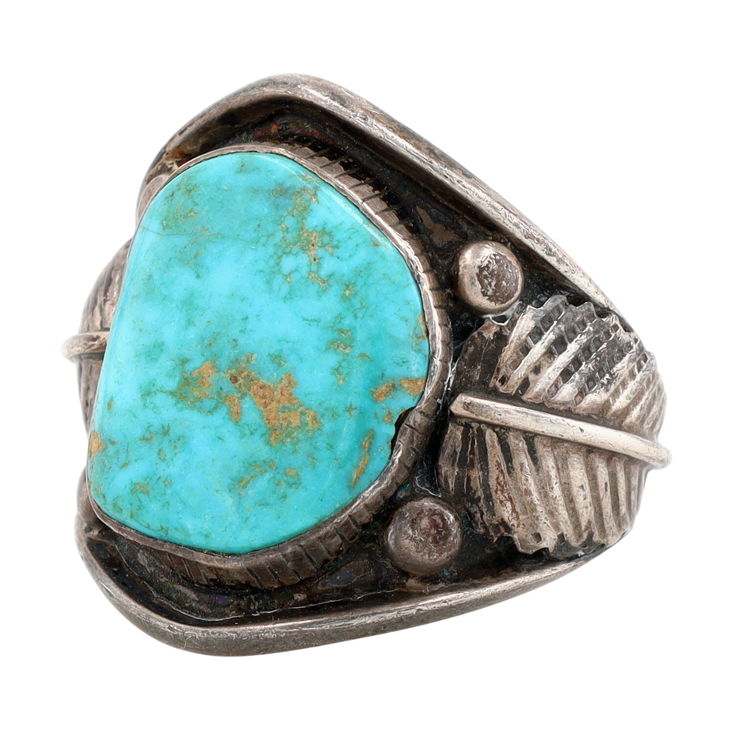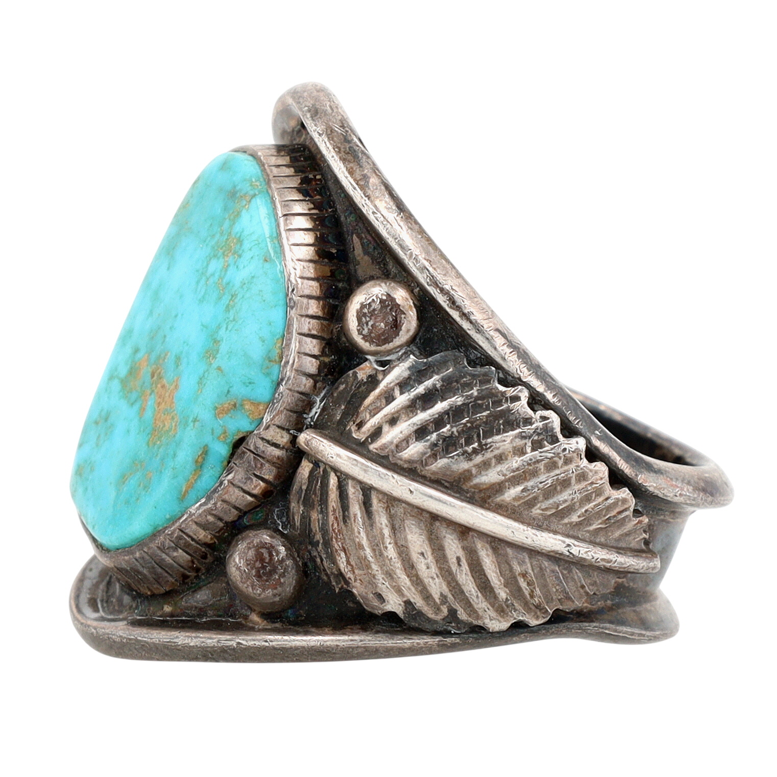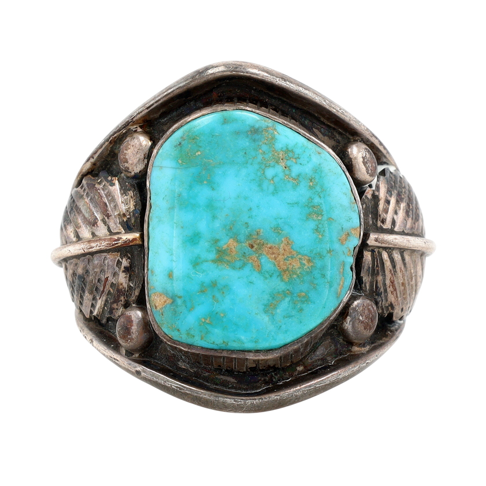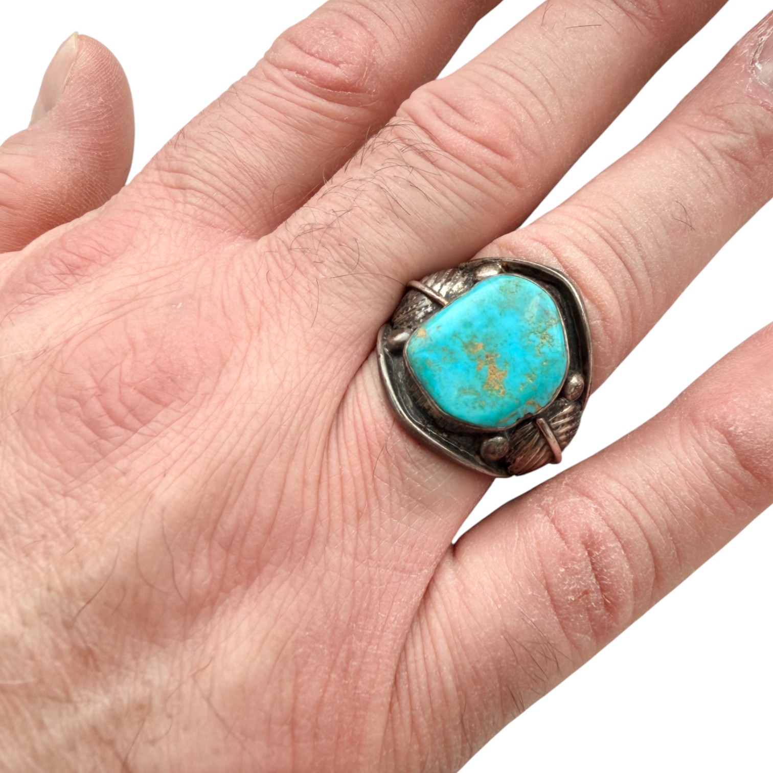 Vintage Early Navajo Sterling Turquoise Men’s Ring Sz 12 – 12.9g