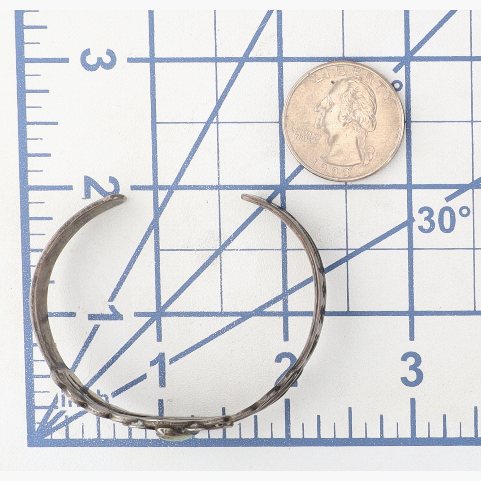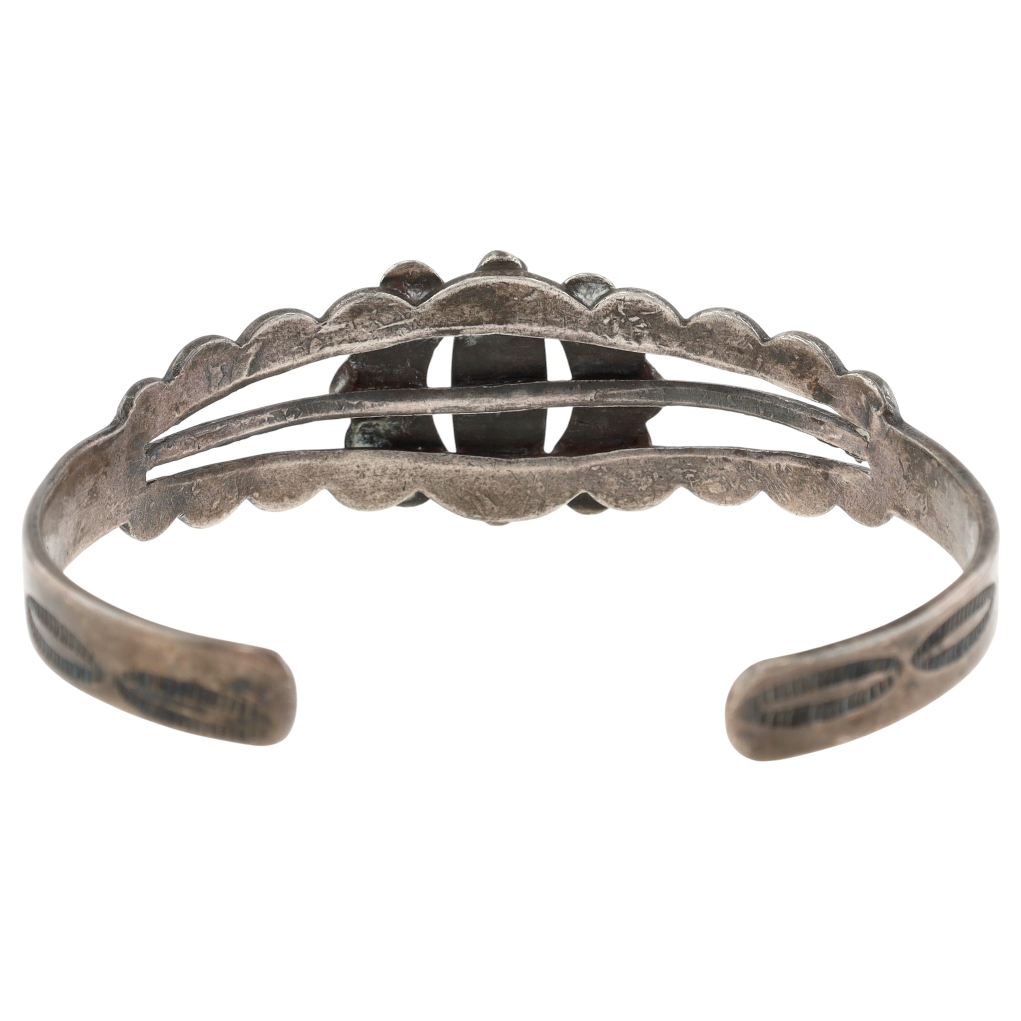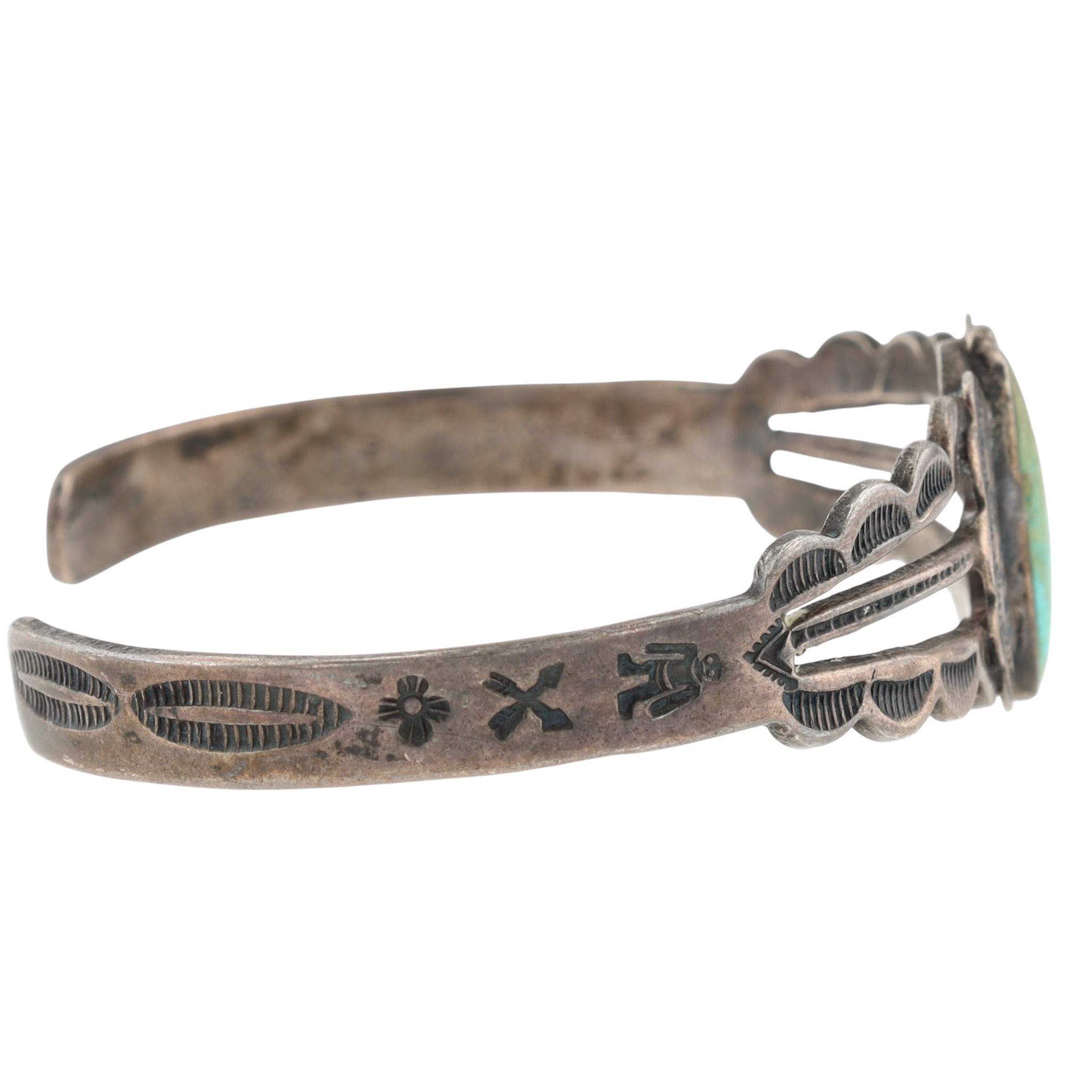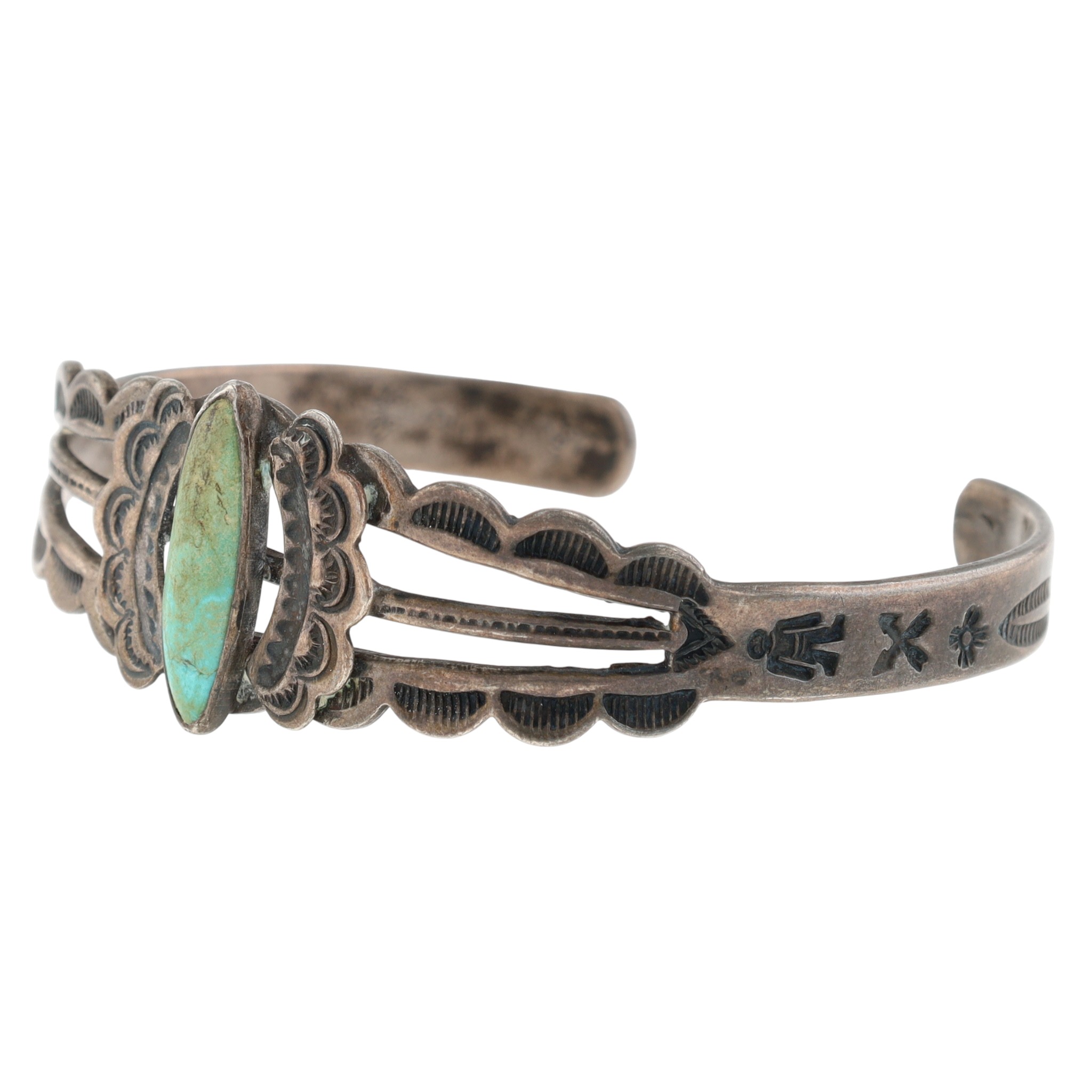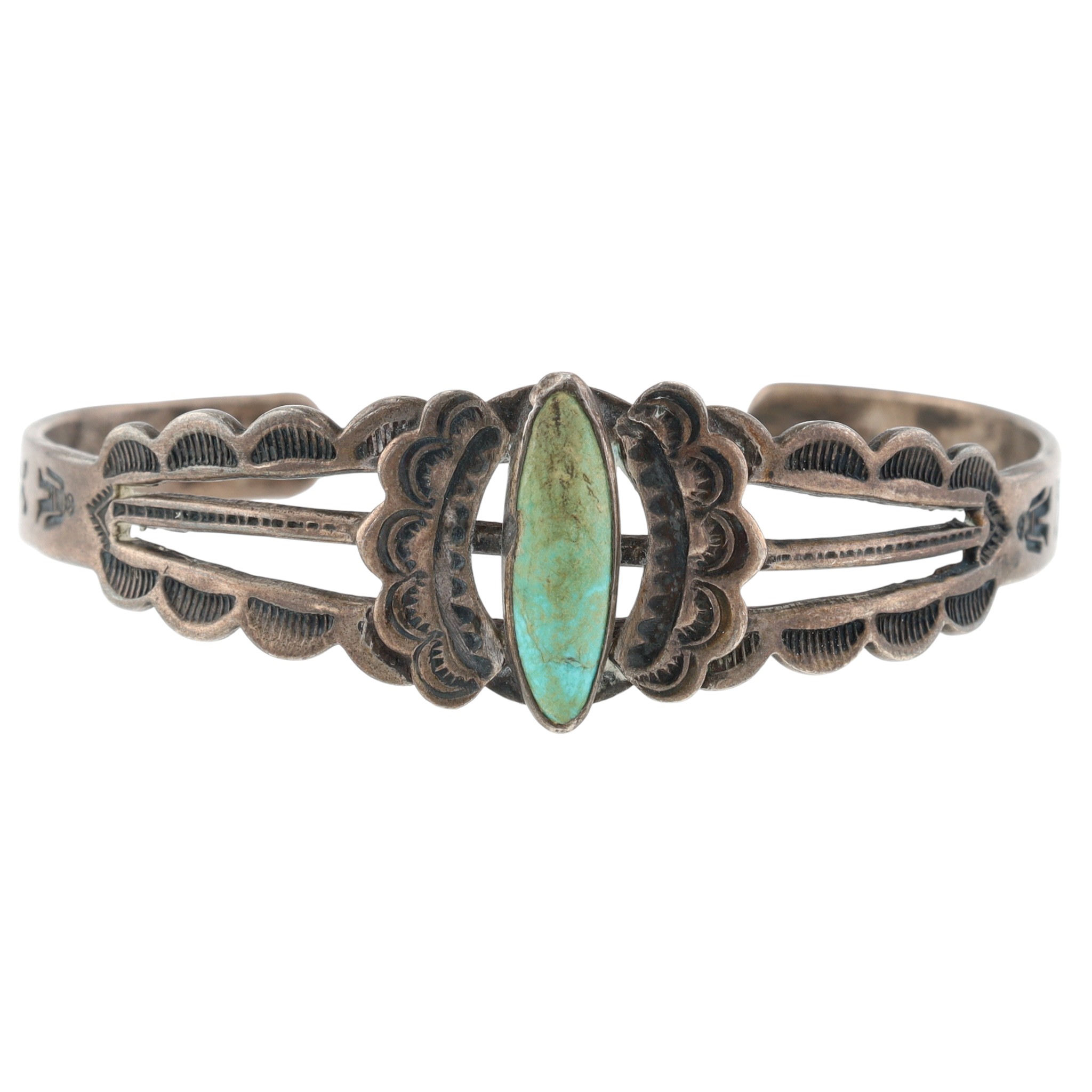 Vintage Fred Harvey Era Navajo Sterling Turquoise Stamped Cuff Bracelet – 13.1g