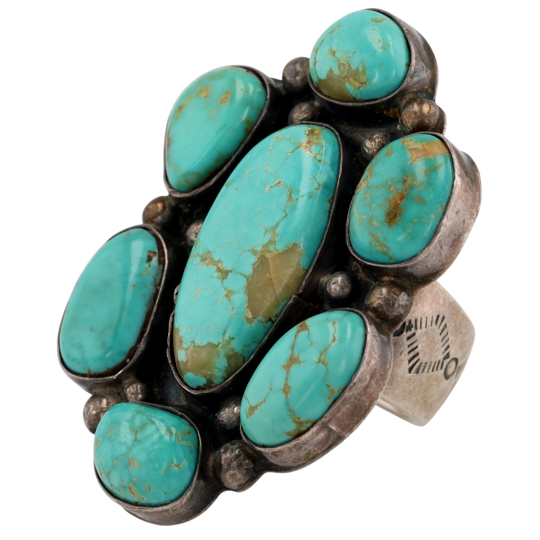 Wow! Amazing Vintage Lee Bennett Navajo Sterling Turquoise Cluster Stamped Adjustable Ring – 21.4g – face measures approx. 1.84″ x 1.37″