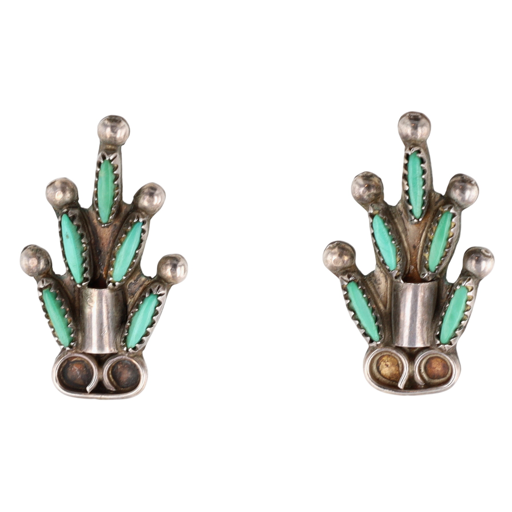 Vintage Wytsalucy (attr.) Zuni Sterling Needlepoint Turquoise Earrings – 3.2g – note: attributed to ‘Wytsalucy’ – consignor reports earrings were sold with the squash blossom in lot 300, made by ‘Wytsalucy, Zuni’.