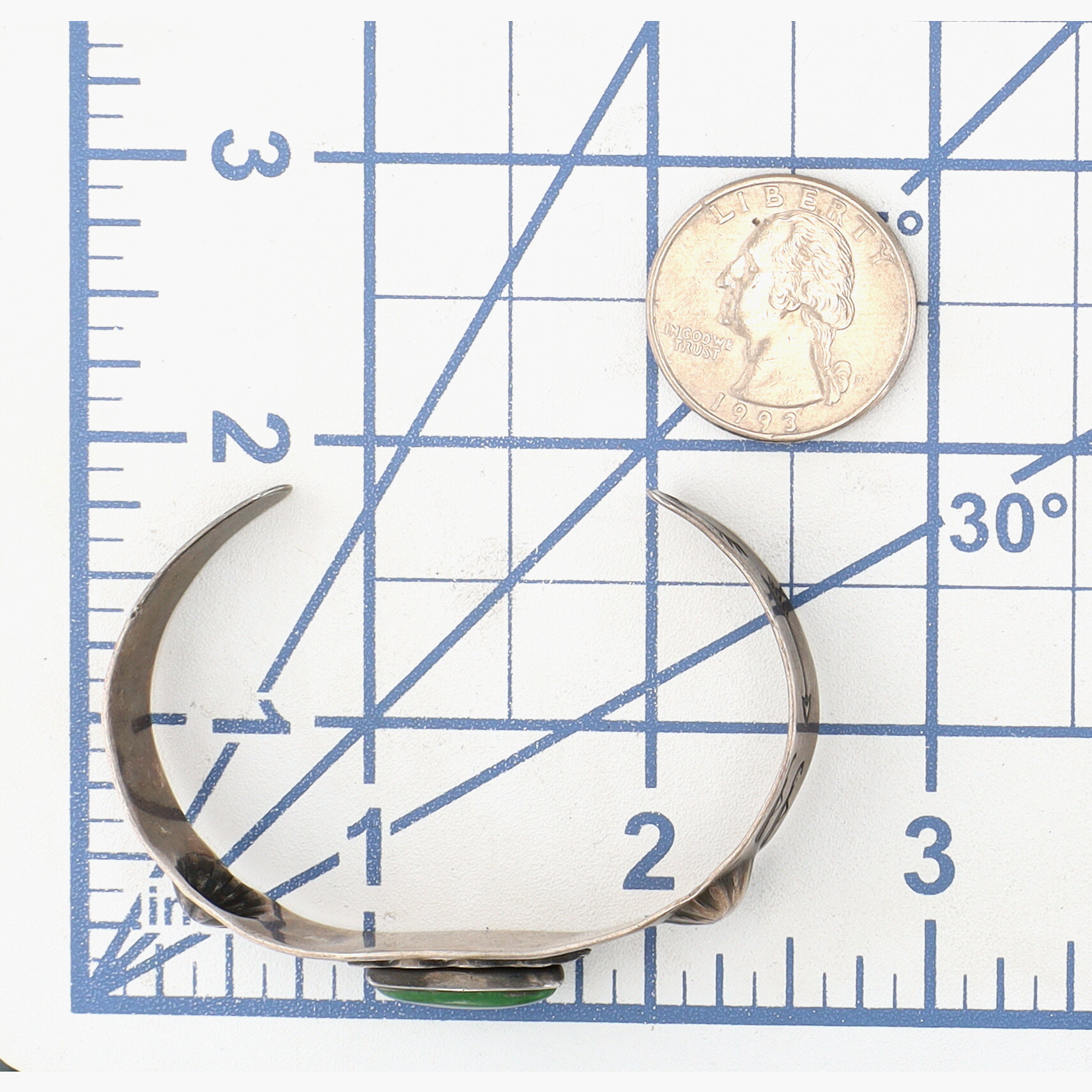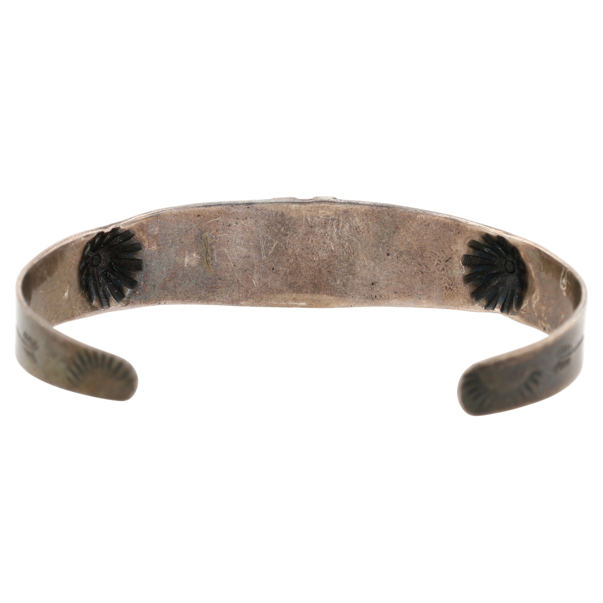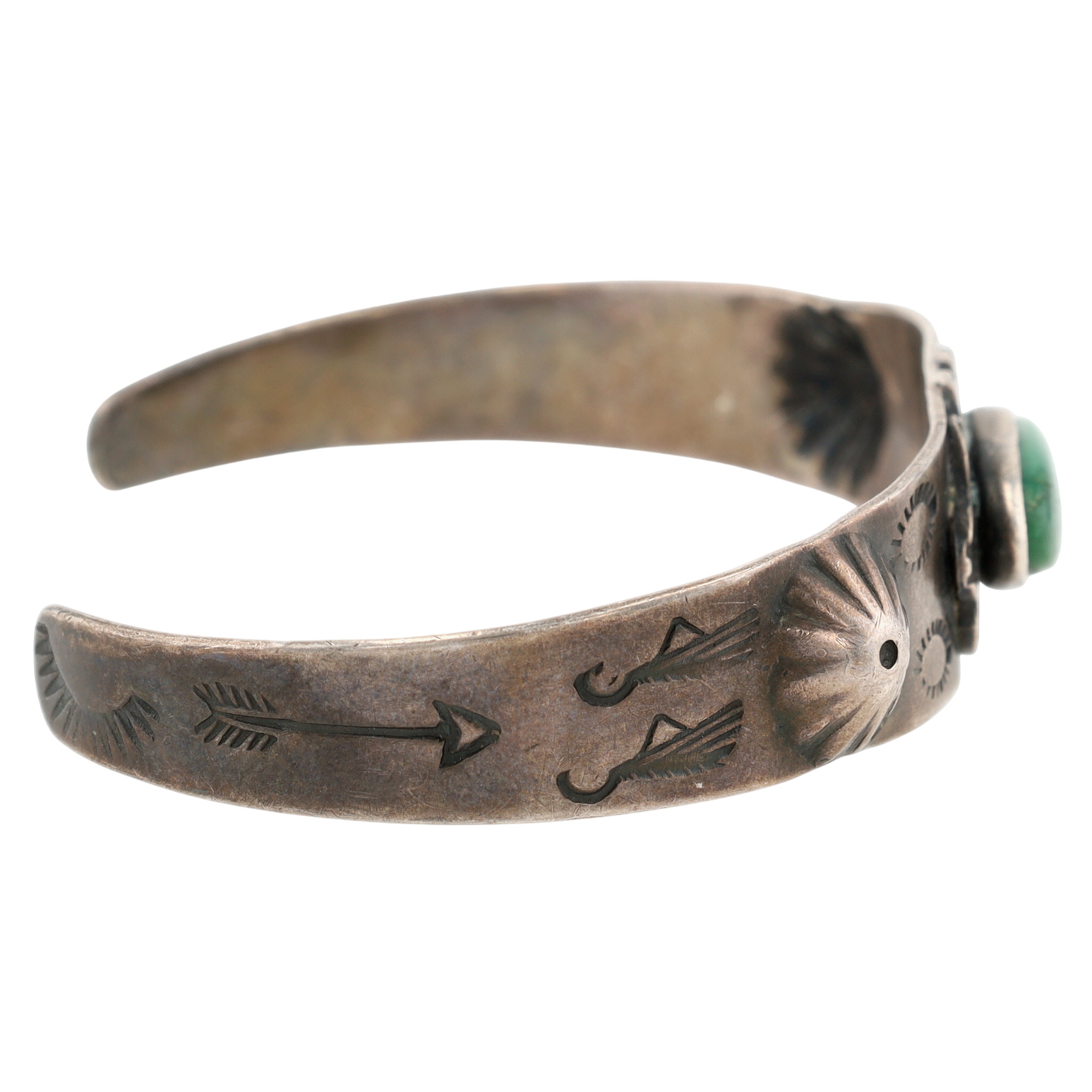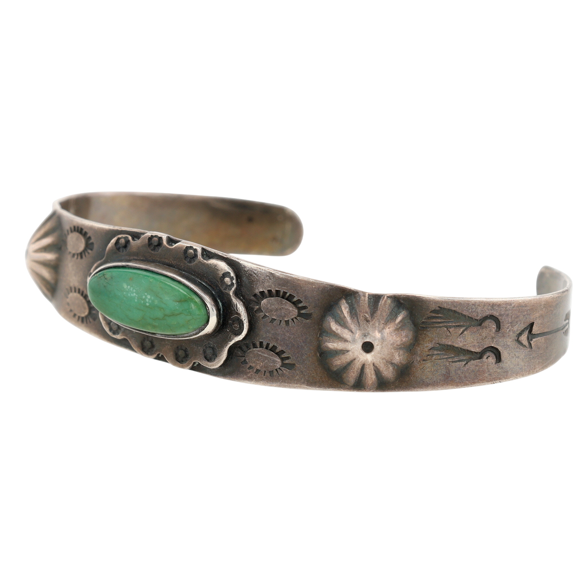 Vintage Fred Harvey Era Navajo Sterling Green Turquoise Stamped Cuff Bracelet – 13g