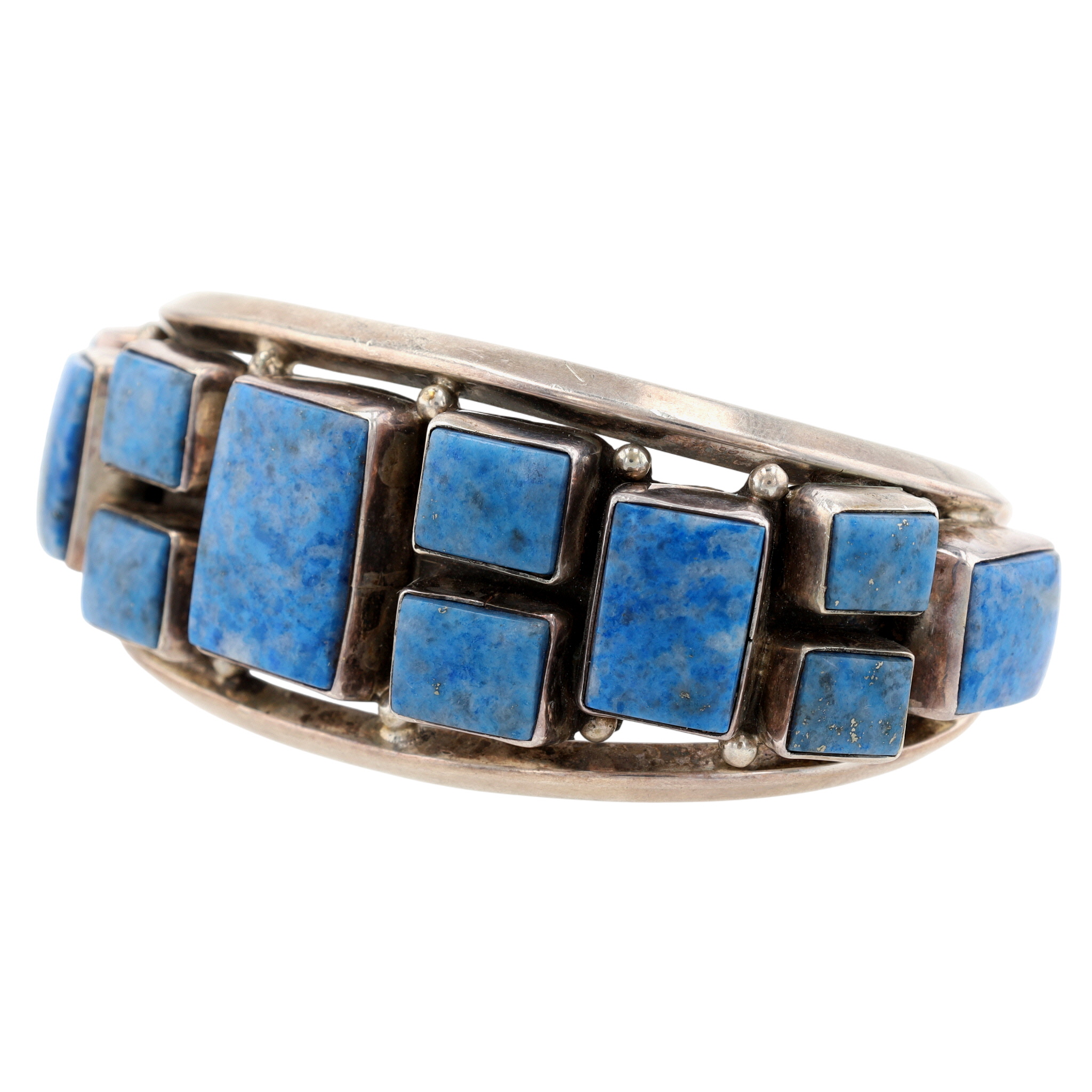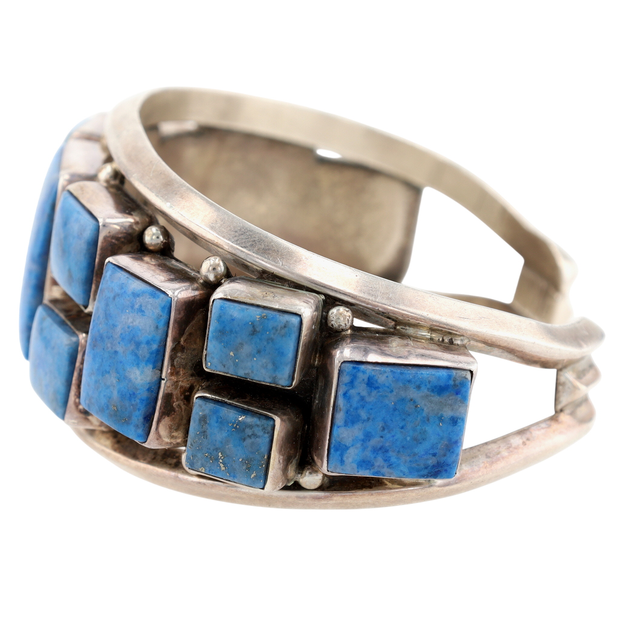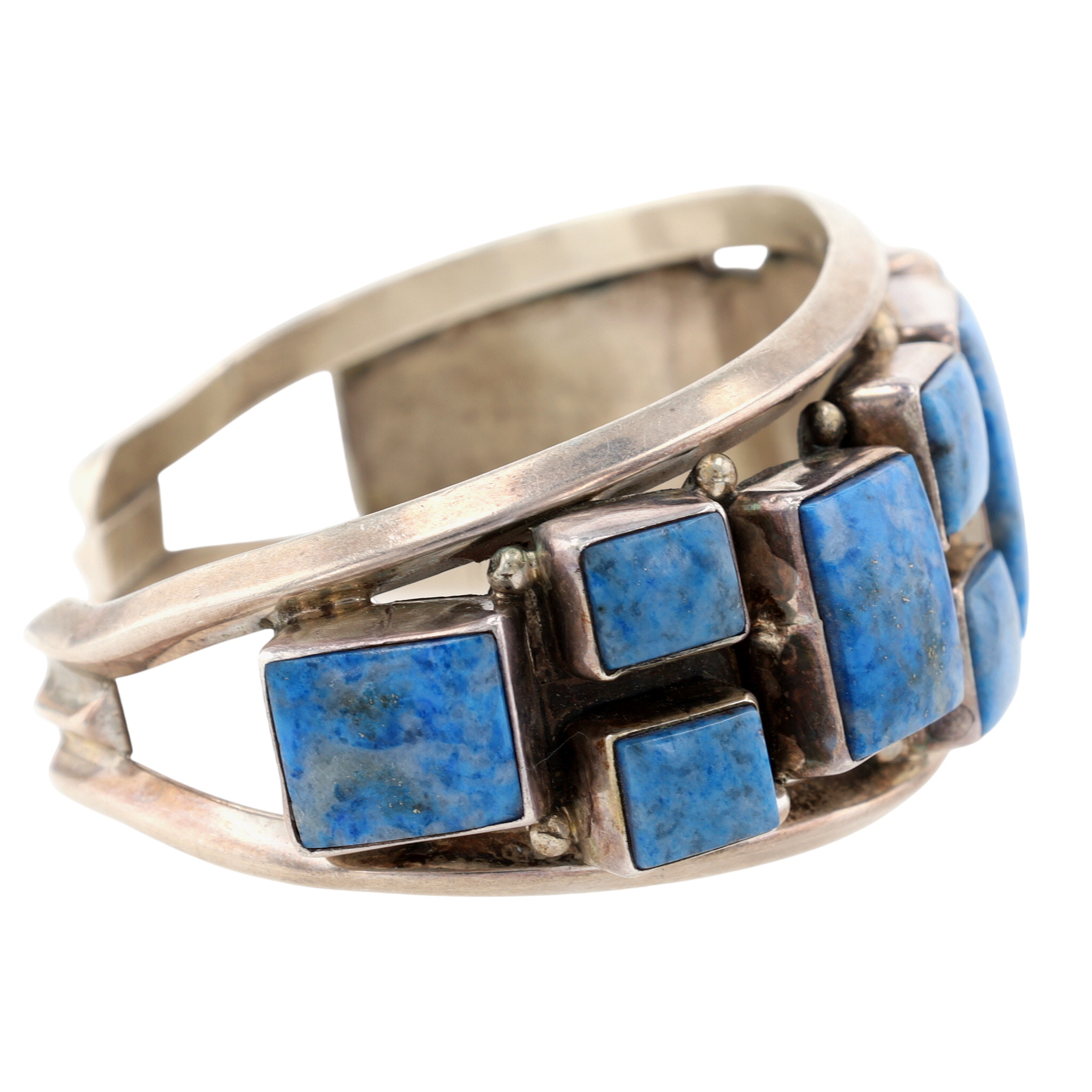 Gary G Sanchez Hispanic Native American Sterling and Denim Lapis Lazuli Cluster Cuff Bracelet – 59.1g