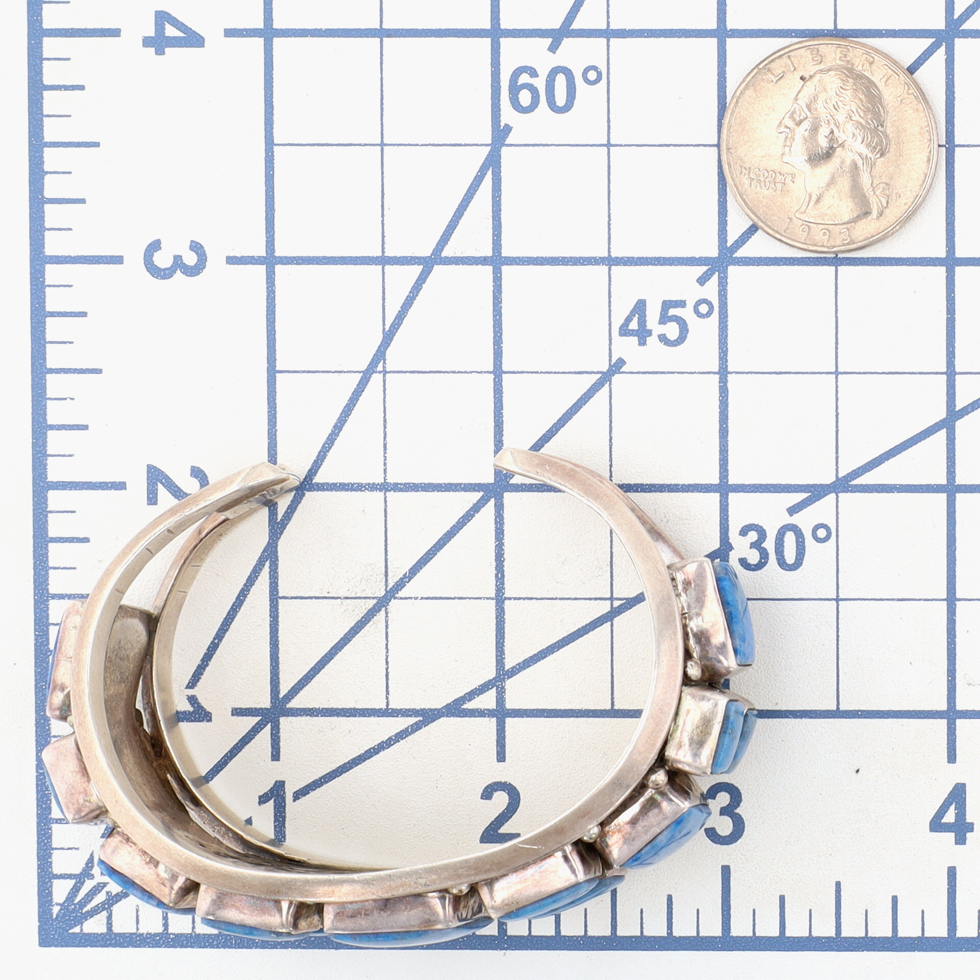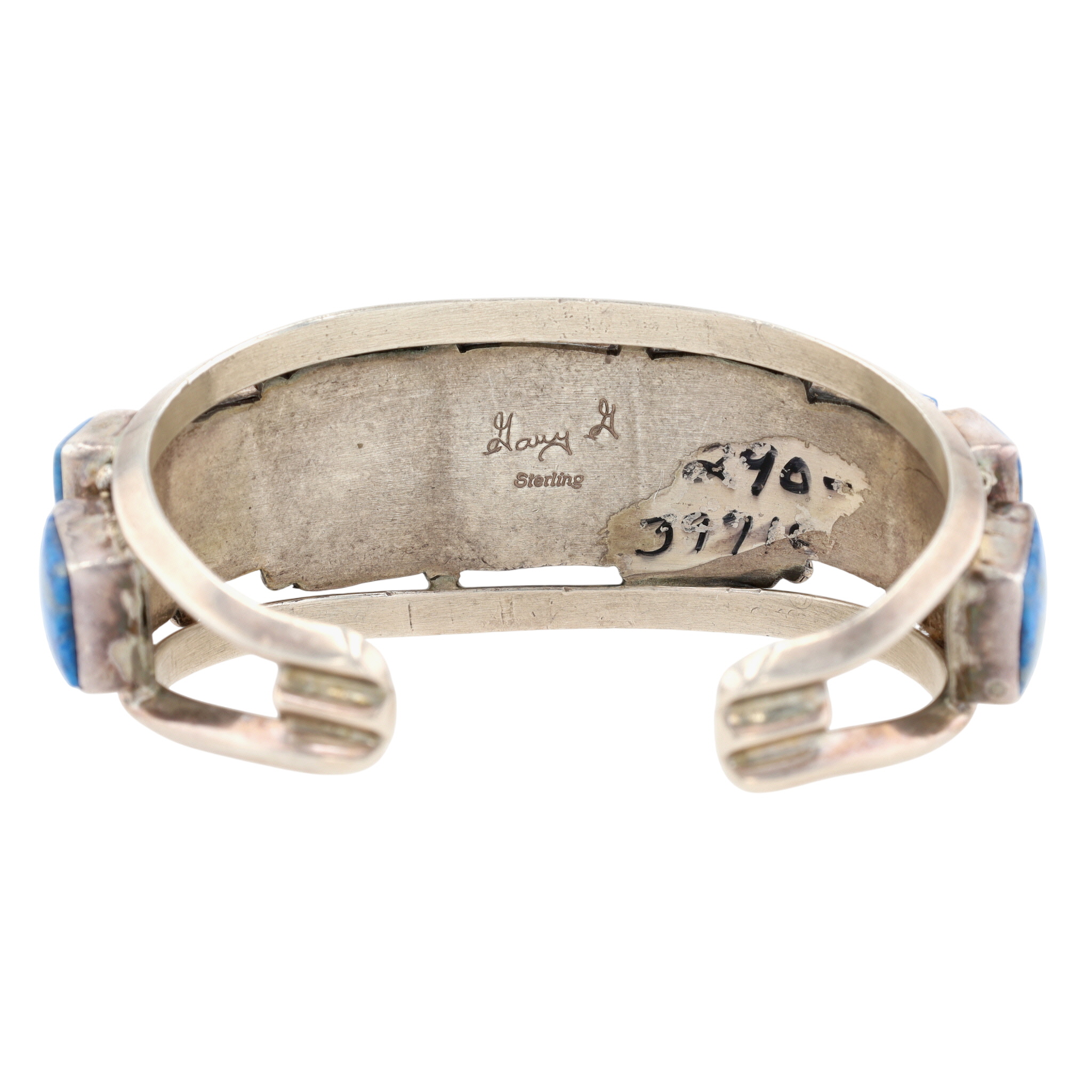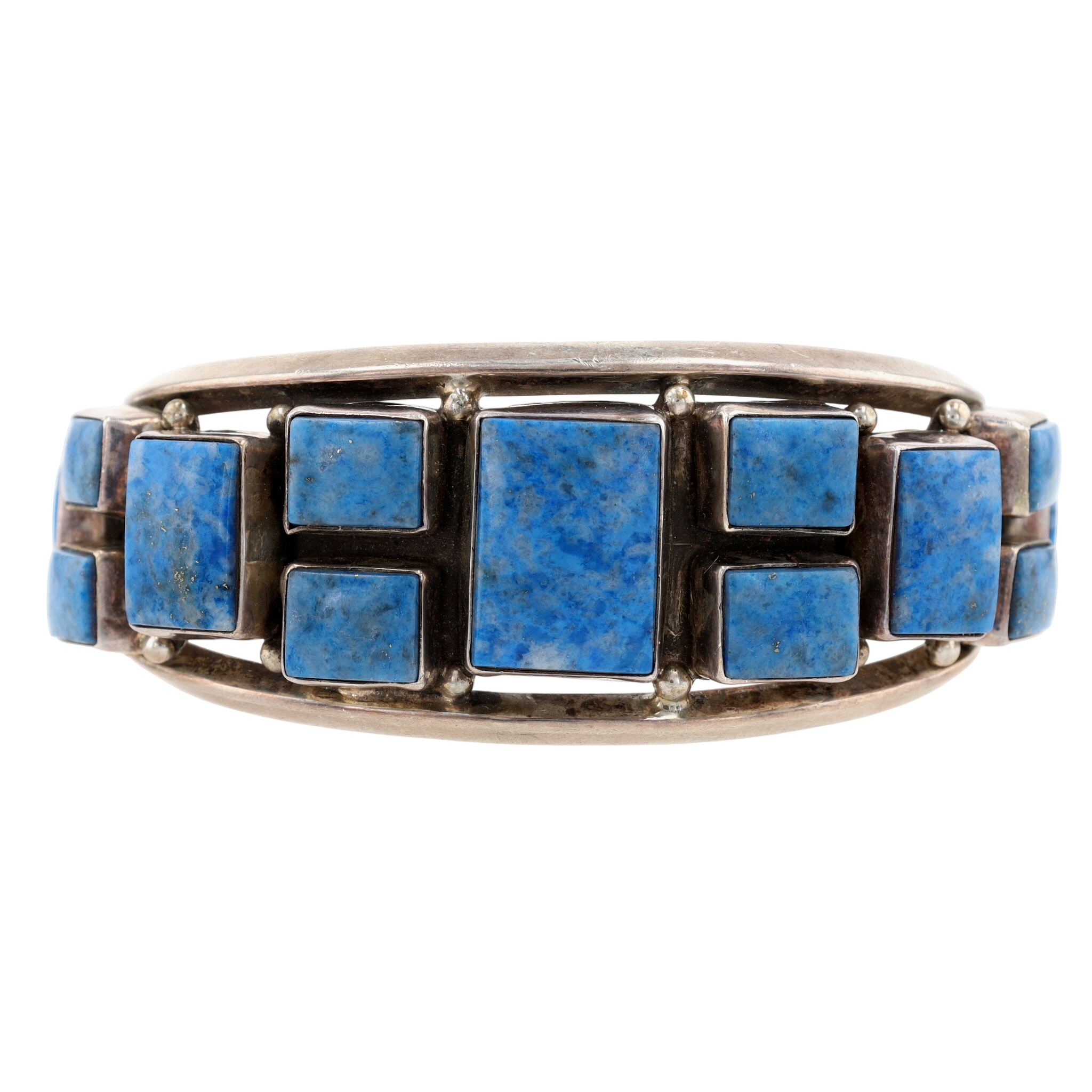 Gary G Sanchez Hispanic Native American Sterling and Denim Lapis Lazuli Cluster Cuff Bracelet – 59.1g