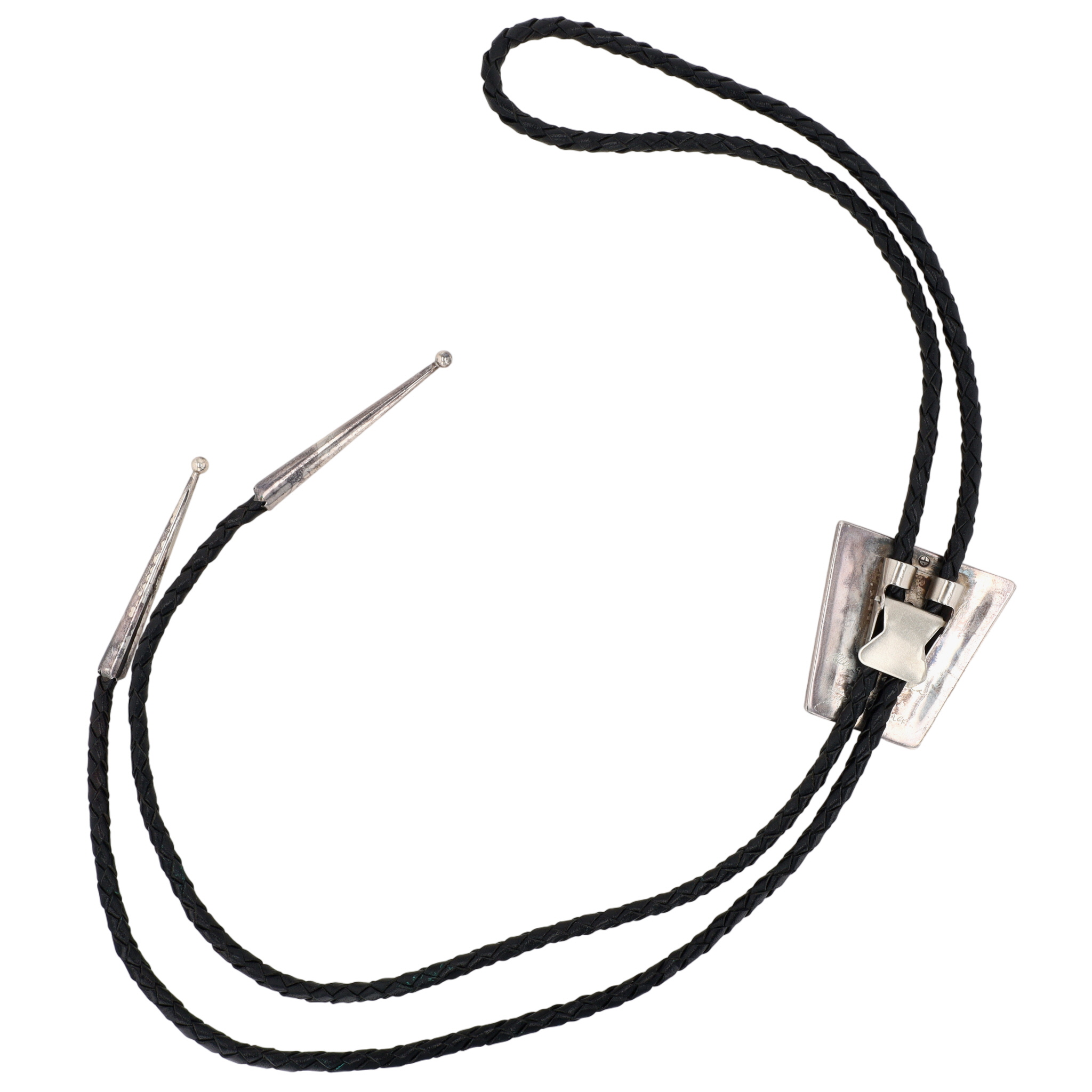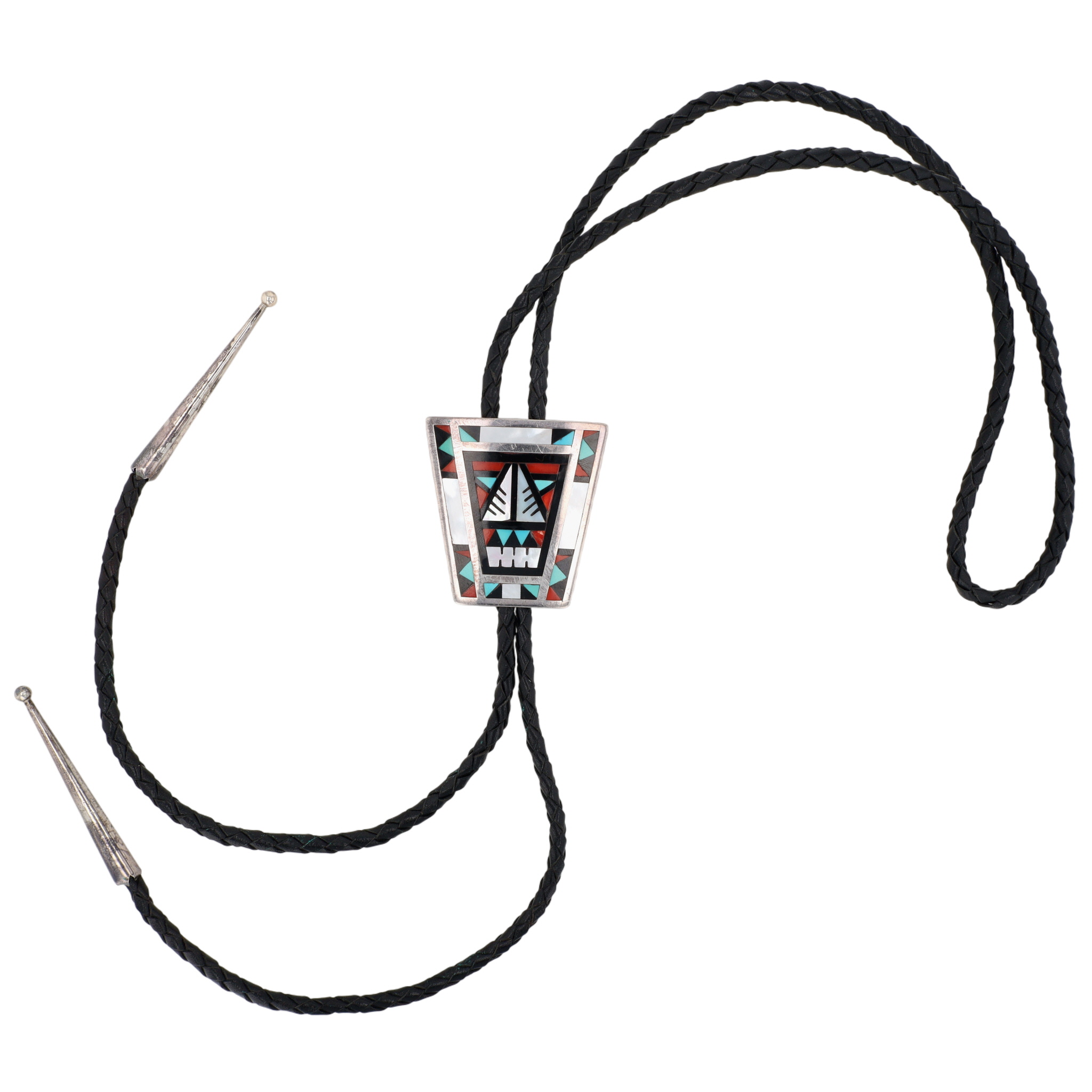 Alex & Marylita Boone Zuni Sterling Multistone (Turquoise, Coral, Mother of Pearl, Jet) Mosaic Inlay Bolo Tie – 34.9g